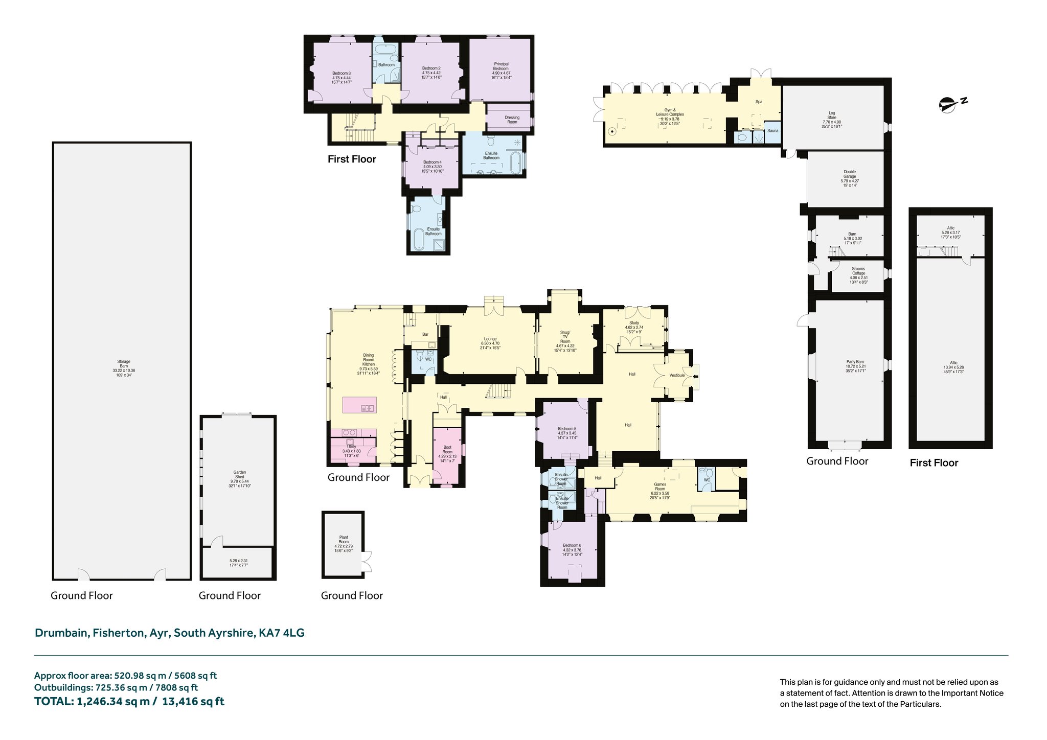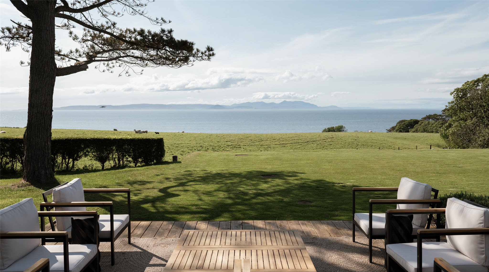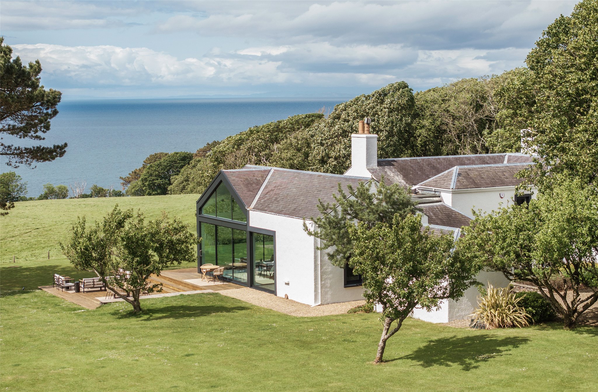 Key Property Features • Six bedrooms including four en suite • Glass-walled living spaces with sea views • Approx. 53 acres of IACS-registered land • Approx. 400 yards of private shoreline • Woodland glen with burn and path to beach • Outbuildings with potential (STPP) Outbuildings with potential (STPP), including one with gym, sauna, and spa