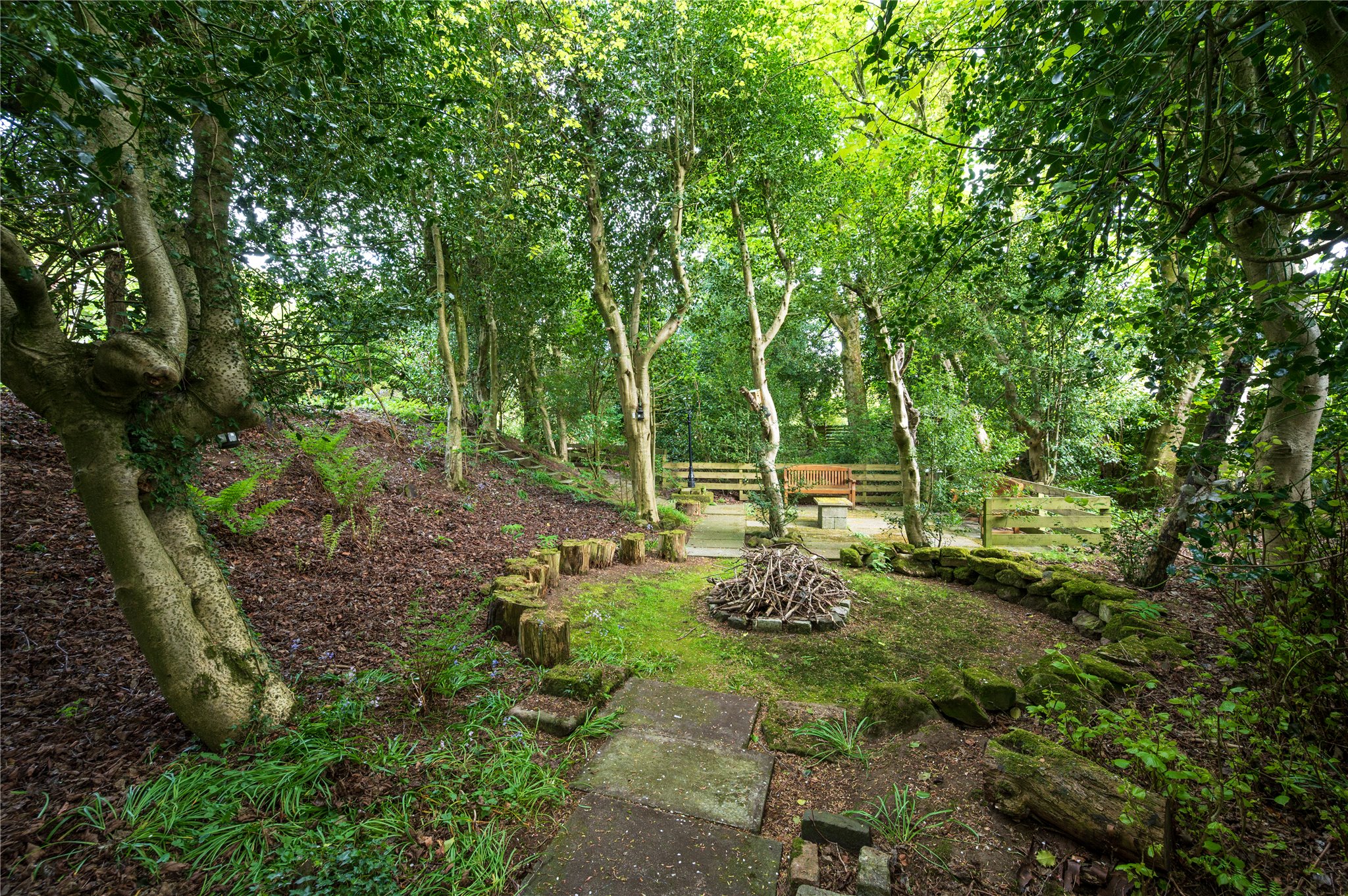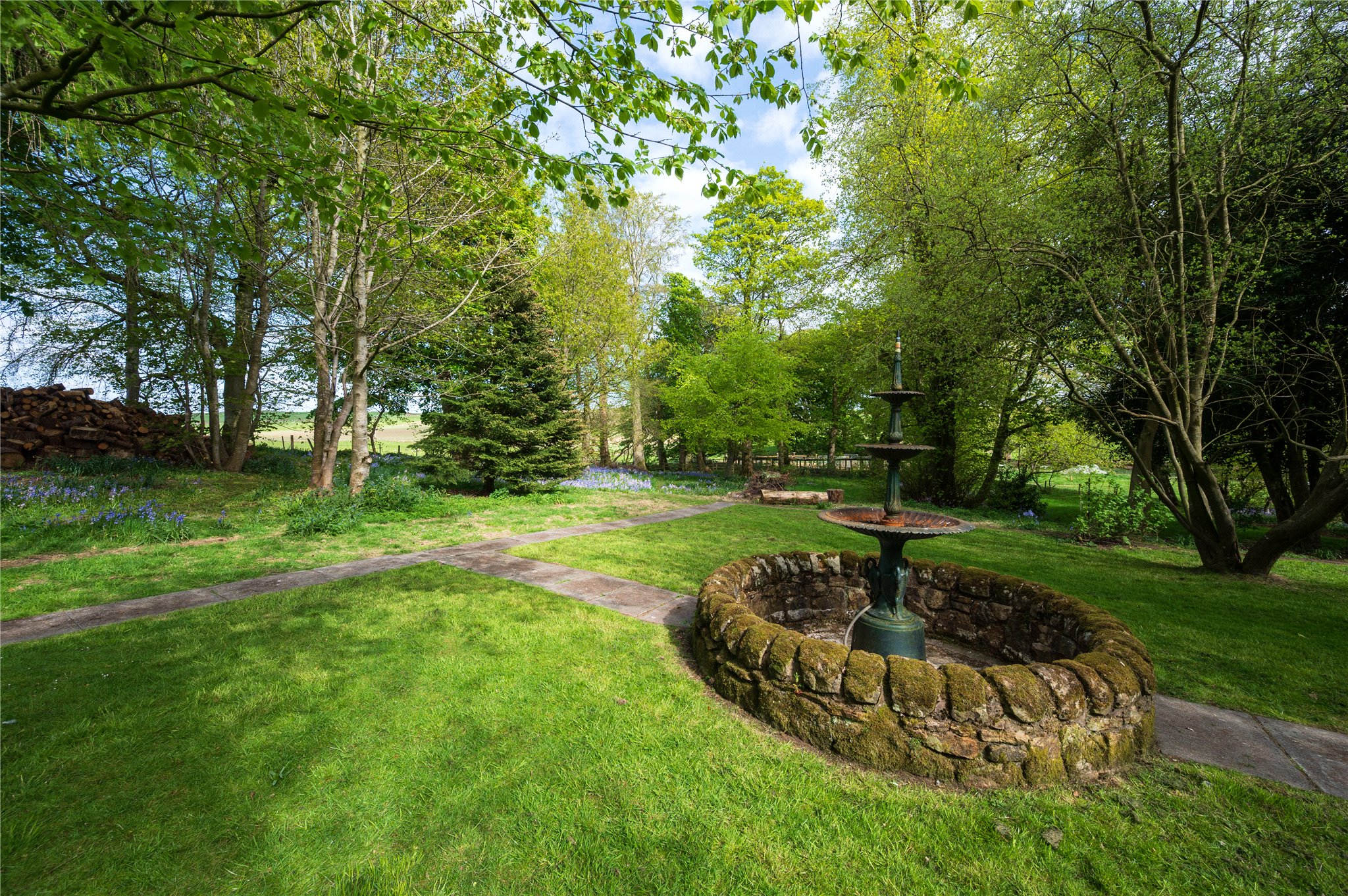 Garden: Lawns, Herbaceous Borders, Patio Areas, Fountain, Woodland and a Drive with a Gravel Turning Circle
