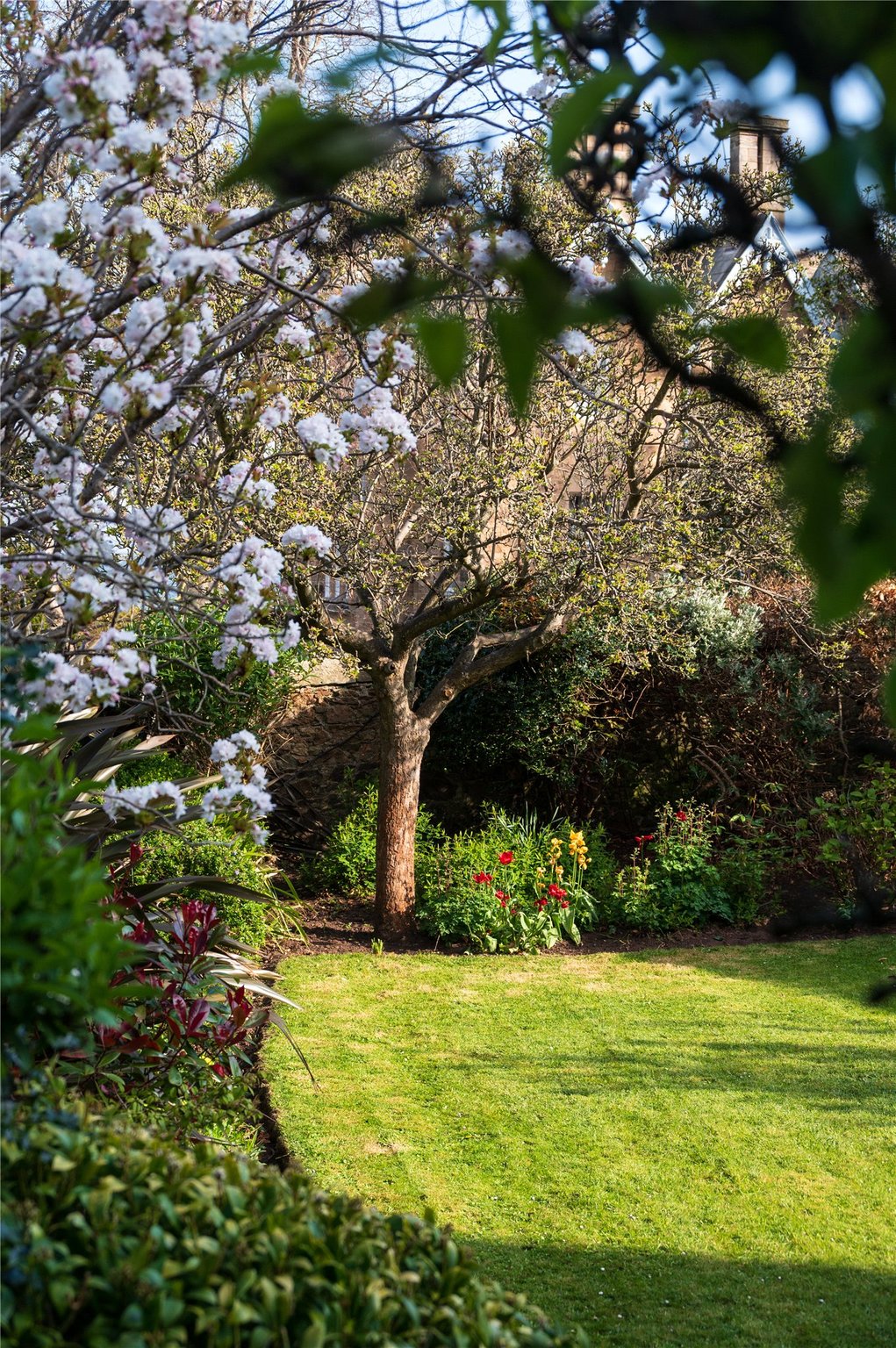 Garden: Large Roof Terrace, Private Garden predominantly laid to lawn bounded by well stocked herbaceous borders and mature fruit trees, and shared drying green