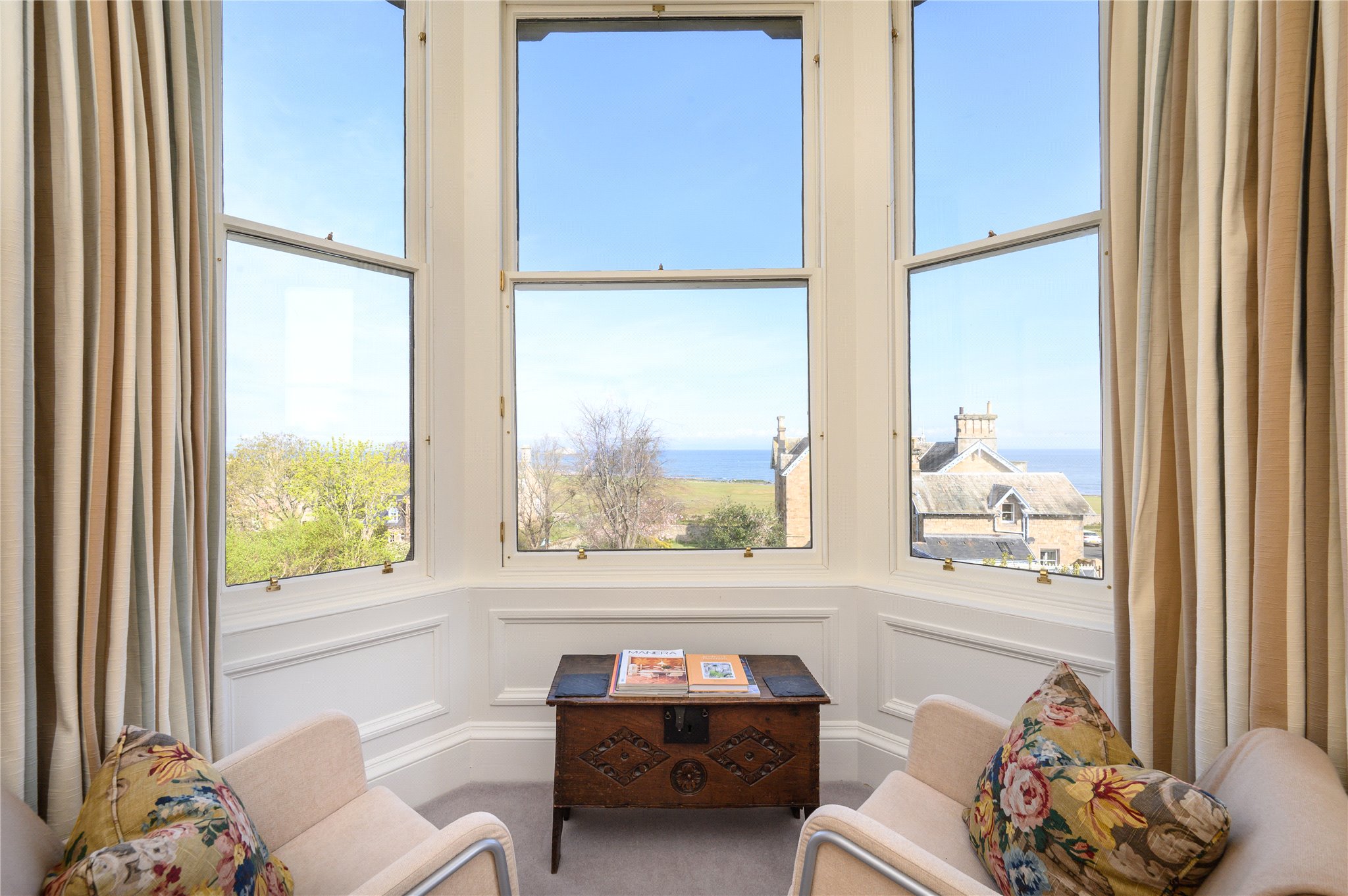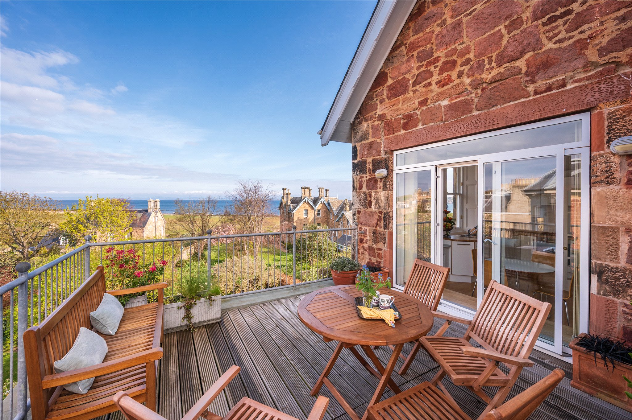 An immaculately presented 3-bedroom apartment with stunning sea views, a private garden and off-street parking in the popular coastal town of North Berwick