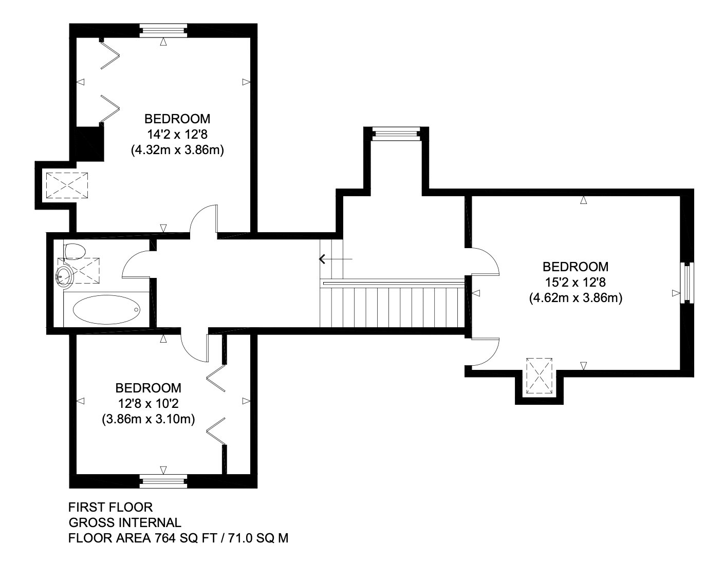 First Floor: Landing, Three Double Bedrooms, and Family Bathroom