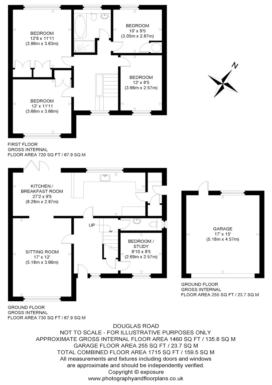 First Floor: Principal Bedroom, Three further Double Bedrooms and a Family Bathroom.