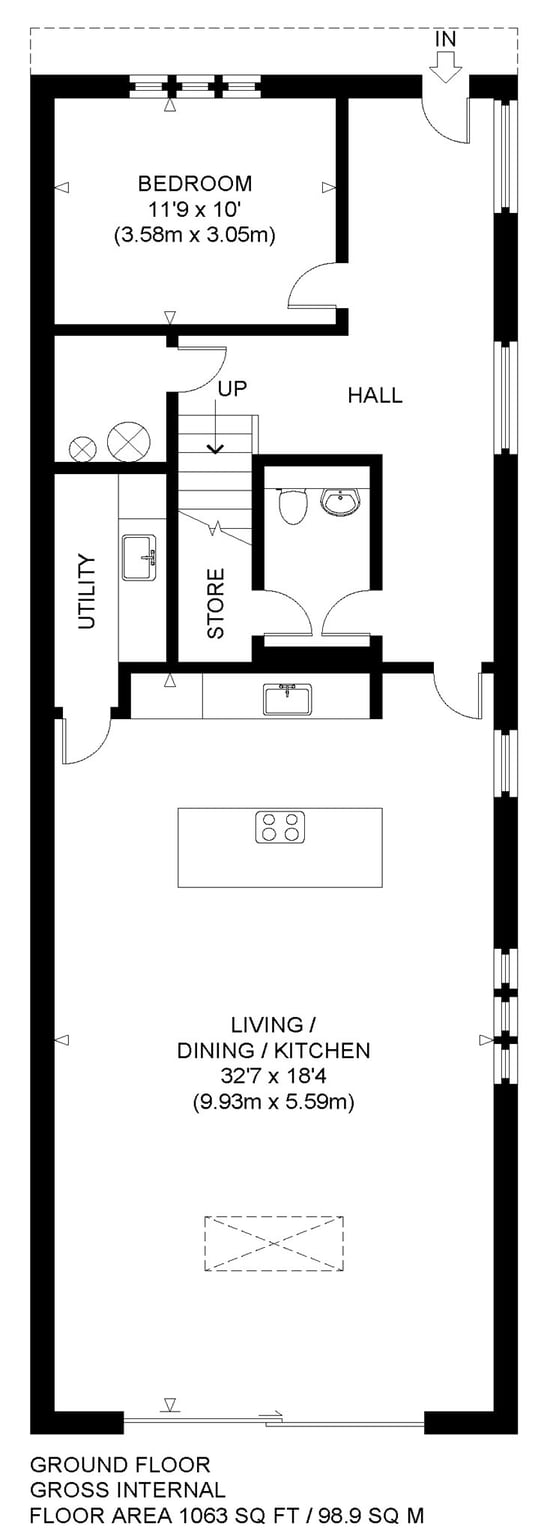 Entrance Hall, Open Plan Kitchen-Living-Dining Room, Office/Snug/Bedroom, WC and Utility Room.