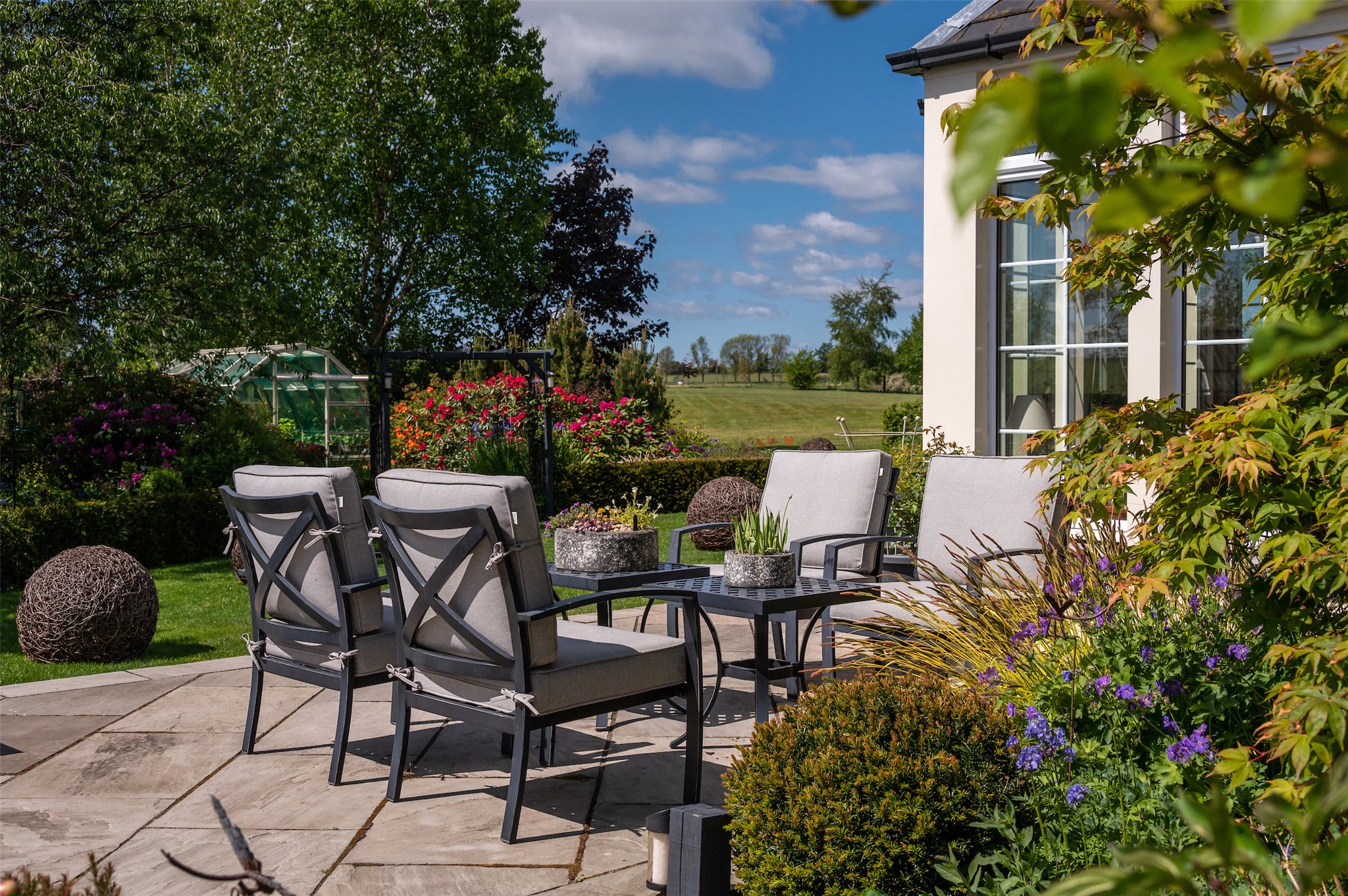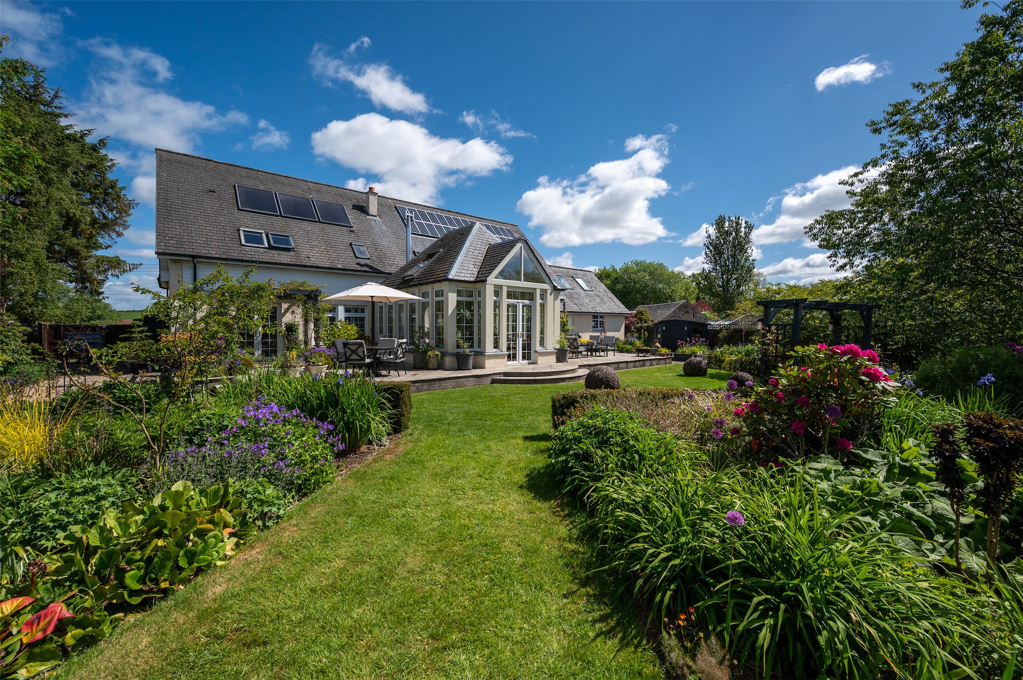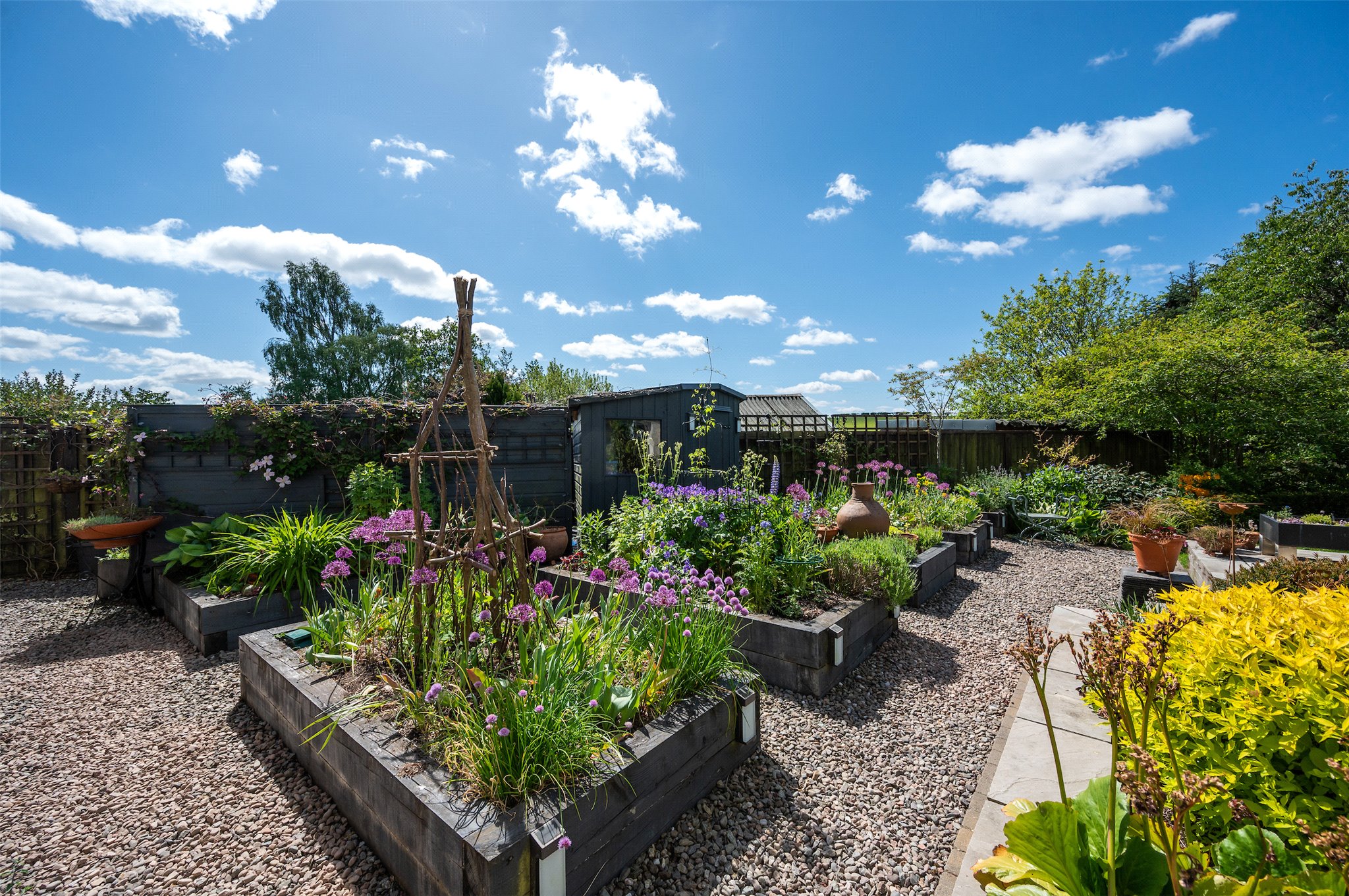 Exterior: Established gardens of notable colour and diversity. Green House. Garden Shed. Potting Shed. Kitchen Garden. Patio Terrace.