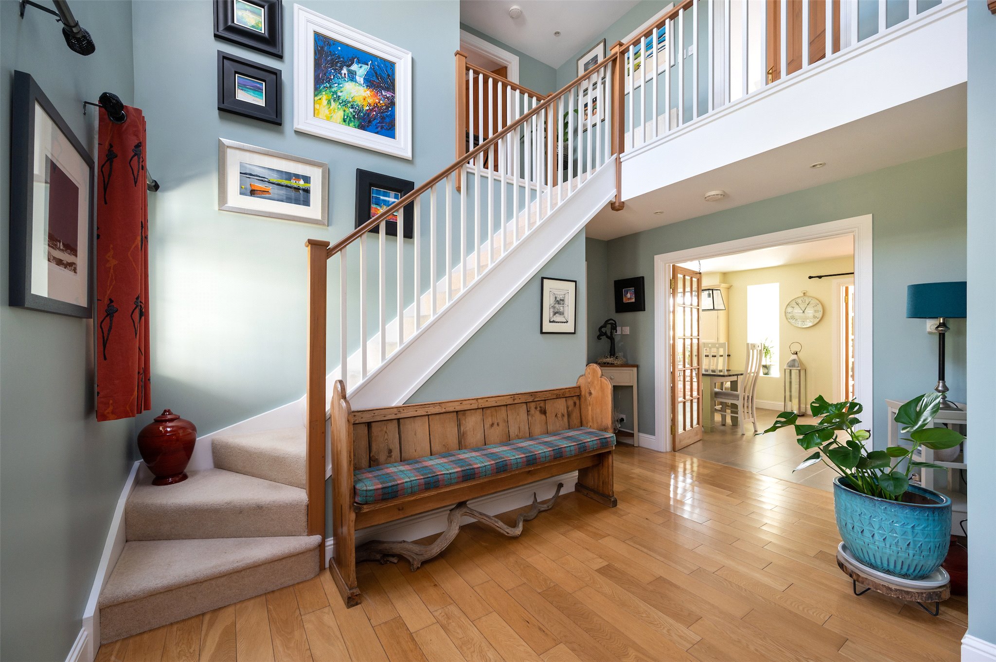 A substantial detached house which offers generously proportioned living accommodation with extensive garden ground with neighbouring paddock and within easy reach of Scotland’s arterial road network.
