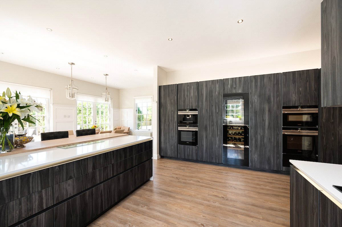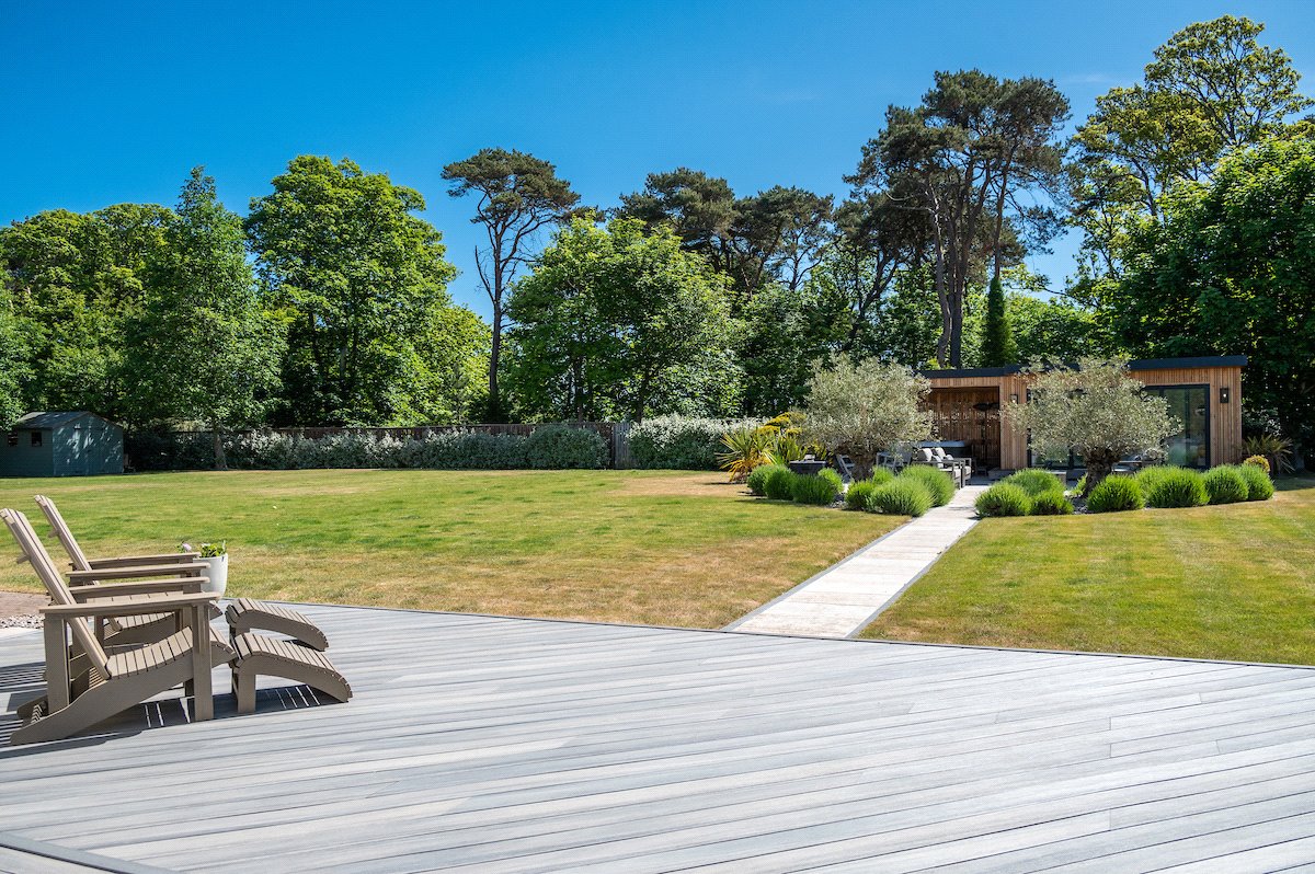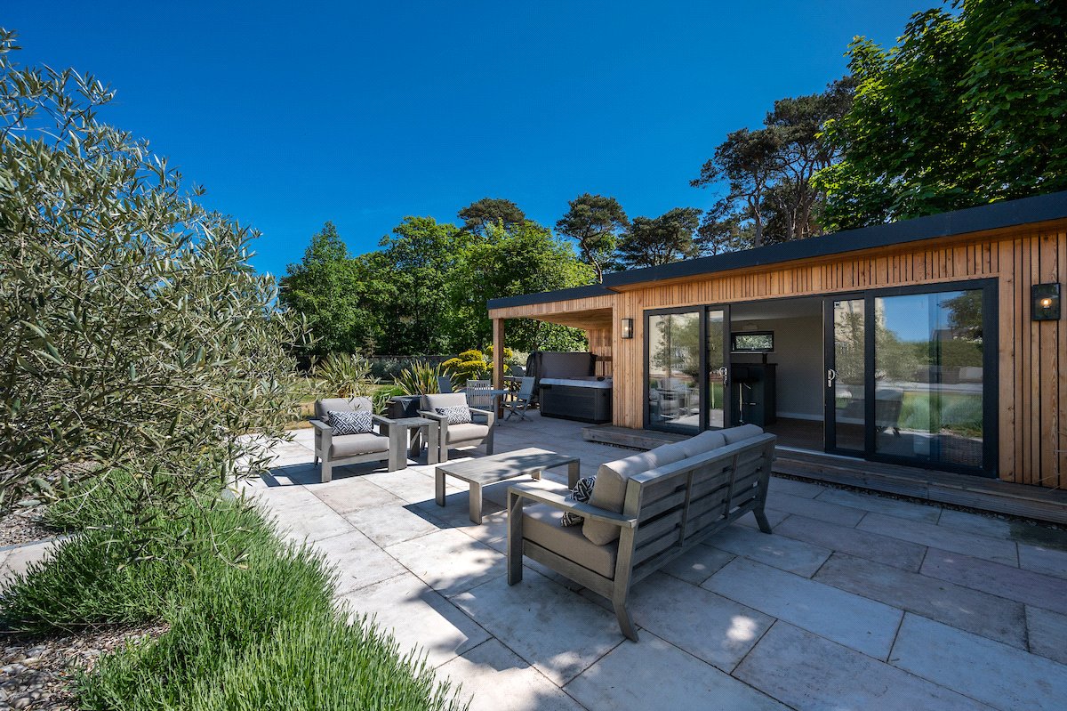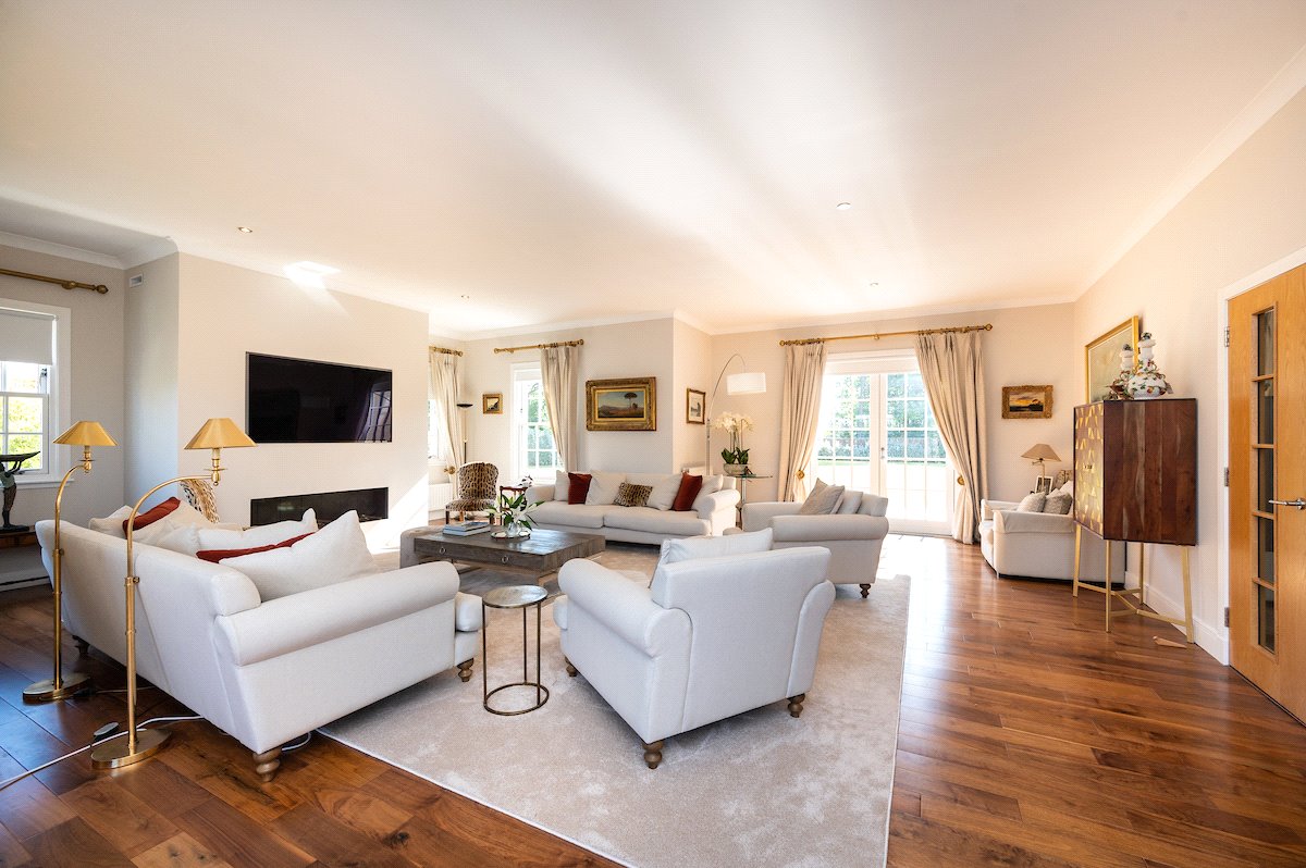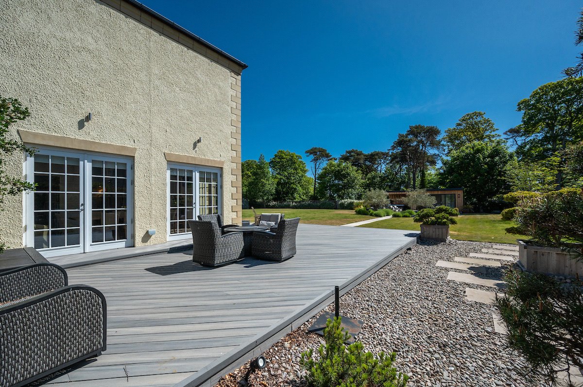 Garden: Beautifully manicured gardens surround the property with large lawned areas to the front and rear, together with decking, sun terraces and an enclosed area of woodland.