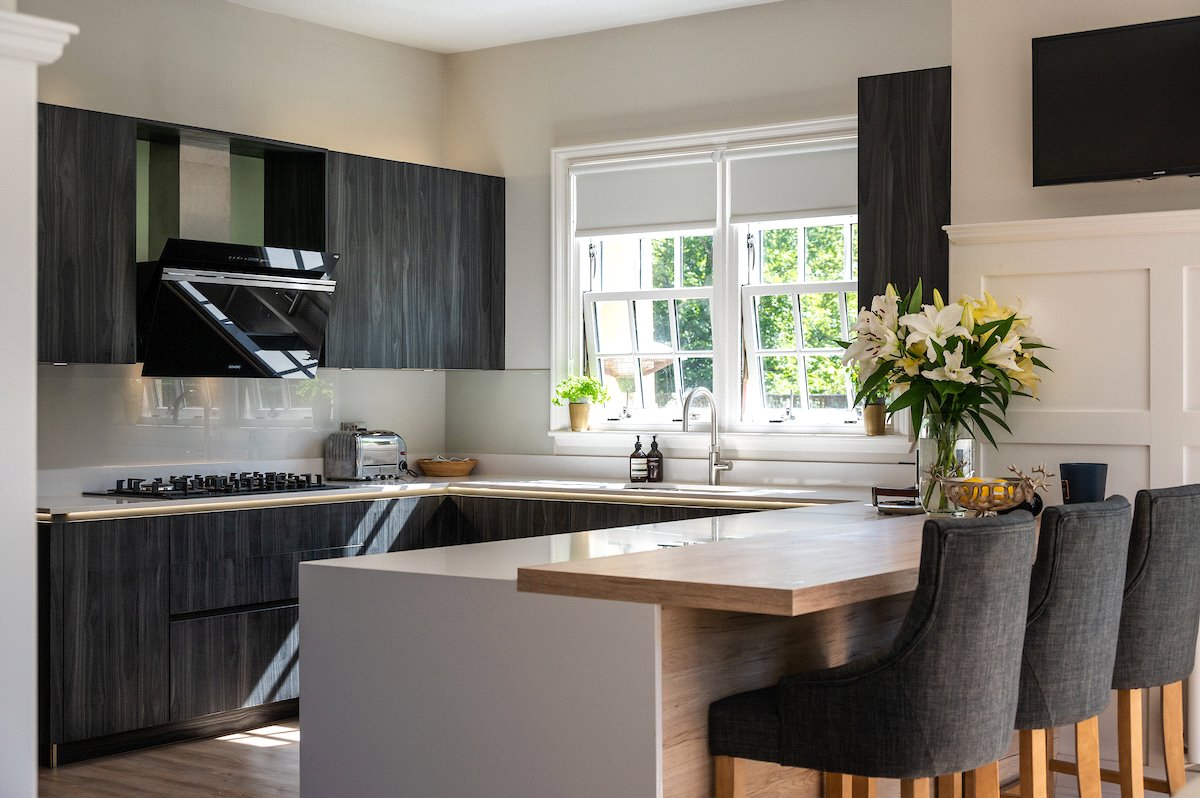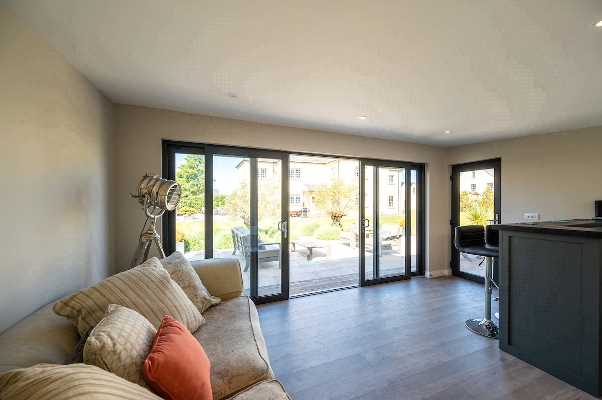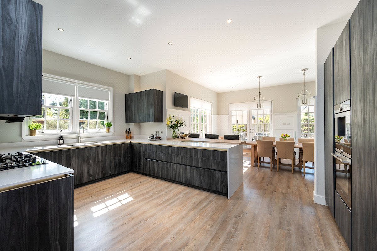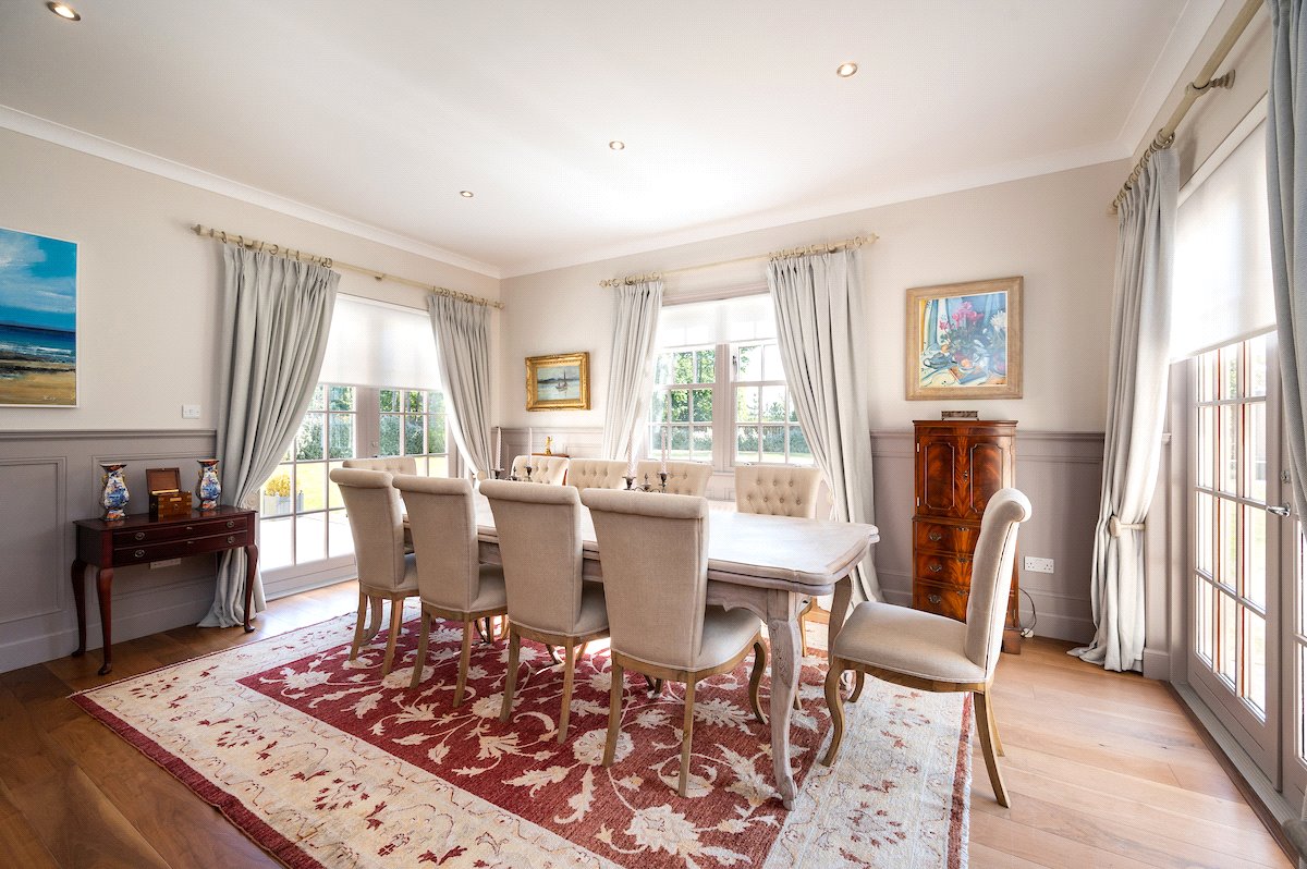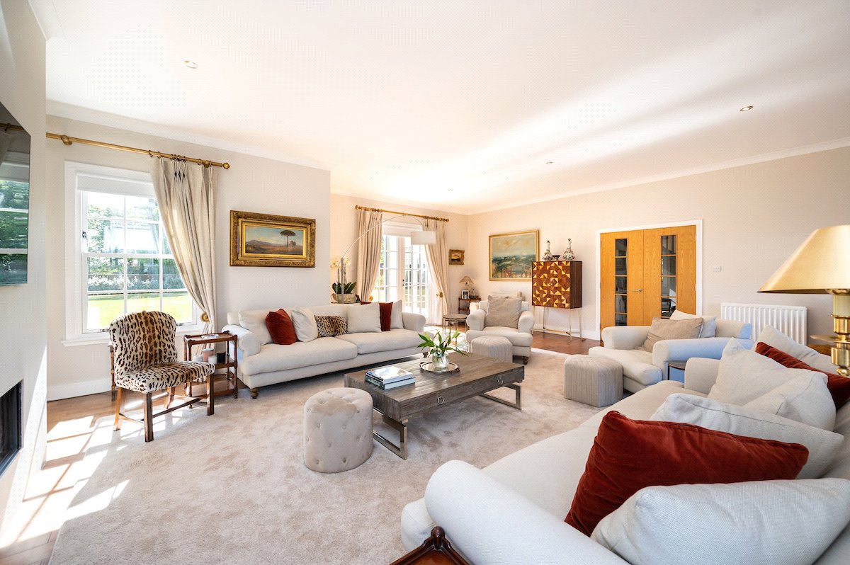 Garden: Beautifully manicured gardens surround the property with large lawned areas to the front and rear, together with decking, sun terraces and an enclosed area of woodland.