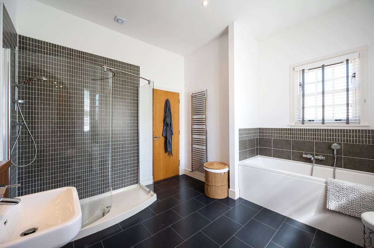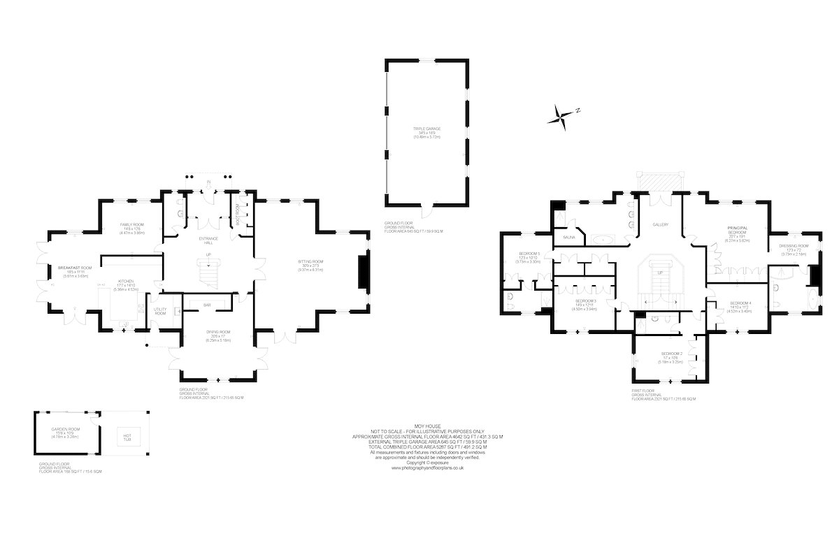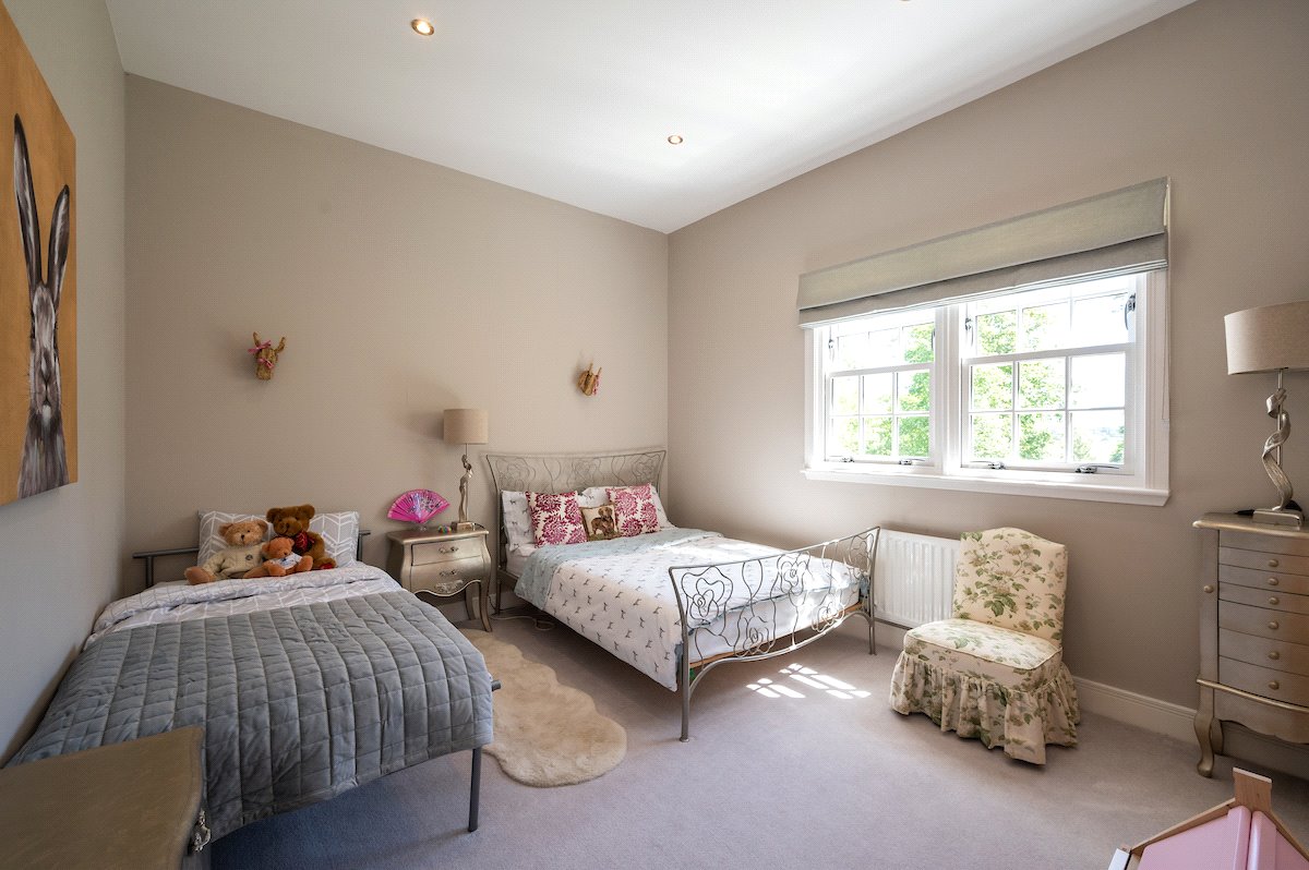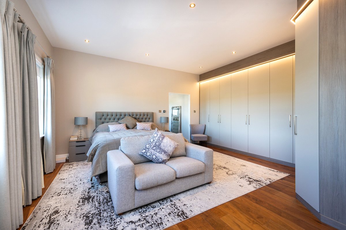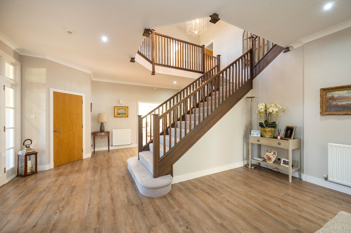 First Floor: Galleried Landing with Balcony, Principal Bedroom with Dressing Room and Ensuite Bathroom, Two Double Bedrooms with Ensuite Shower Rooms, Two further Double Bedrooms and a Family Bathroom with Sauna