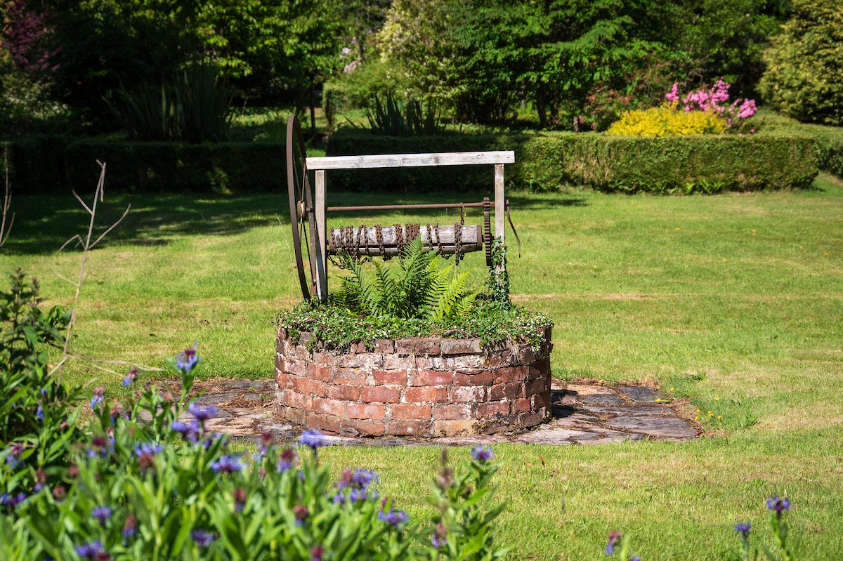 Garden: Large established lawns and gardens surround the property with various fruit trees, formal box hedging, herbaceous borders, large beech hedges, a sun terrace and the original water well