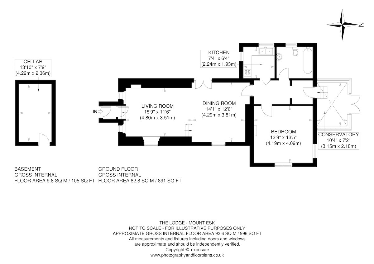 Accommodation: Entrance Vestibule, Living Room, Dining Room, Kitchen, Double Bedroom, Bathroom, Conservatory and Cellar