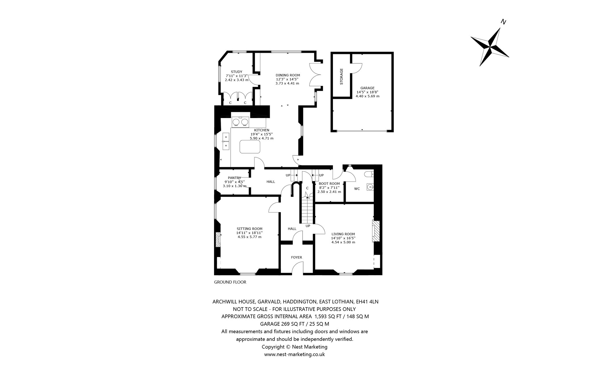 A handsome detached 5-bedroom house, situated within mature garden grounds extending to approximately 0.42 Acres, situated within the picturesque conservation village of Garvald and within commuting distance of Edinburgh.