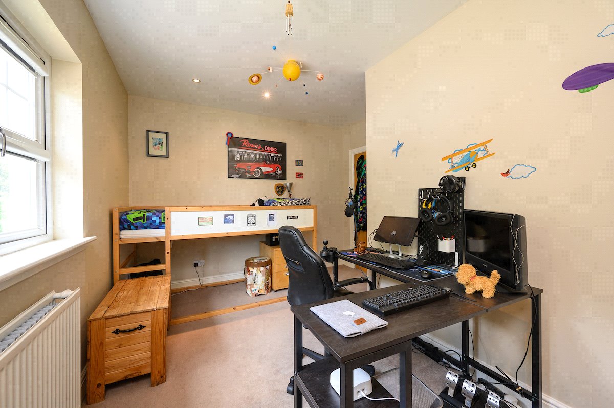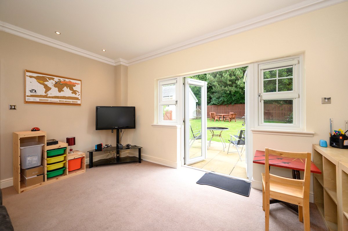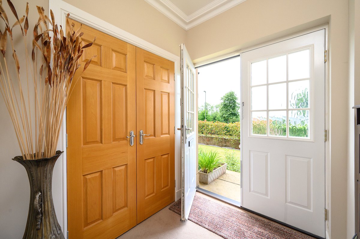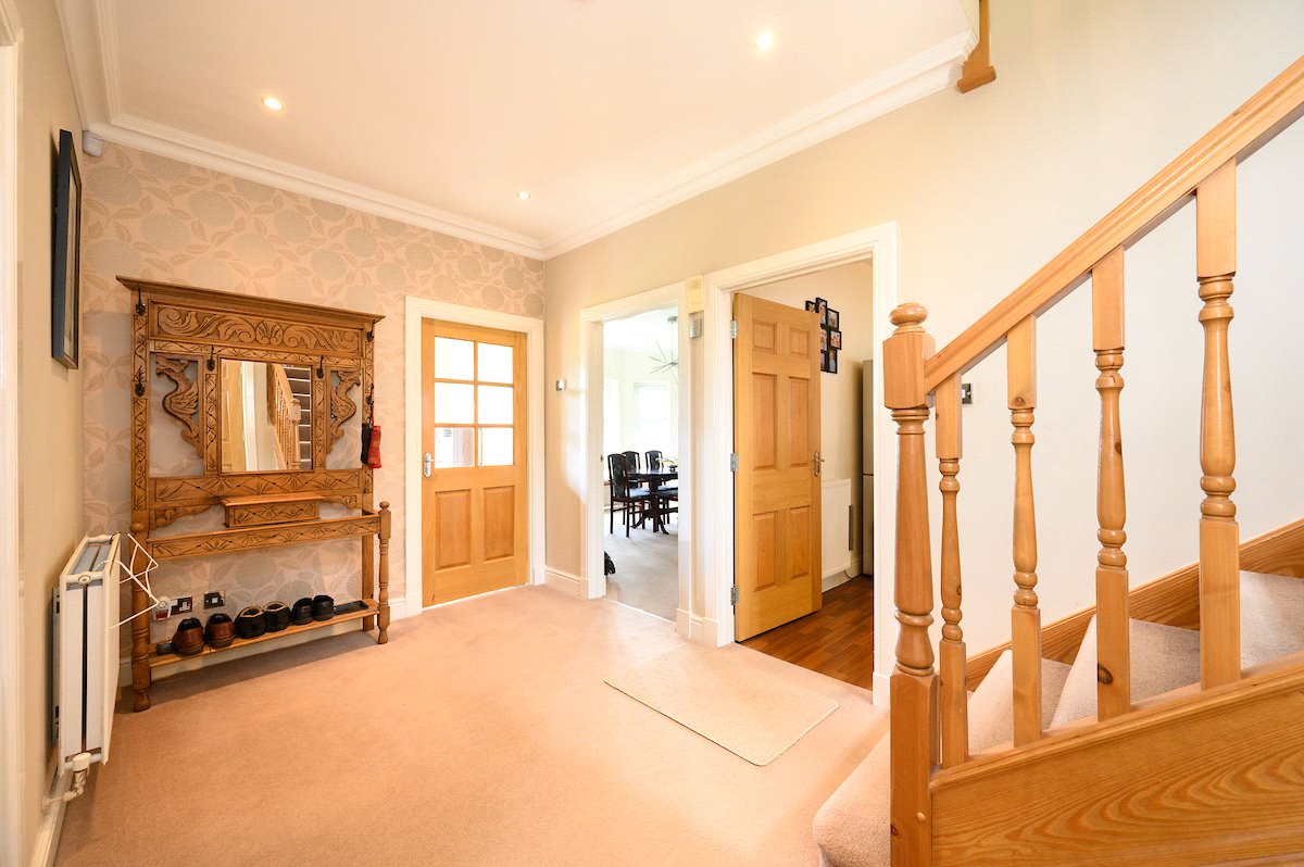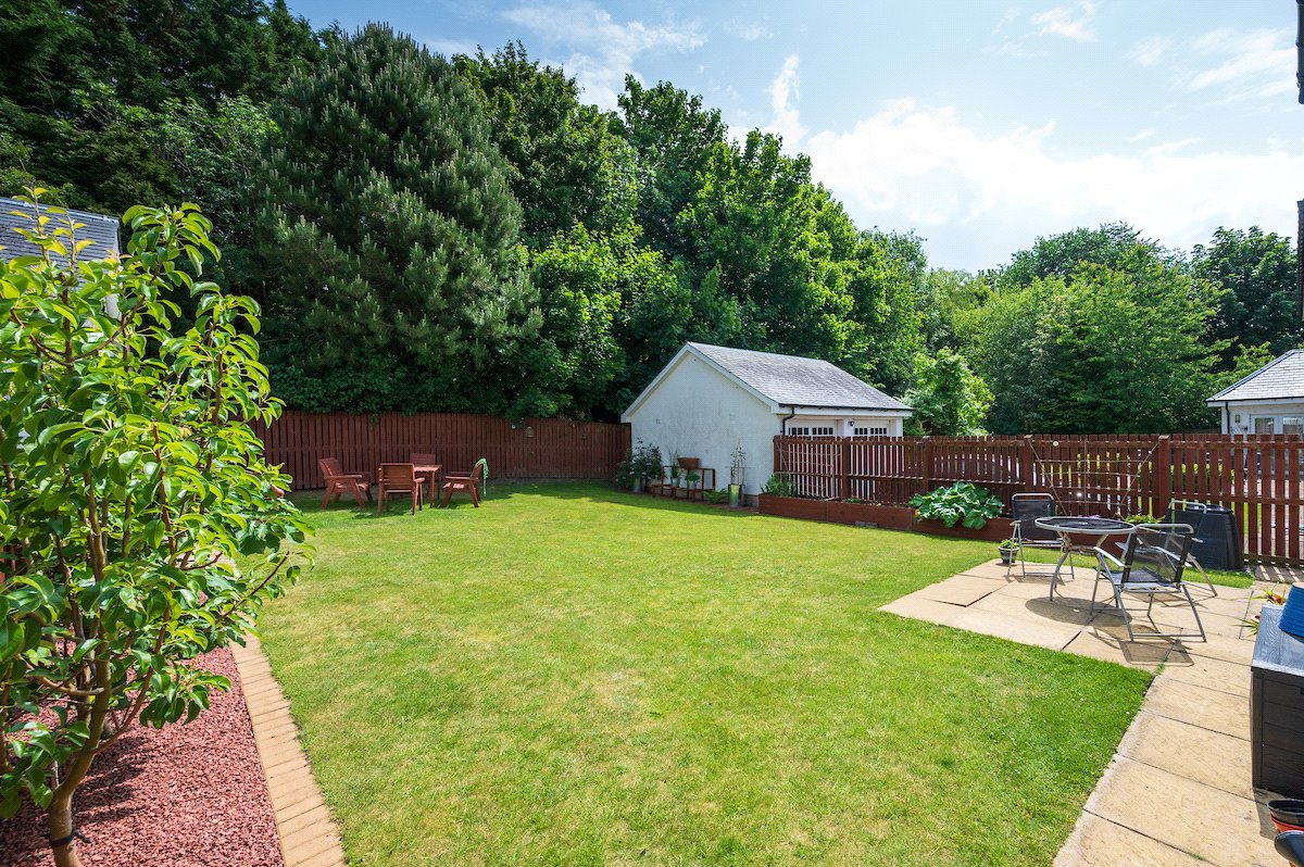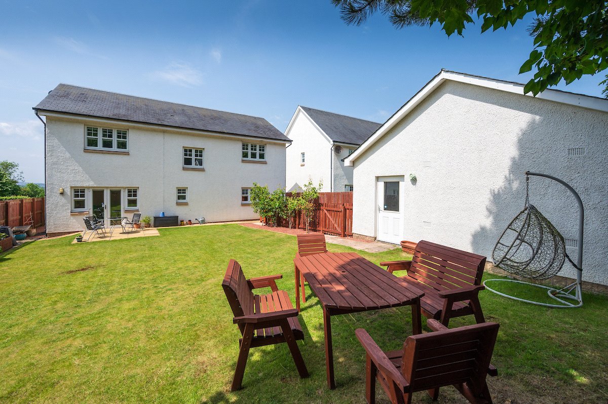 woodland to the rear, predominantly laid to lawn, with herbaceous borders and fruit trees, with a paved patio area perfect for alfresco dining.