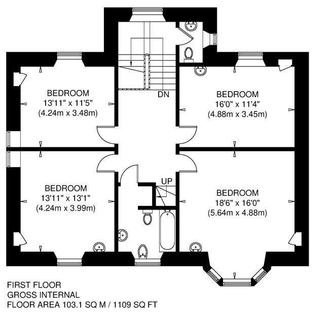 First Floor: Landing, Principal Bedroom, 3 Double Bedrooms and a Family Bathroom