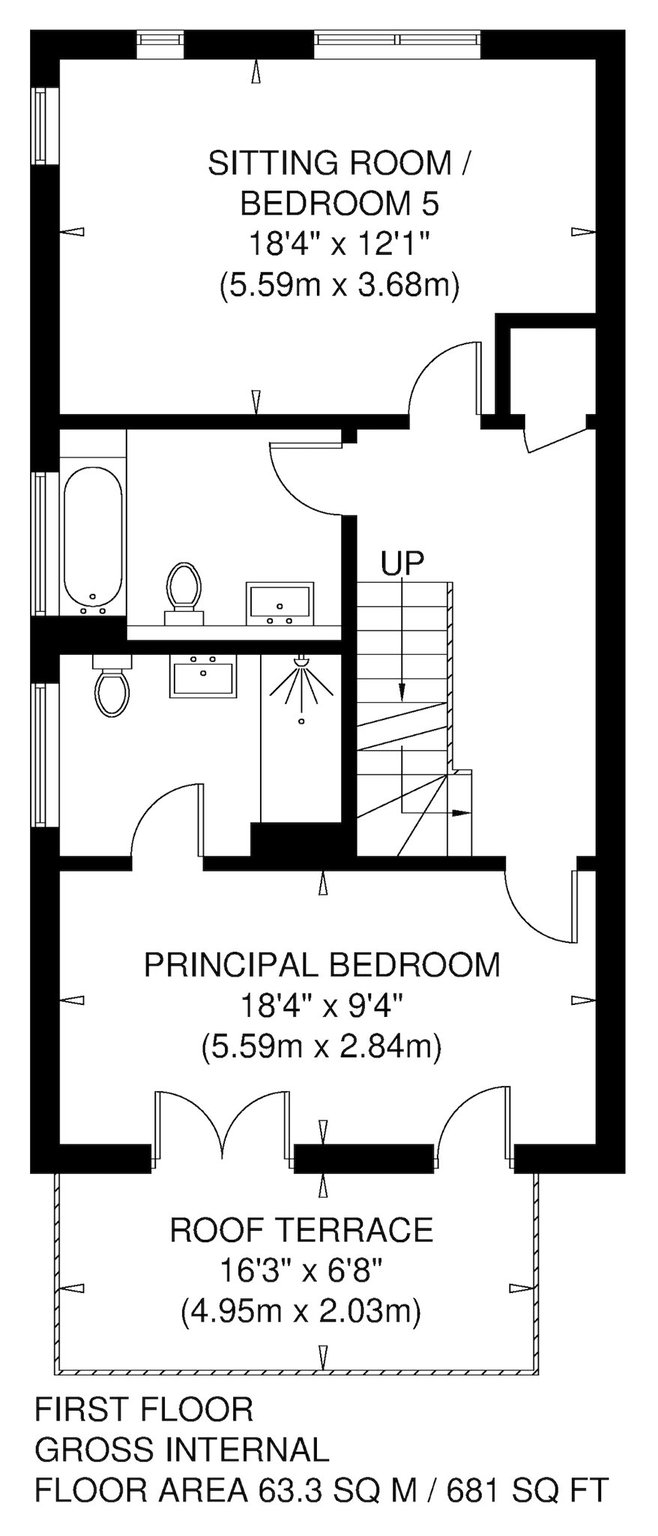 First Floor: Landing, Principal Bedroom with terrace and ensuite Shower Room, Sitting Room/Double Bedrooms and a Bathroom.