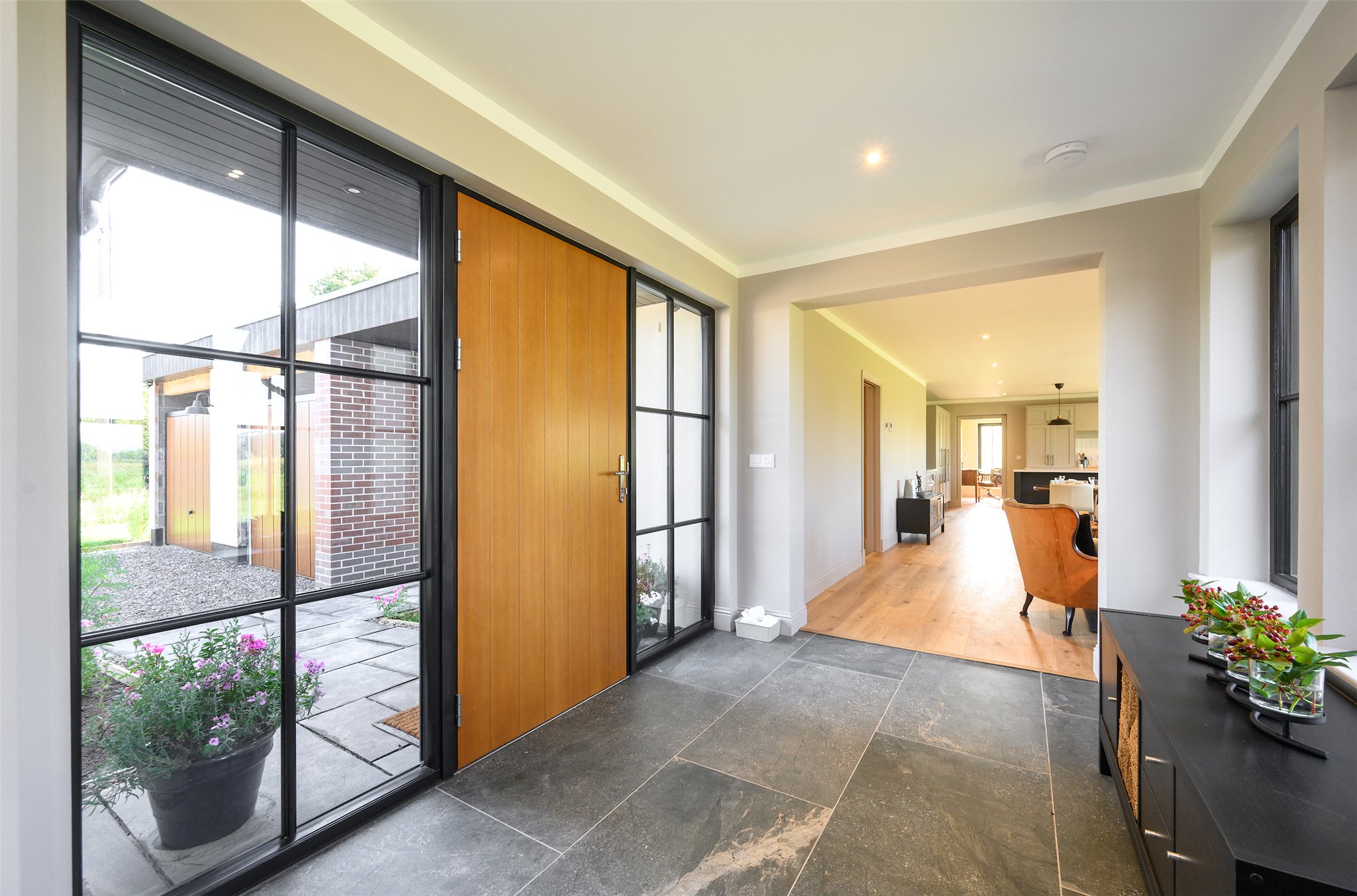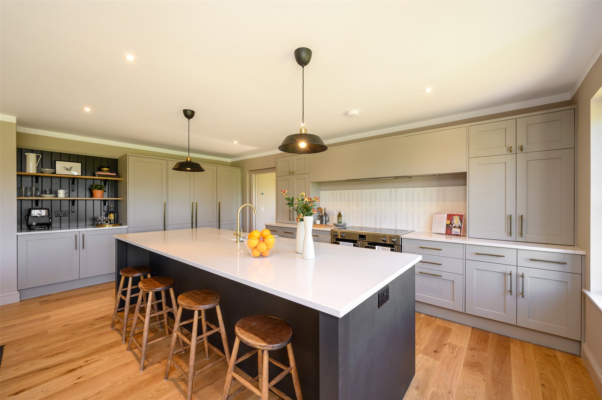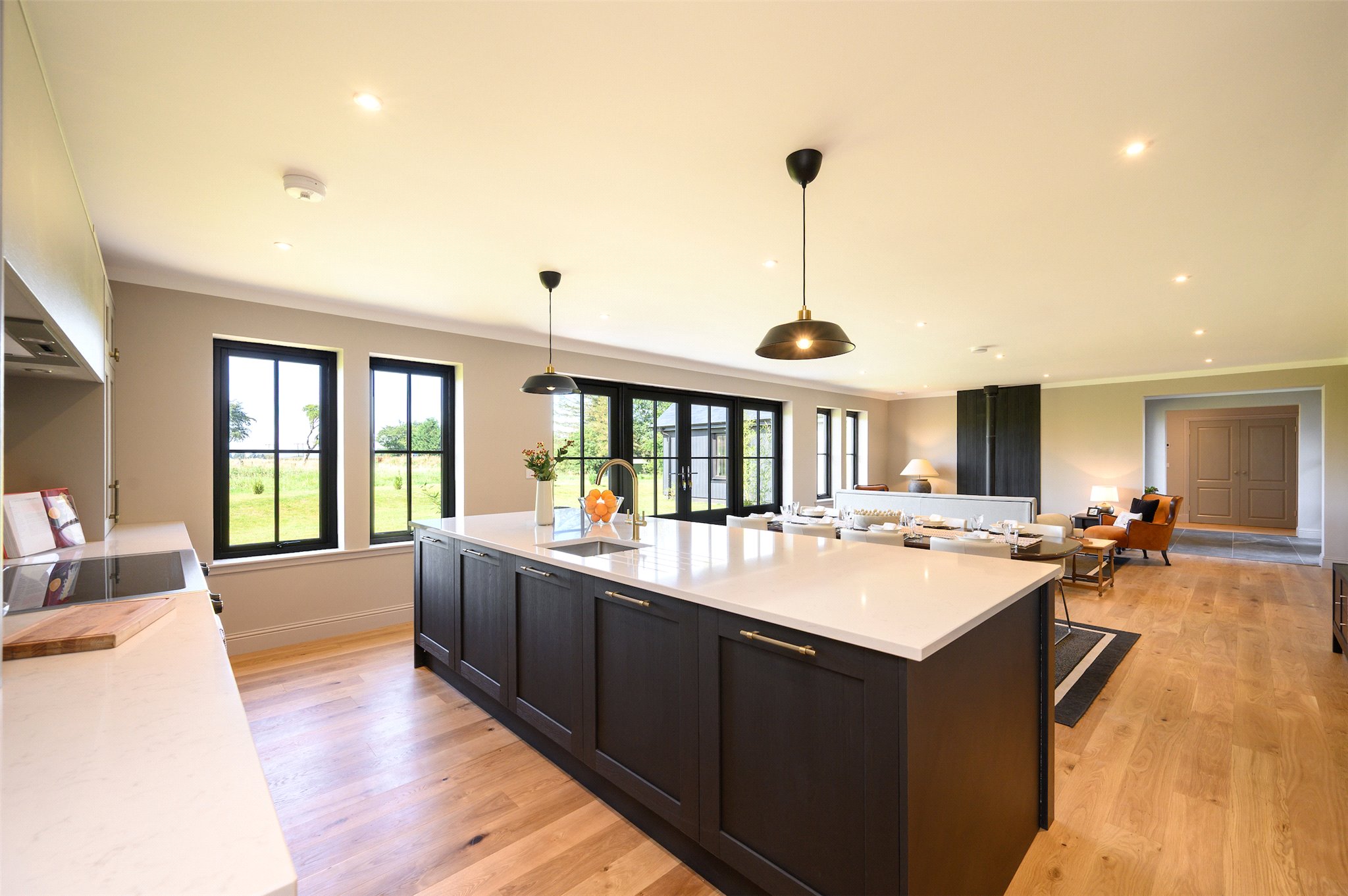 Ground Floor: Entrance Hall, Open Plan Kitchen-Living-Dining Room, Family Room/Study, Pantry, Utility, Shower Room. Principal Bedroom with En Suite Shower Room, Double Bedroom with En Suite Shower Room, Two Further Double Bedrooms, Family Bathroom and a Hall Cupboard.