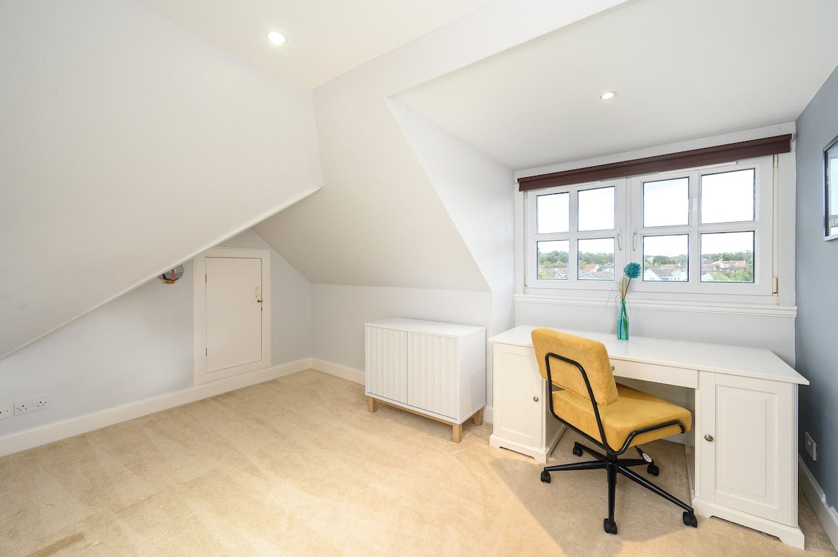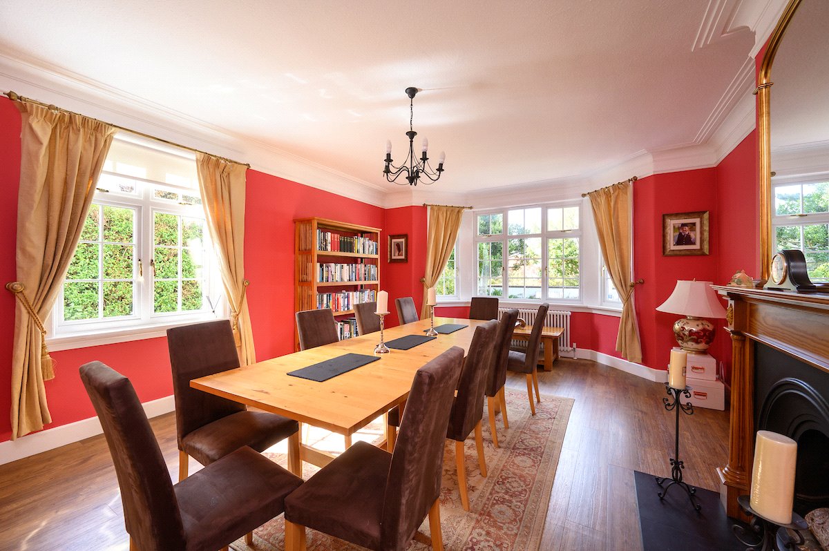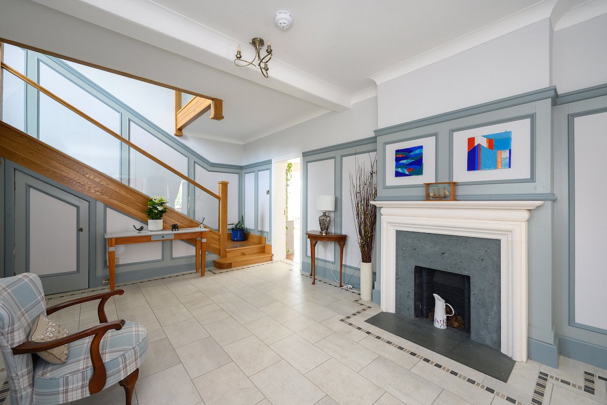 The striking property still retains a number of period features to include wonderfully bright bay windows, the original decorative tiled floor in the entrance vestibule, a beautiful stained-glass window as you enter the hall, oak panelling which has been stylishly painted by the current owners, as well as the original maid’s bells which are still in working order.