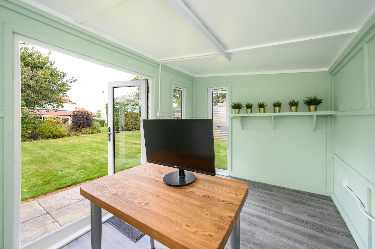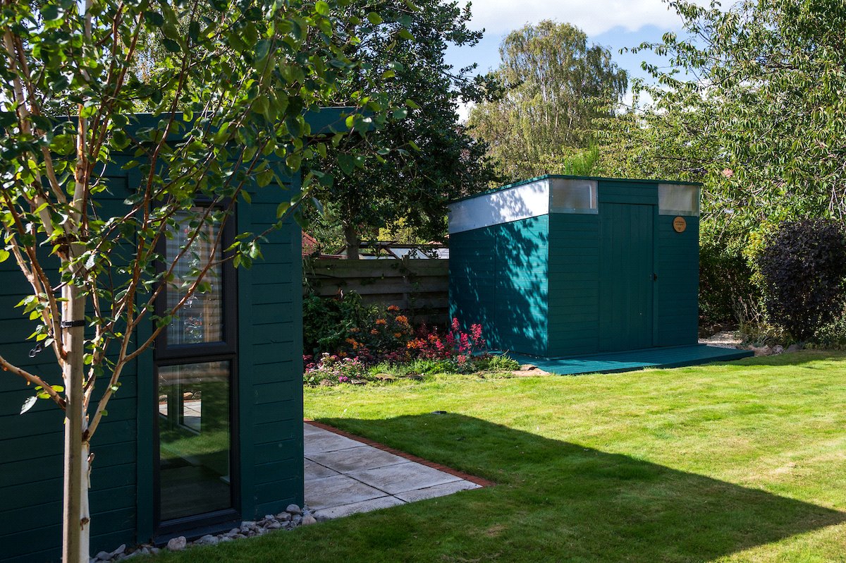 Outbuildings: Garden studio/office, workshop and two timber garden sheds