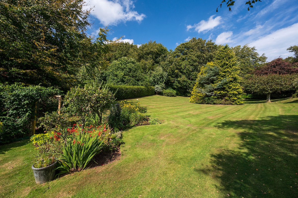 Garden: Expansive gardens surround the cottage, mainly laid to lawn with colourful herbaceous borders, mature trees and shrubs