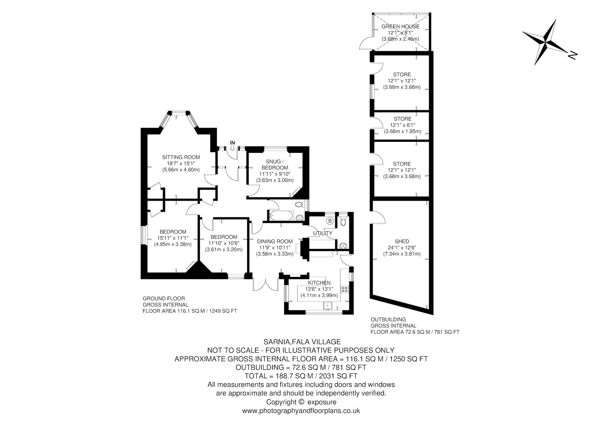 Outbuildings: An attractive brick built outbuilding consisting of three internal storerooms, with an adjoining large store/workshop and greenhouse.