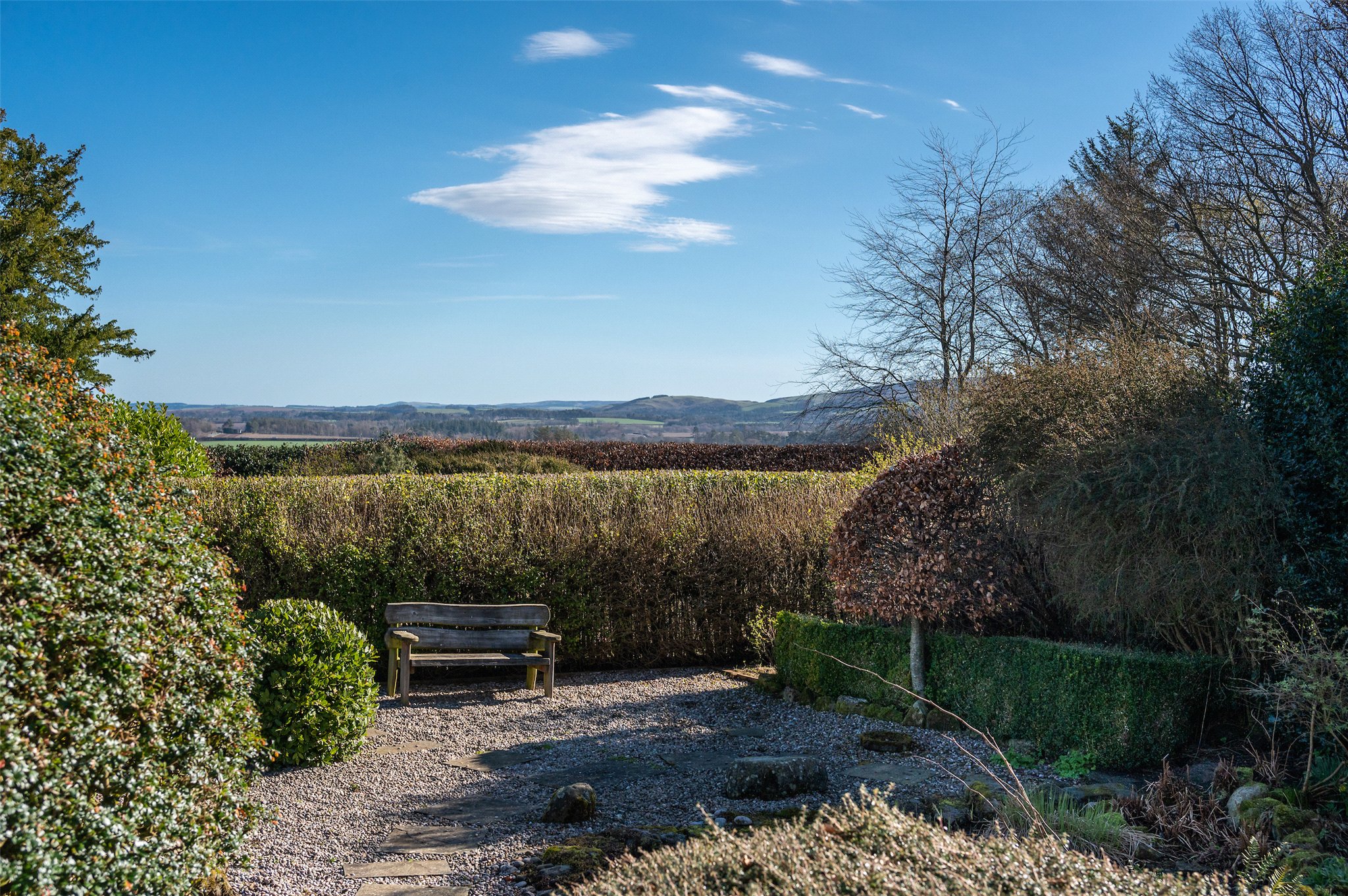 Garden: The garden’s wrap around the house and consist of a front and rear garden, with kitchen garden and woodland with views overlooking rolling Midlothian countryside.