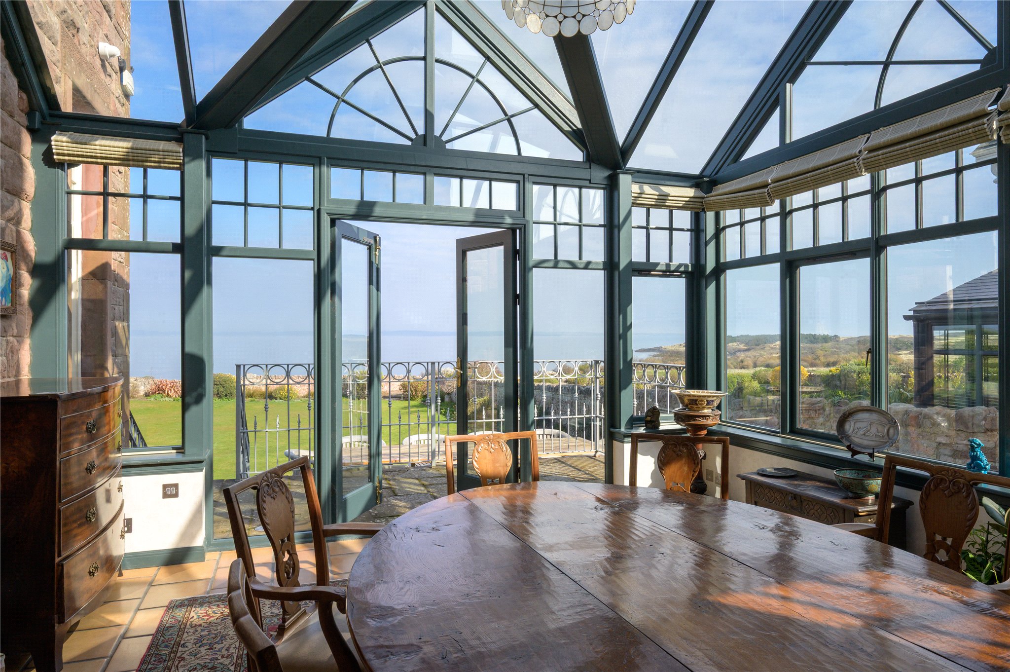 Beautiful gardens encompass the property, with colourful herbaceous borders, mature trees and shrubs. The large front lawn boasts incredible sea views and a doorway through the perimeter stone wall provides direct access to Gullane Bents and the beach beyond – a wonderful addition for any homeowner, but especially useful for those with dogs or children.