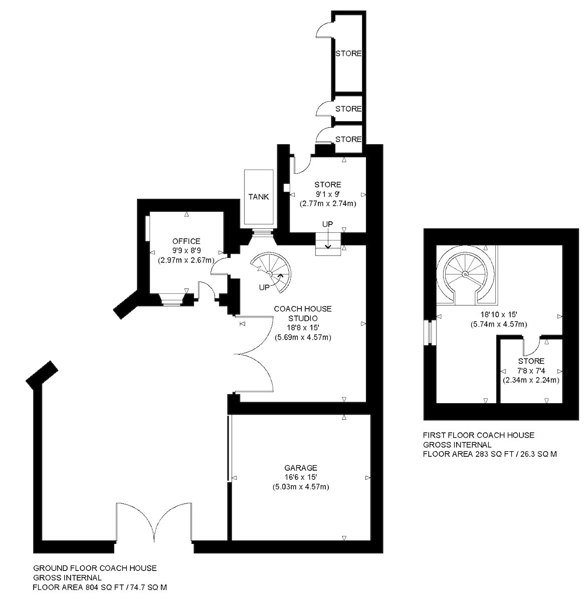 Outbuildings: Coach House with storage over two floors, Garage and 4 Coal/Storage Sheds