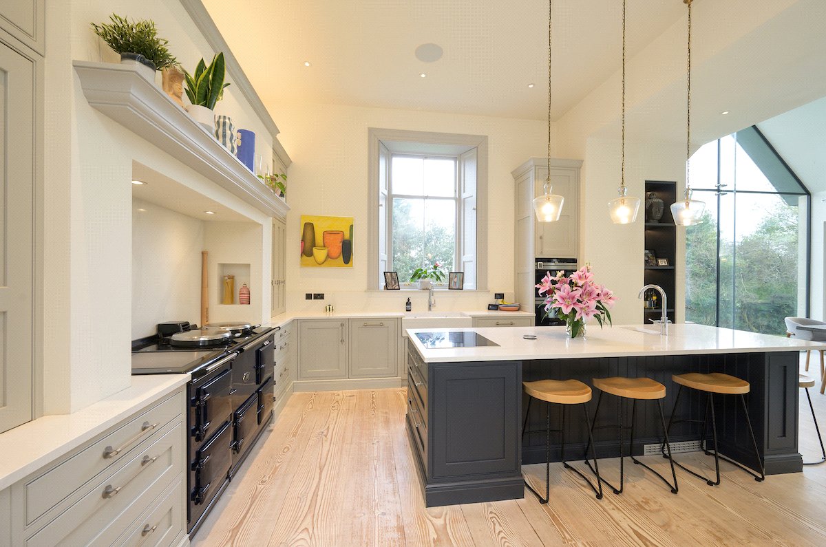 A beautiful 8-bedroom country house only a short distance to Edinburgh city centre, with landscaped gardens, spacious interiors and a stunning contemporary kitchen extension.