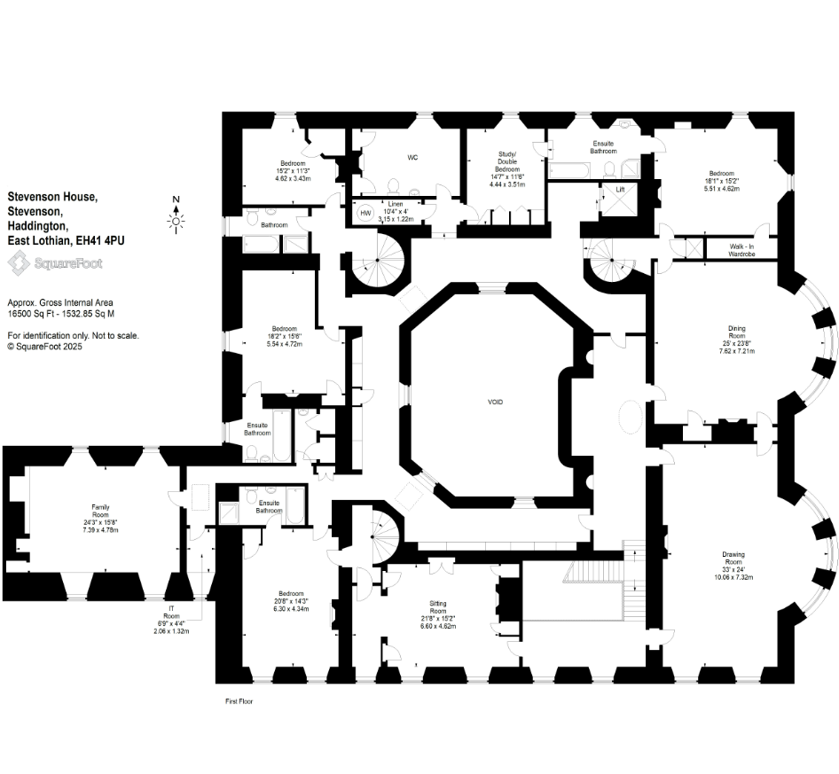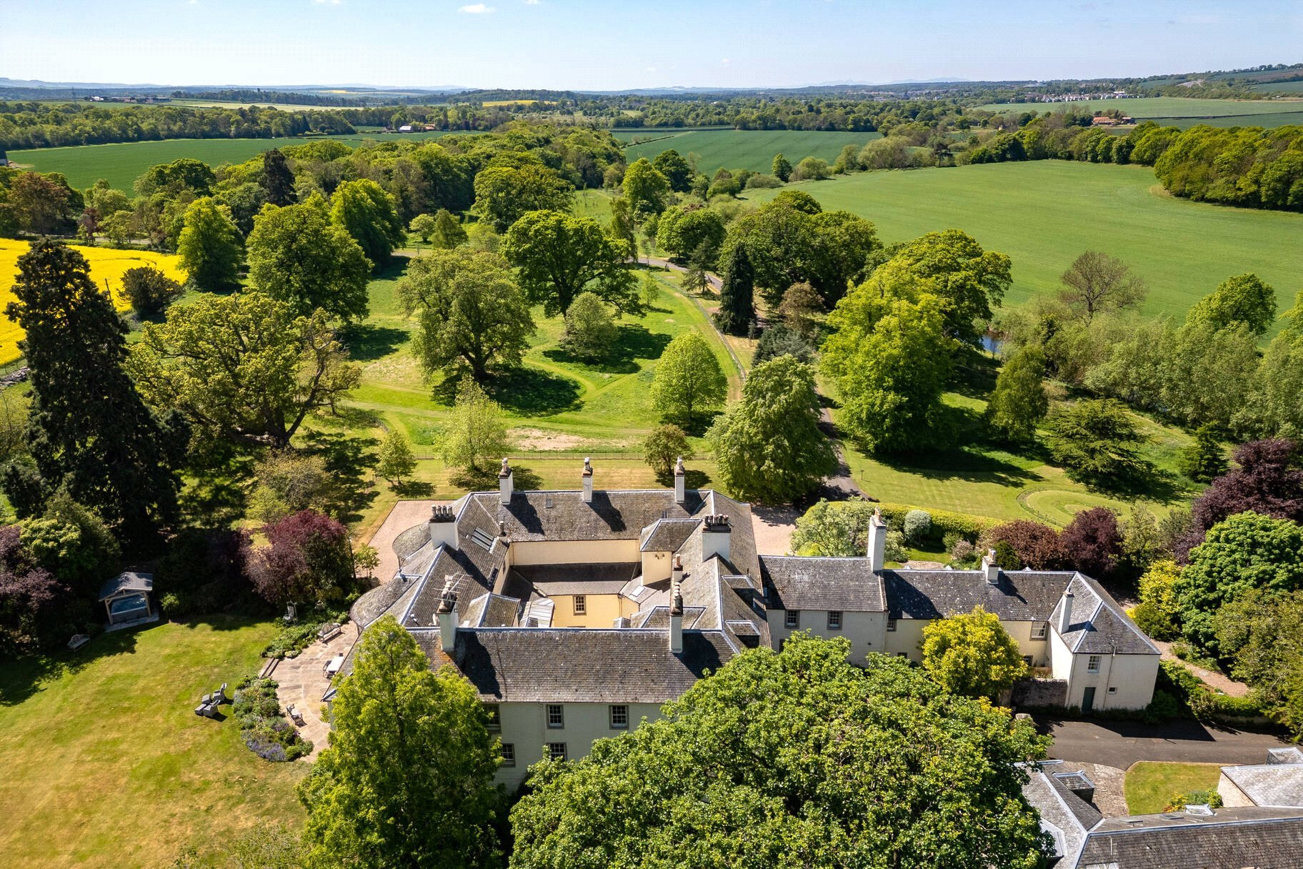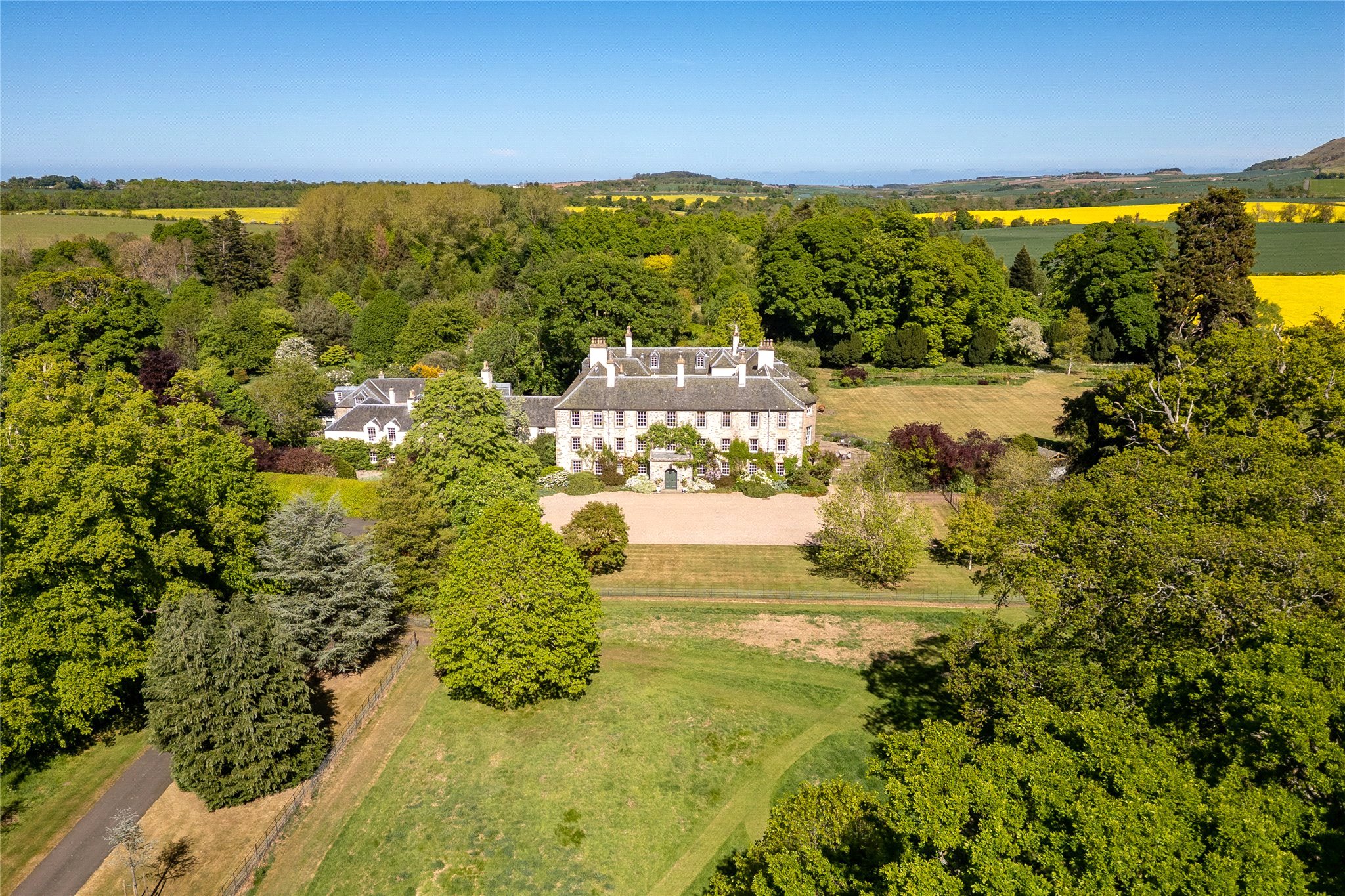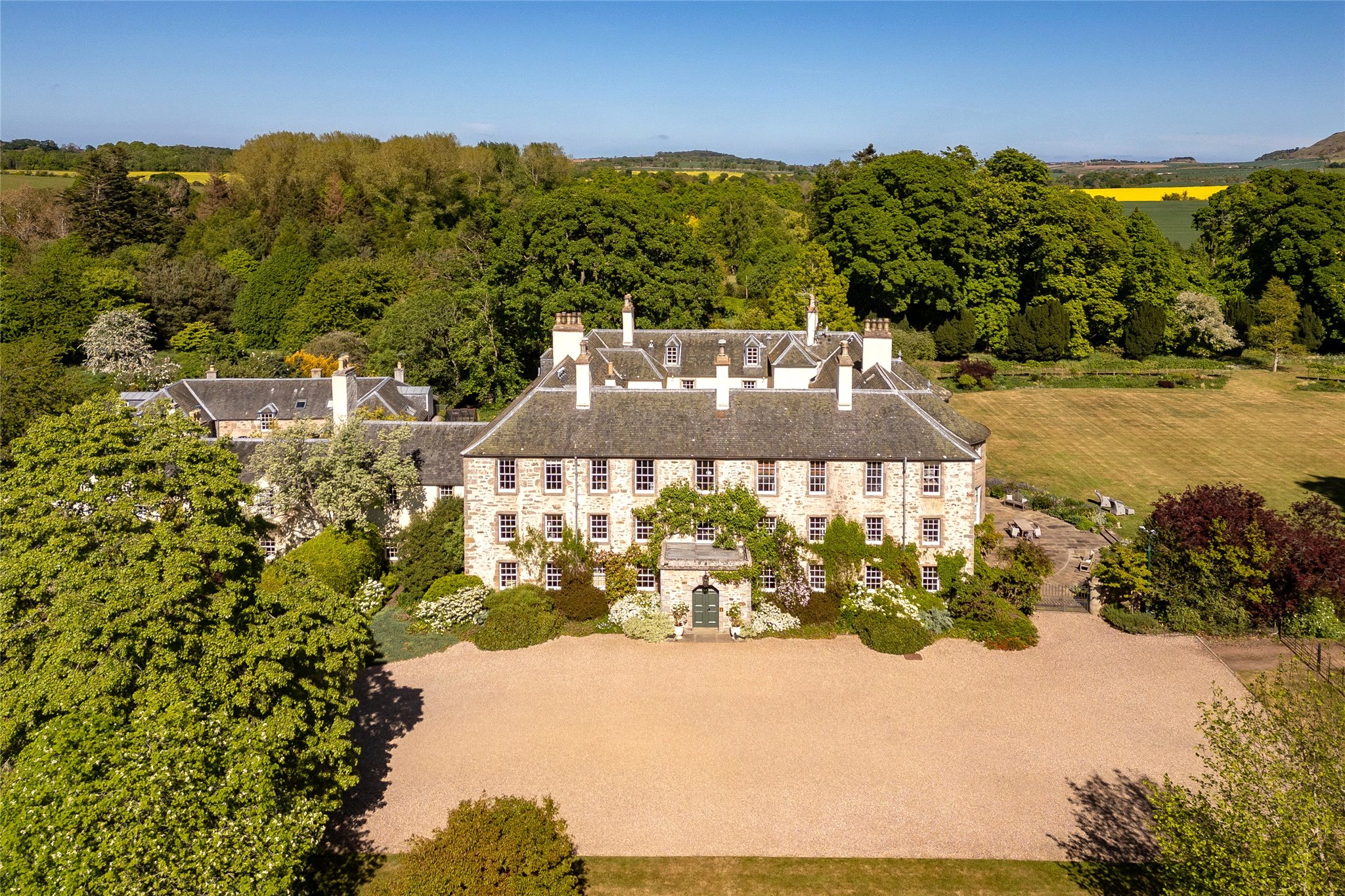 A superb Country House dating from circa 1560 with later additions surrounded by beautiful gardens and policies. Three Grand Reception Rooms, Three Informal Reception Rooms, Games Room, spacious open-plan Kitchen with Dining area, Laundry, Boot Room, Domestic Offices, Lift to all floors, Master Bedroom Suite, Four En-Suite Bedrooms, 3 Further Bedrooms and 2 Bathrooms.