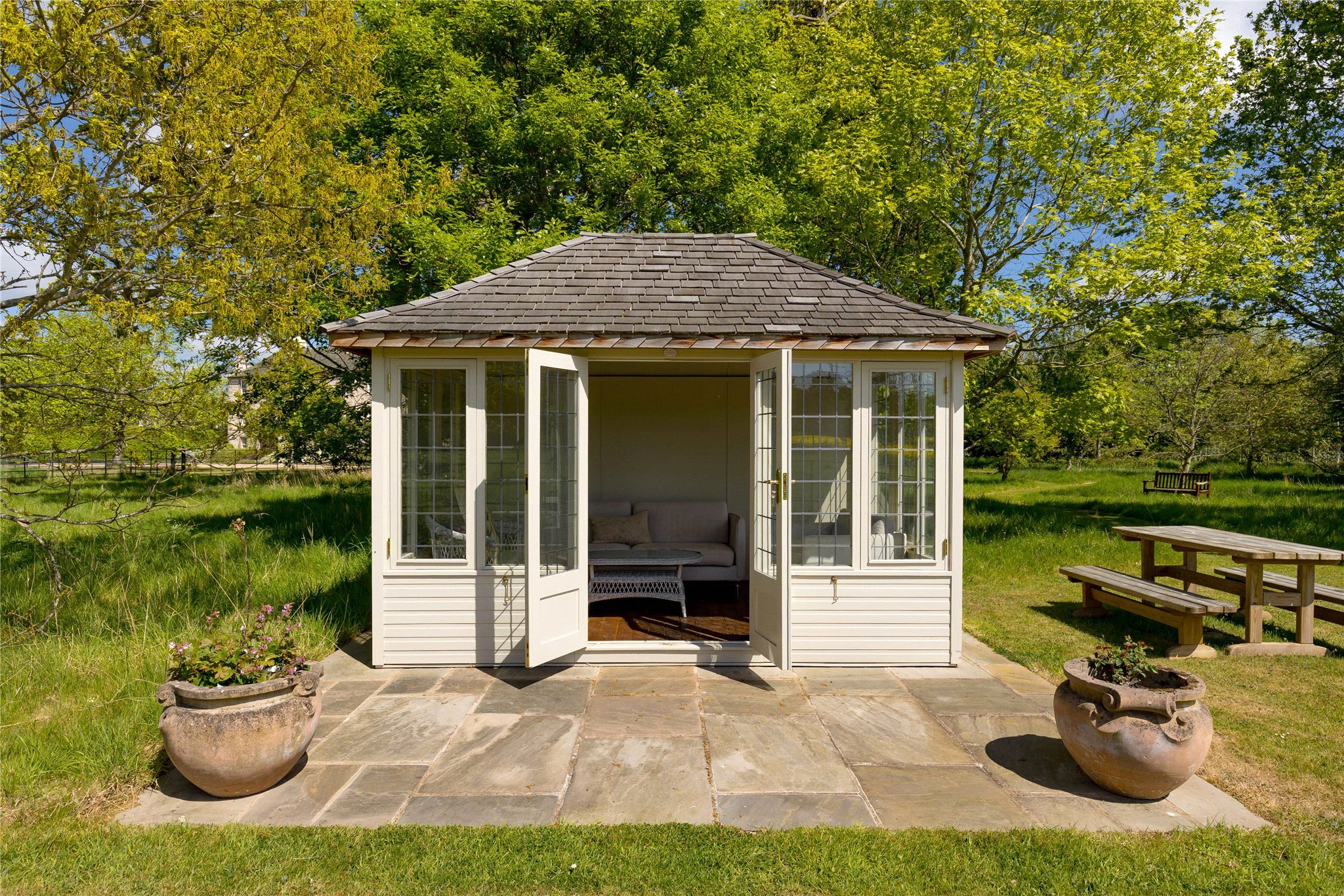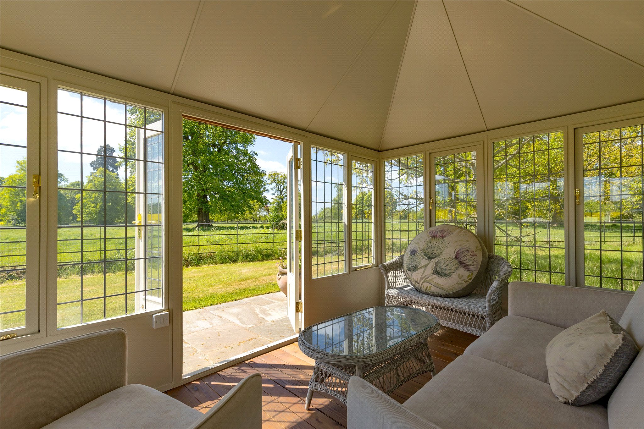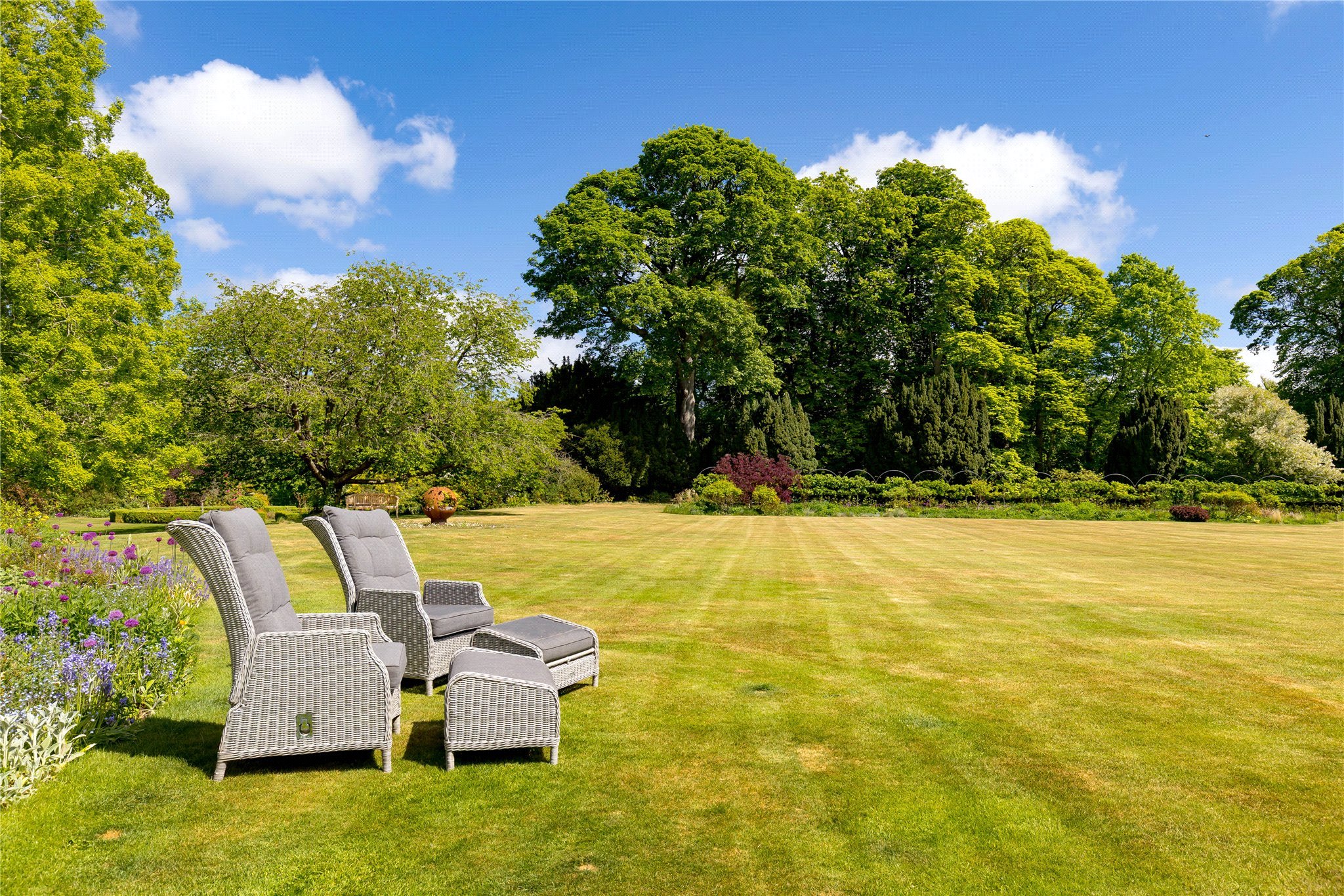 Stunning formal Gardens featuring mature specimen trees. Wild garden leading to riverside walk.
