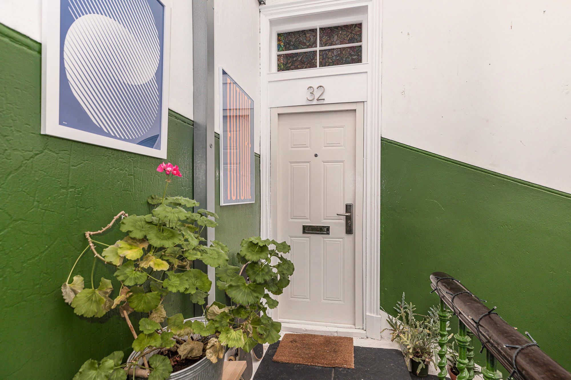 The accommodation of the flat itself comprises welcoming reception hallway, lounge with intricate cornicing, open plan onto a gorgeous bay windowed kitchen with a range of integrated appliances, base and wall mounted units and ample space for dining table and chairs, double sized bedroom one with feature stove and fabulous walk-in wardrobe with in-built drawers and hanging space, second double sized bedroom with feature stove that could also be utilised as a home office or study space.