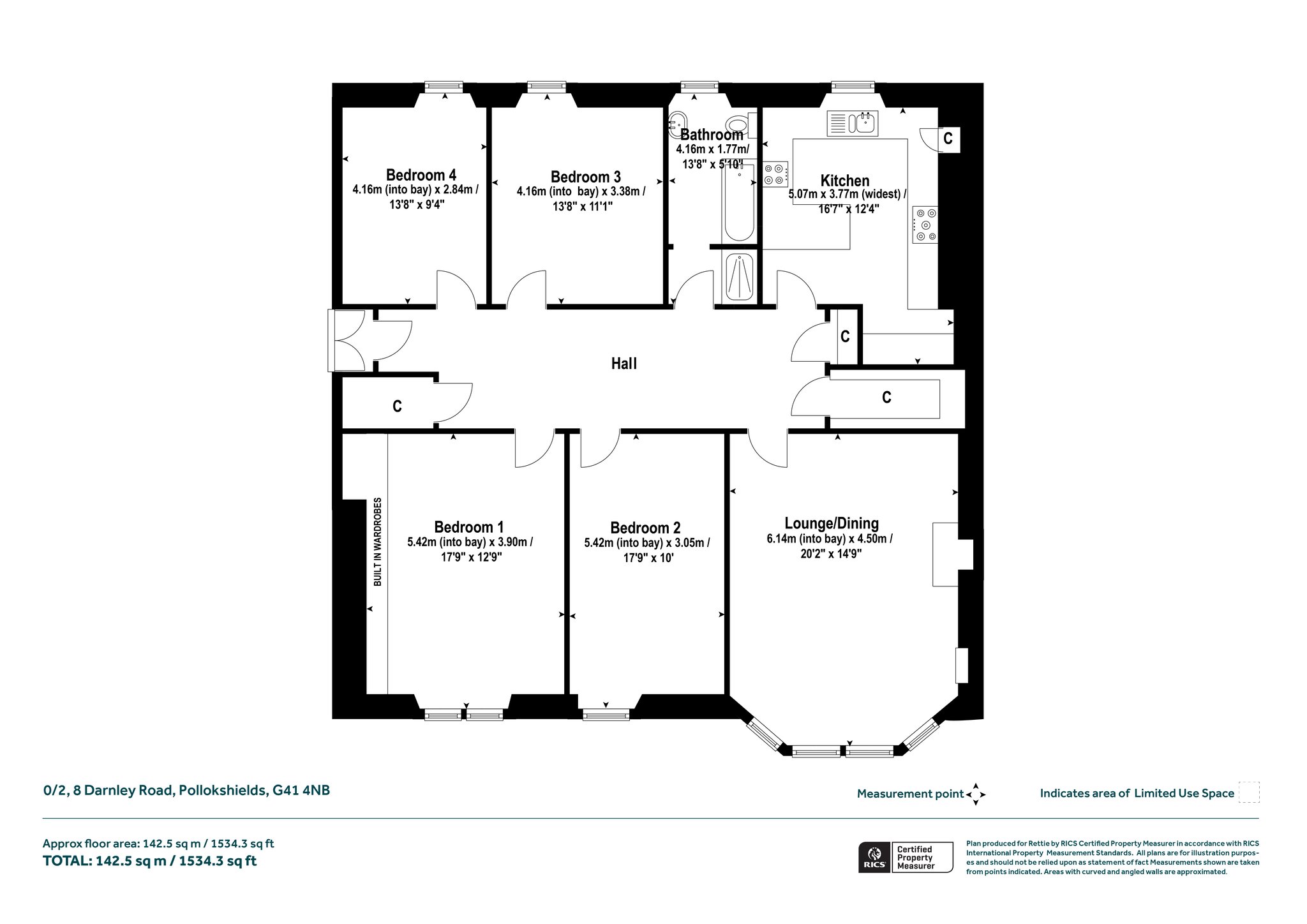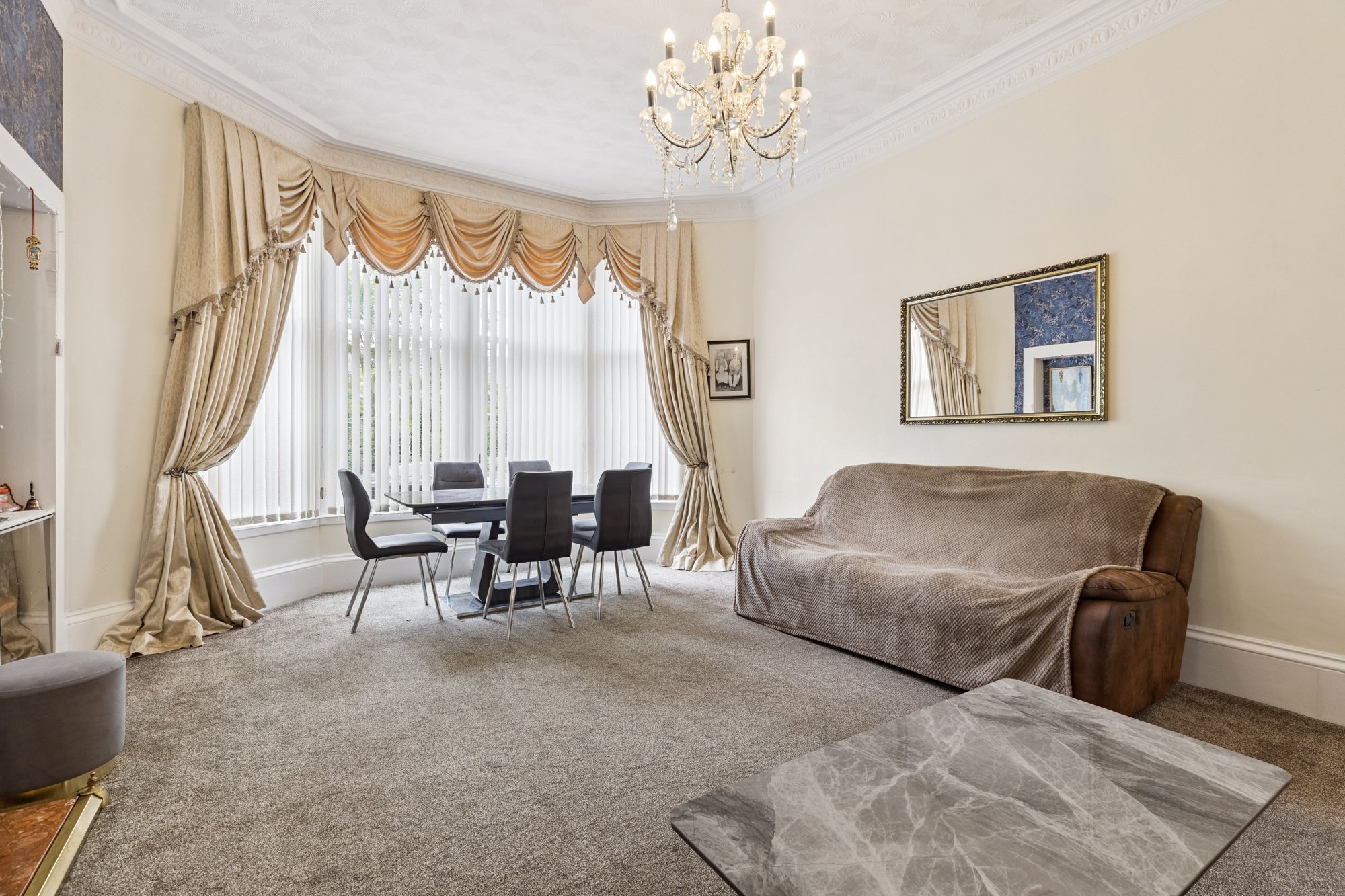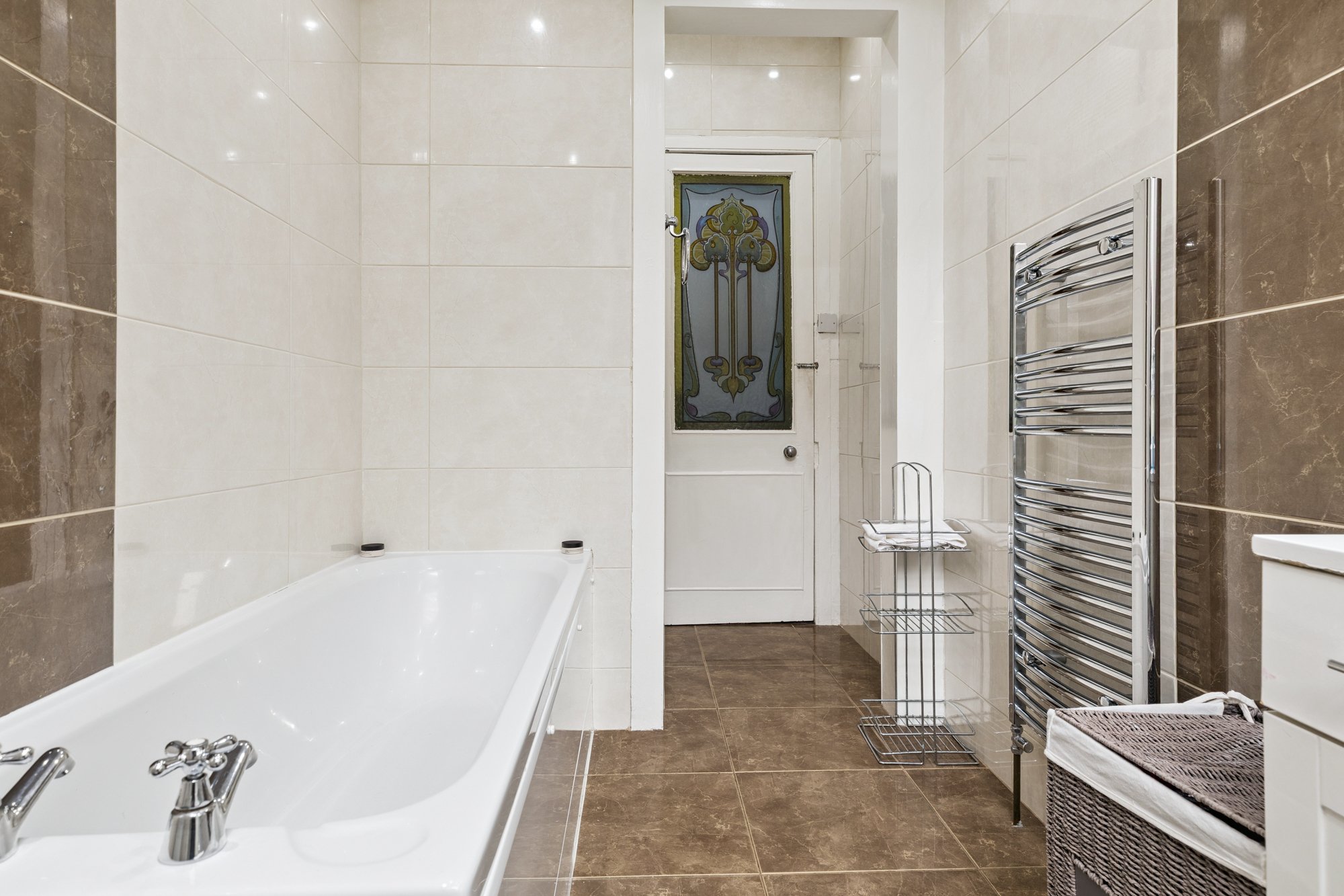 The home boasts original glass inlays to some internal doors, cornicing and access to small private front garden at street level. There is also an extremely well kept rear garden providing drying and refuse facilities. From a secure communal entrance into a well kept and attractive communal hall, this superb property comprises; entrance vestibule into large welcoming reception hallway with expansive walk in storage cupboards off, large and bright formal sitting room with bay window, feature gas fire and attractive open outlook on to Darnley Road, dining sized kitchen integrated appliances a good range of floor and wall mounted storage cupboards and breakfasting bar. There is also a large 4 piece family bathroom. The four generous double bedrooms are all good proportions (and have a flexible use).