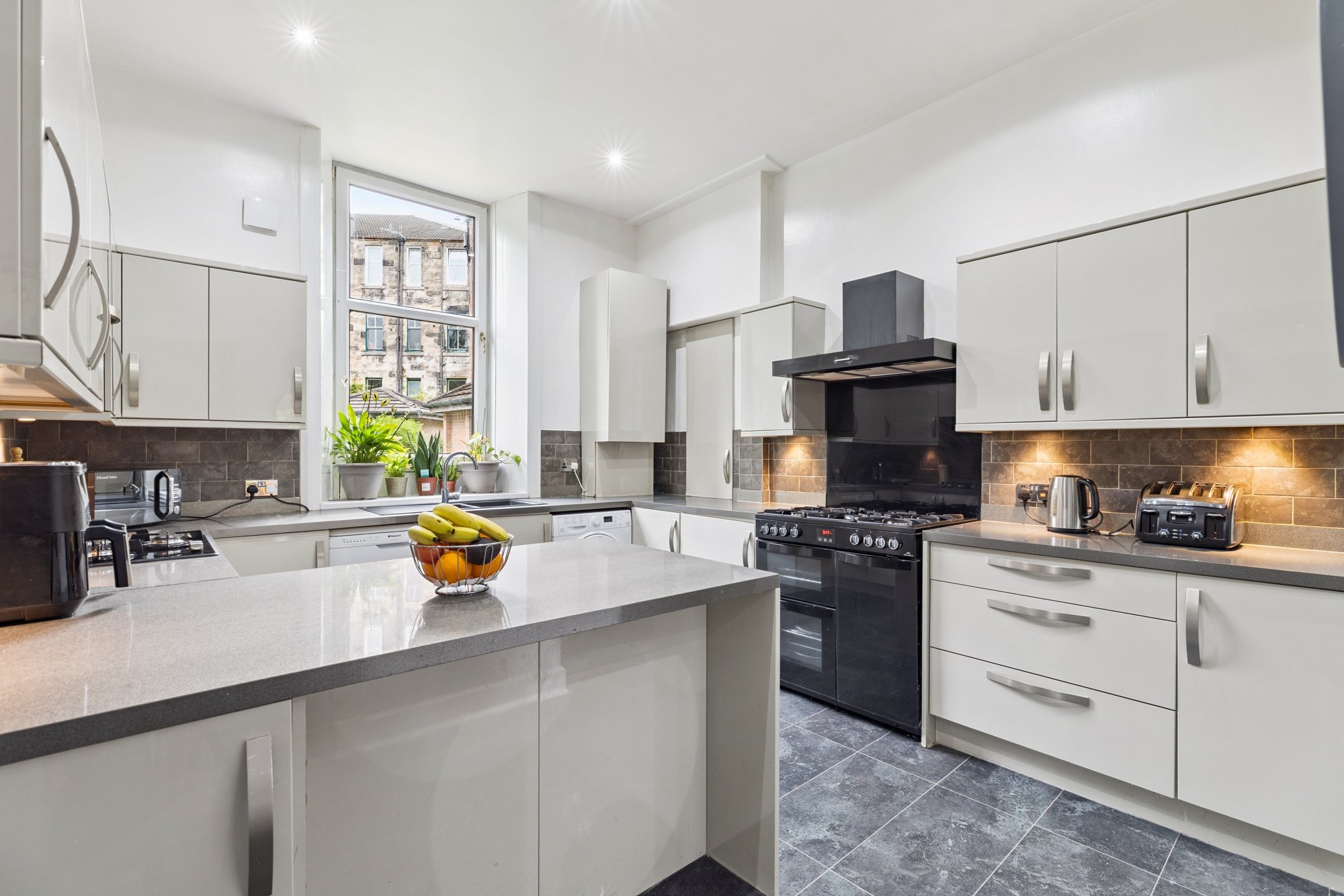 8 Darnley Road is within walking distance of popular amenities in Pollokshields and Strathbungo where thriving coffee houses, restaurants, gastropubs, and delicatessens are found. More extensive facilities are available at the Crossmyloof Morrisons store or the Sainsburys store on Darnley Road. Recreational pursuits within the area are available at Maxwell Park, Pollok Country Park, or Titwood Tennis Club. Pollokshields West train station is approximately 250 yards walk and only a six minute journey by train to the City Centre. Shields Road underground station is less than two miles away. The M77 connects the Southside of Glasgow to Scotland's motorway network.