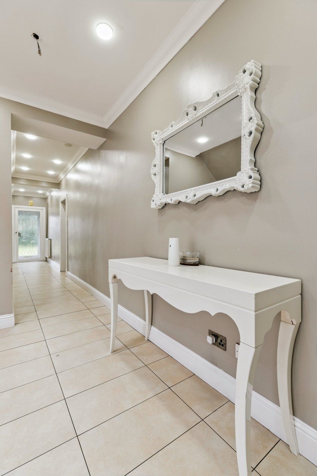 The accommodation comprises welcoming galleried hallway, bright spacious formal lounge, leading on to open plan dining room. A further large family/TV room flows on to level gardens (via patio doors). A fitted dining sized kitchen which is complimented by floor and wall mounted units enjoys views over gardens.