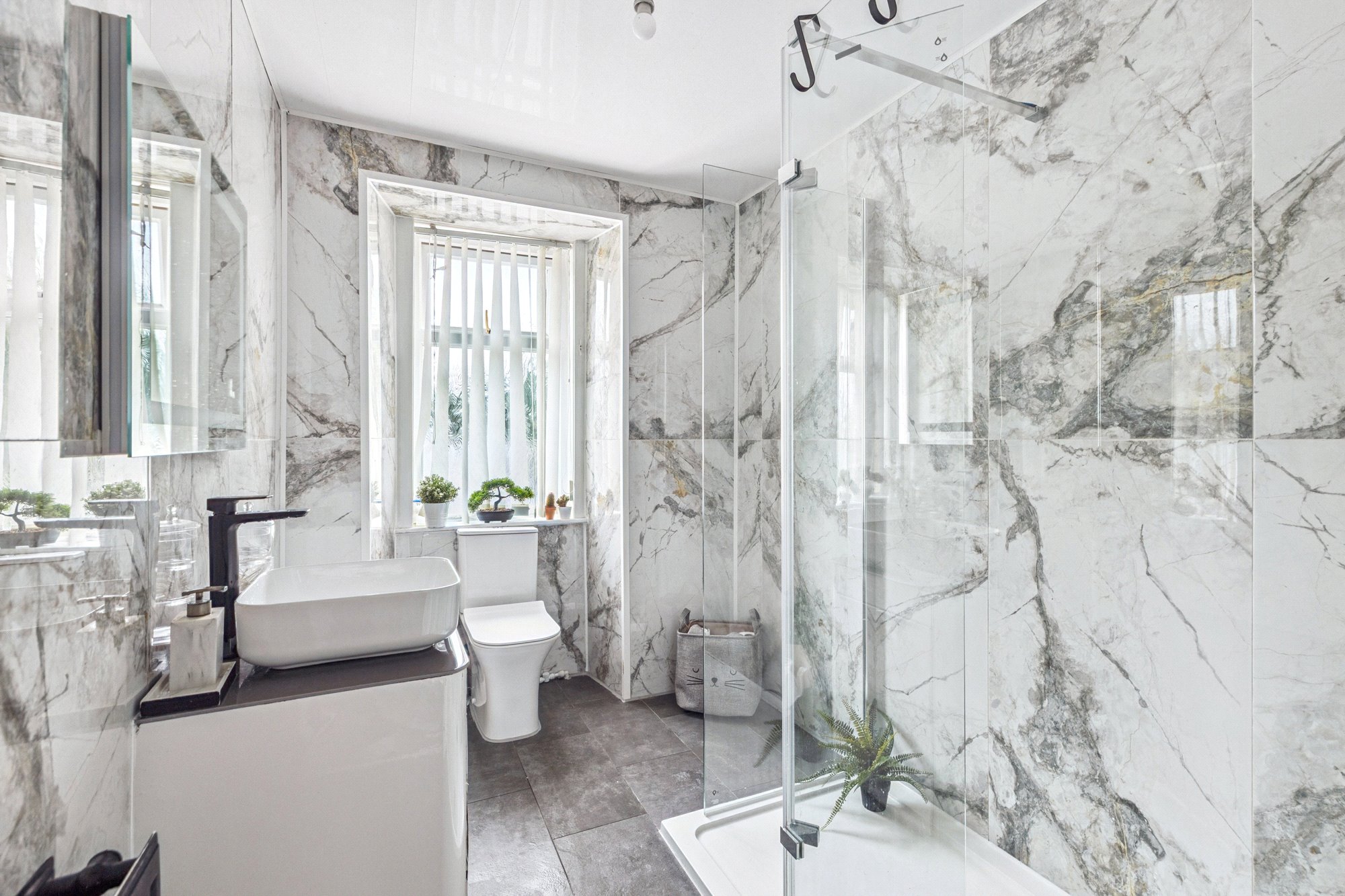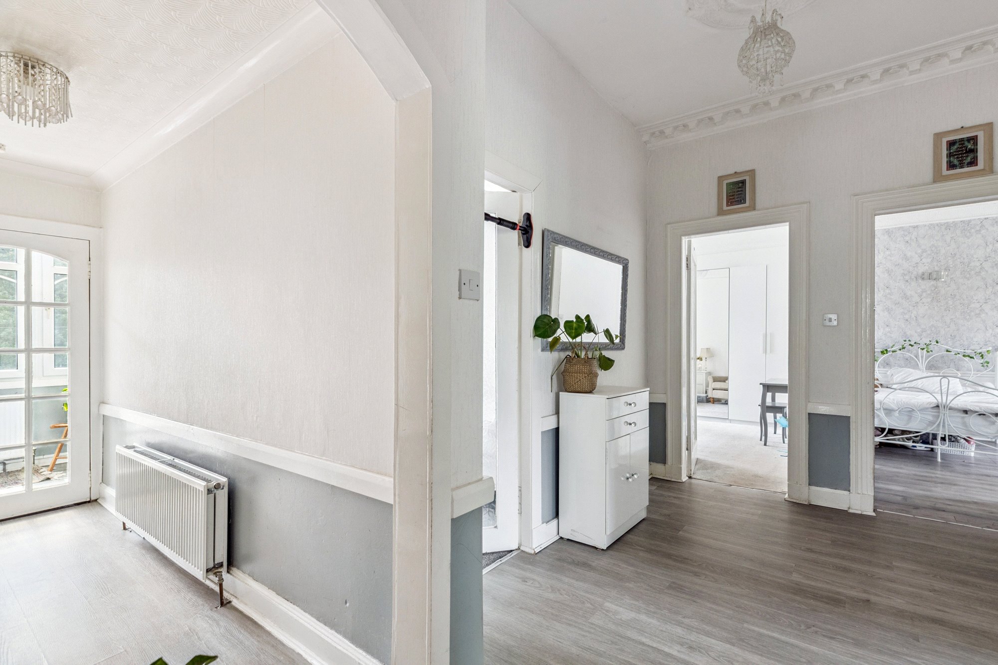 The accommodation of the property comprises entrance vestibule, reception hallway bay windowed lounge with cornicing and feature fireplace, kitchen with a range of integrated appliances, base and wall mounted units and splashback. There is a spacious bedroom one with cornicing and feature fireplace, second double sized bedroom, tiled shower room with white two piece suite, vanity unit and separate glass shower enclosure and third bedroom that could easily be utilised as a home office or study.
