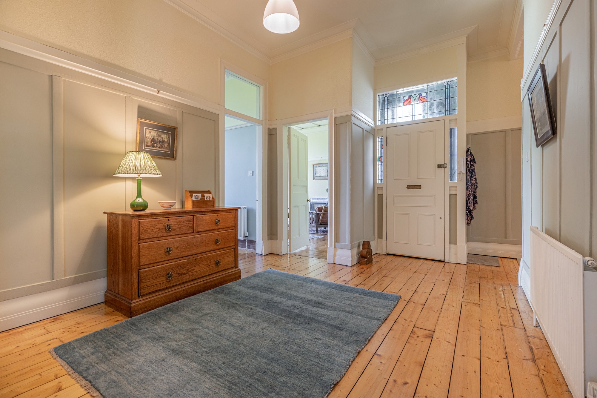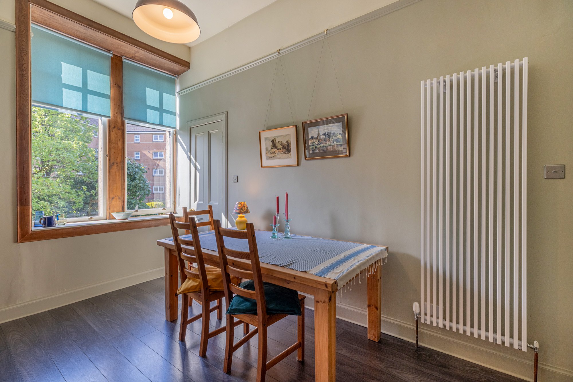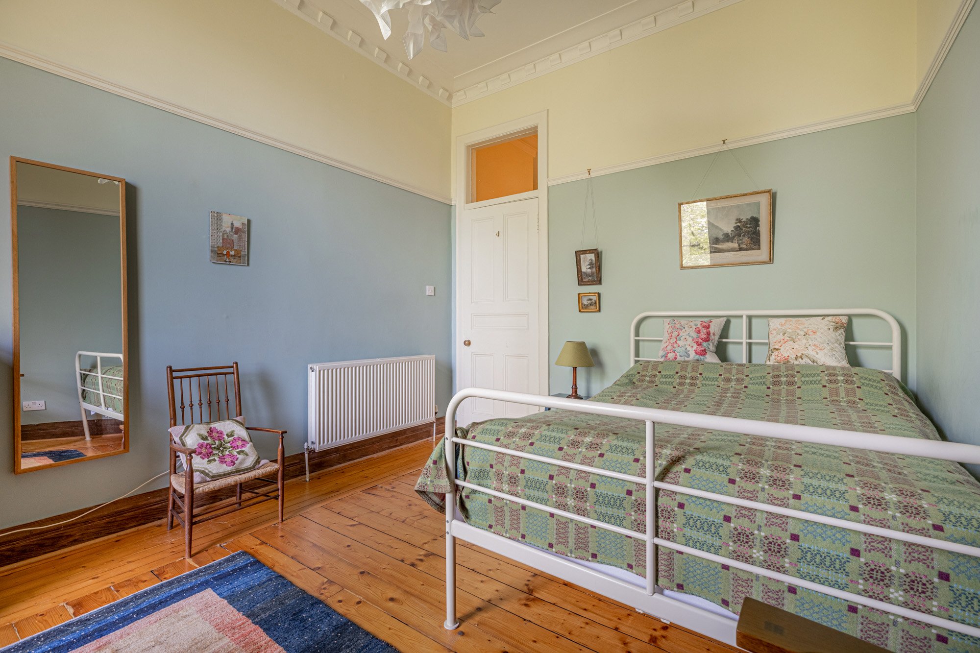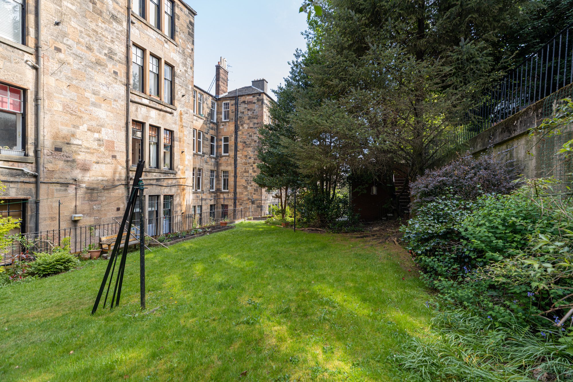 The property benefits from timber framed single glazing with draught-proofing, gas central heating, and a range of period features including original and new floorboards, stained glass, cornicing and restored woodwork. The tenement is accessed via a secure door entry system into a well-kept communal close and stairwell. Externally there is a communal rear garden. Residents also enjoy access to a private woodland walk to the front known as the Pleasure Gardens.