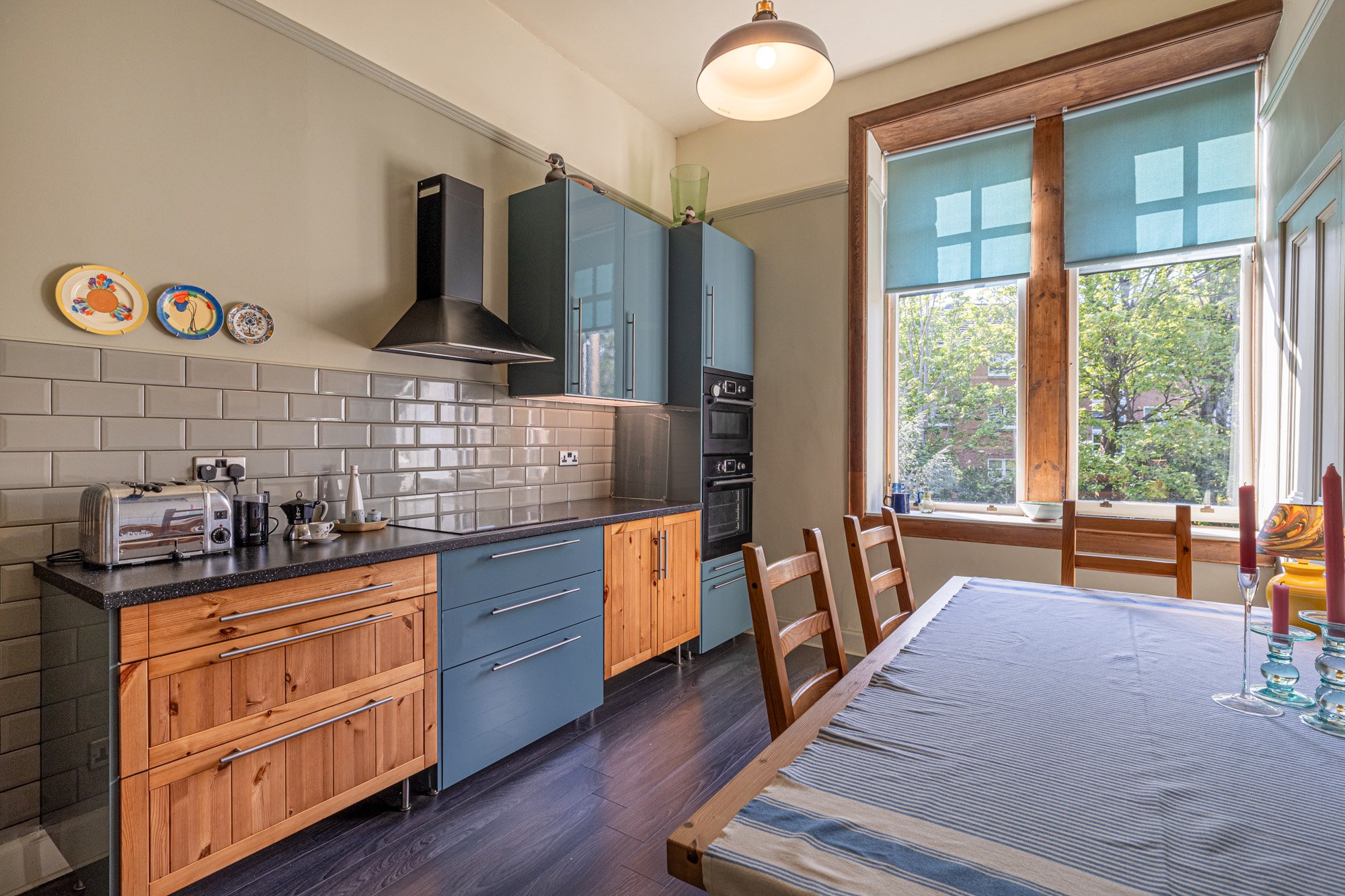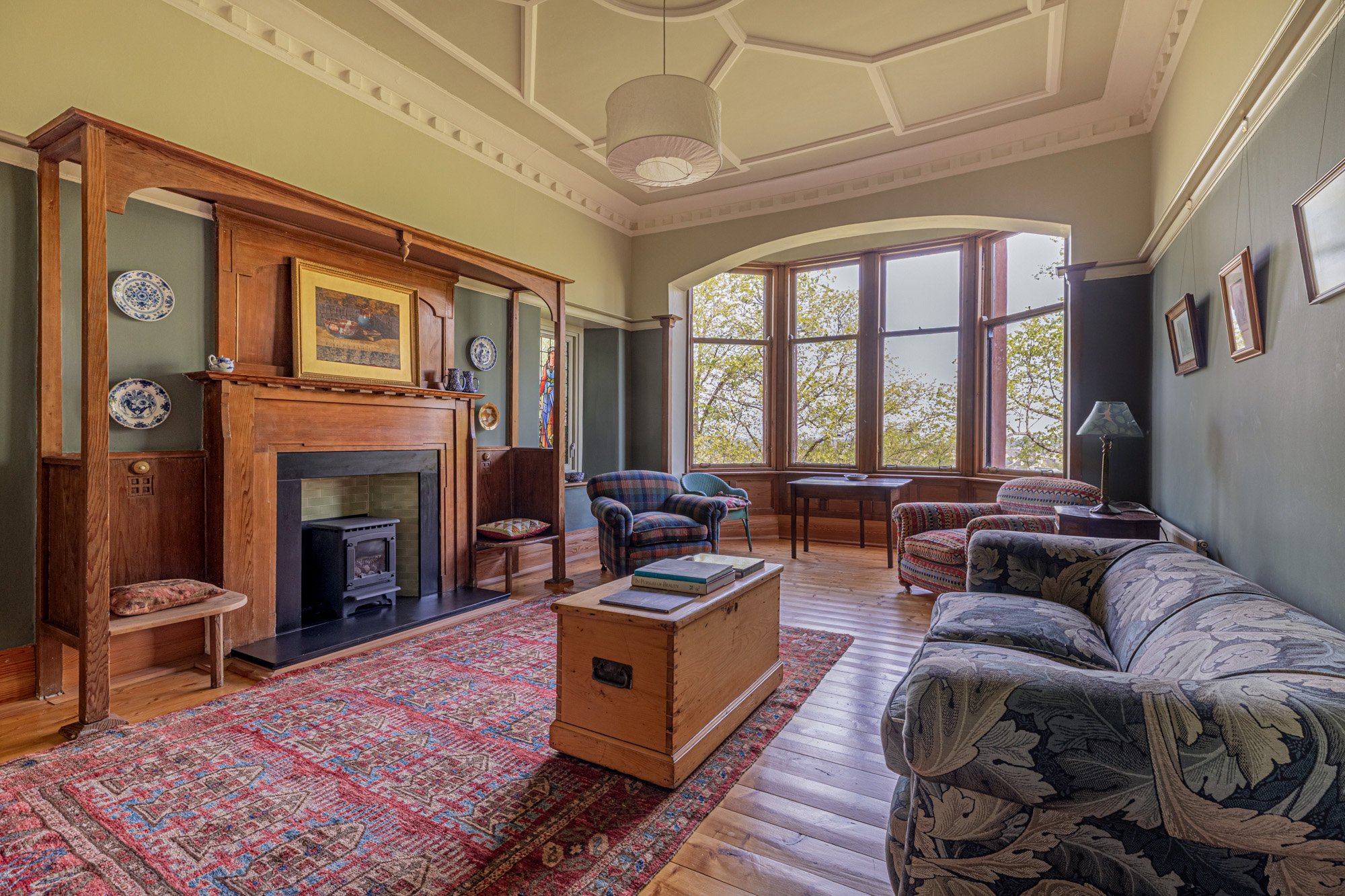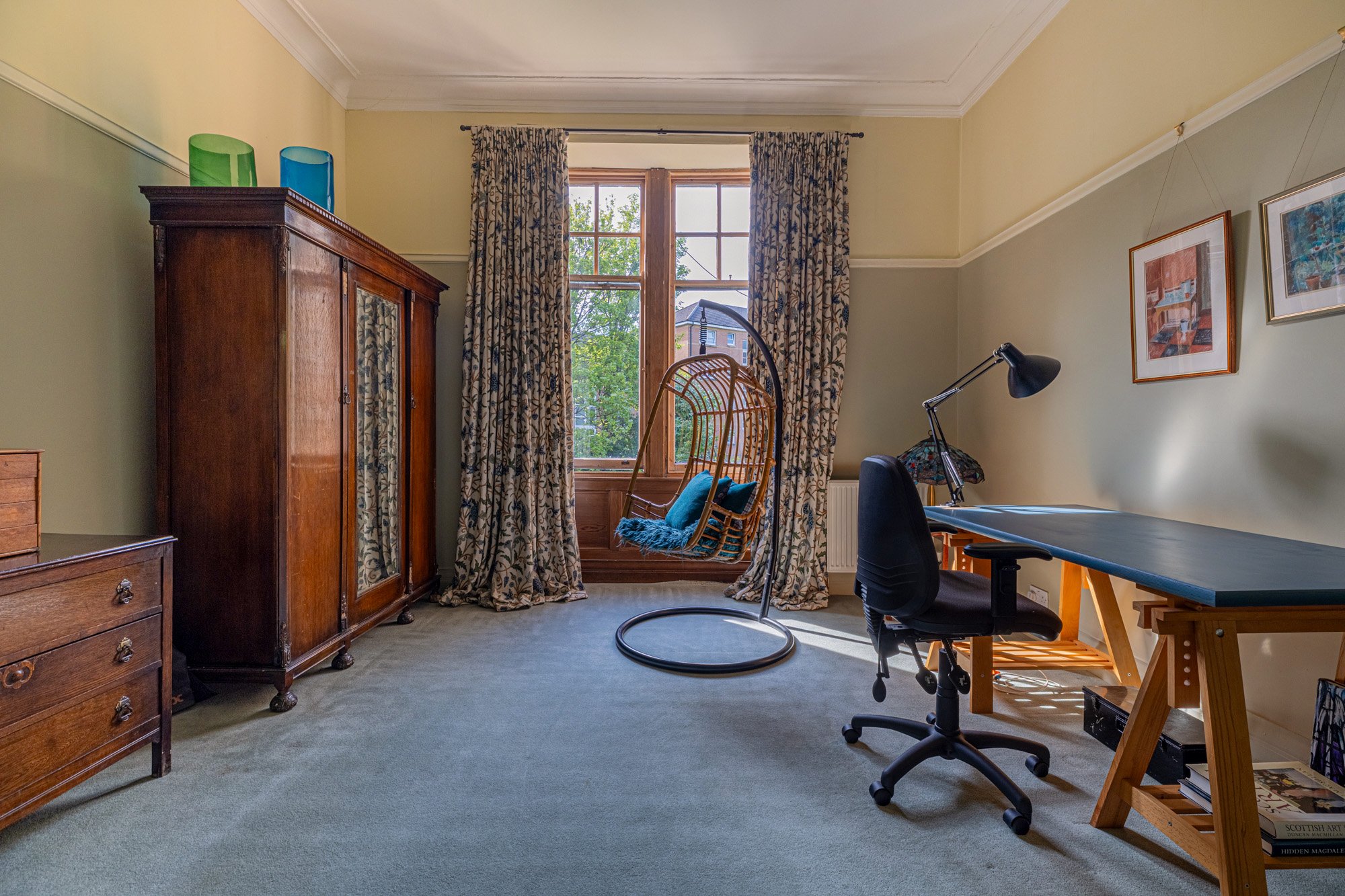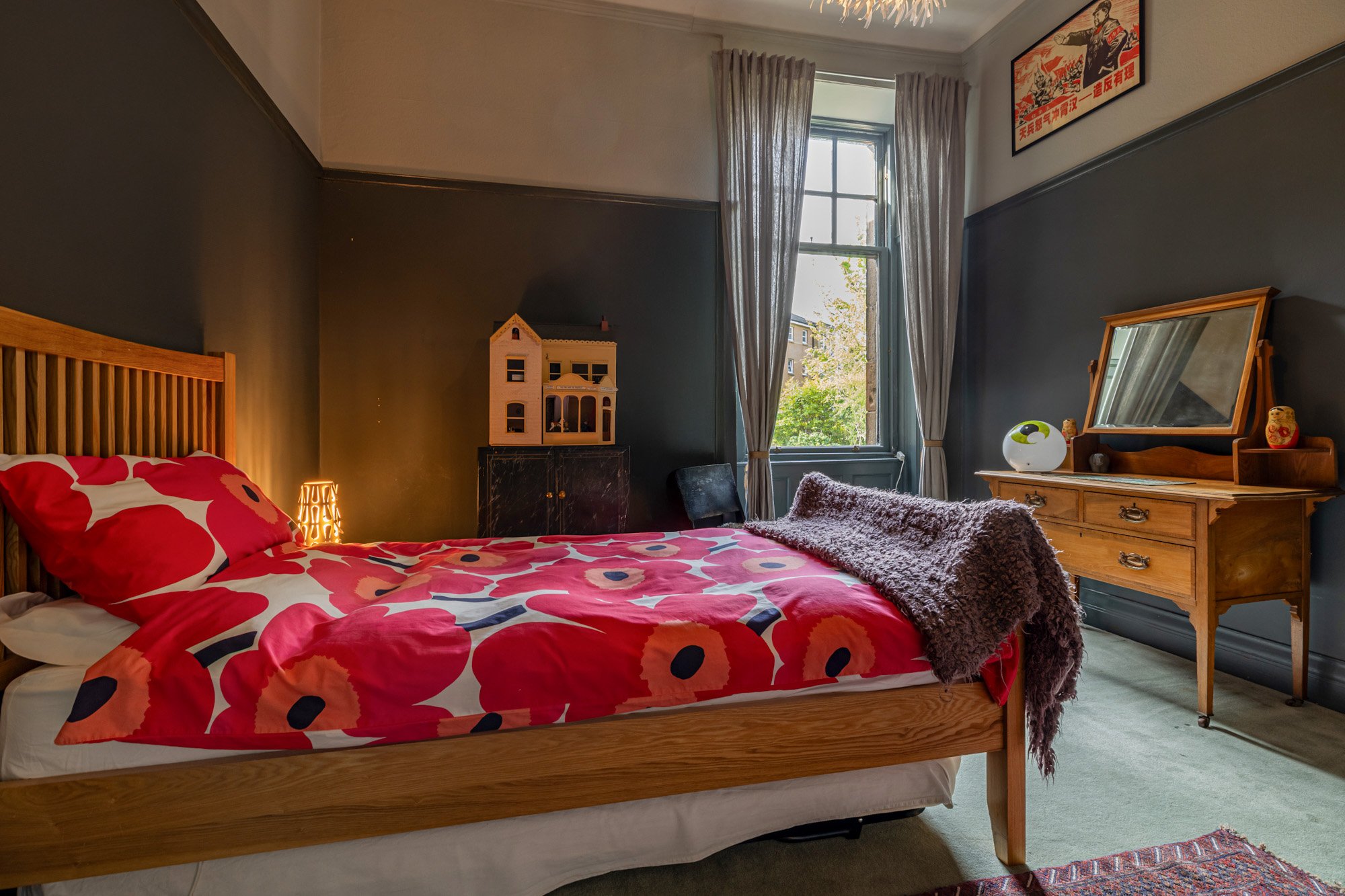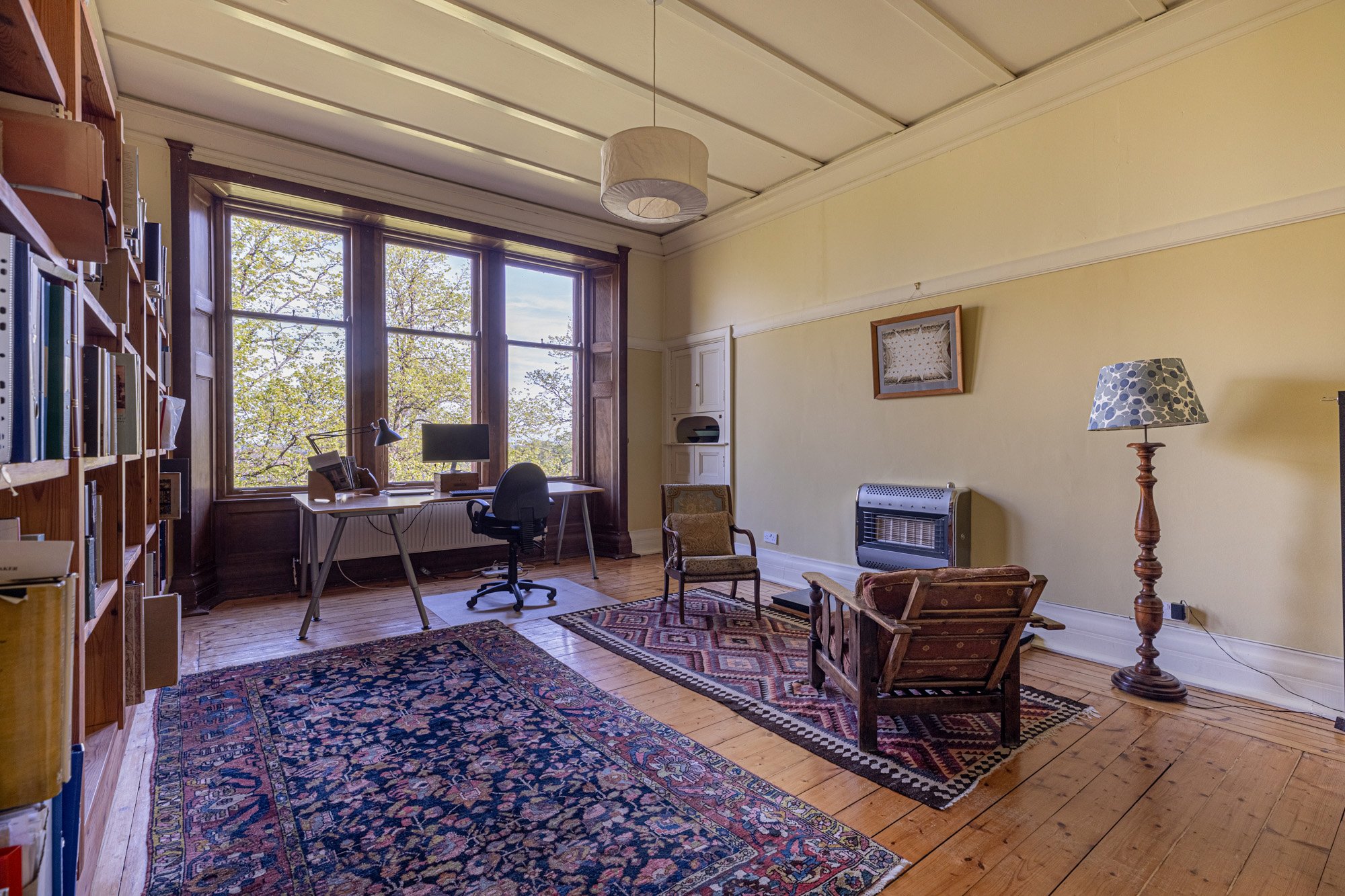 The property benefits from timber framed single glazing with draught-proofing, gas central heating, and a range of period features including original and new floorboards, stained glass, cornicing and restored woodwork. The tenement is accessed via a secure door entry system into a well-kept communal close and stairwell. Externally there is a communal rear garden. Residents also enjoy access to a private woodland walk to the front known as the Pleasure Gardens.