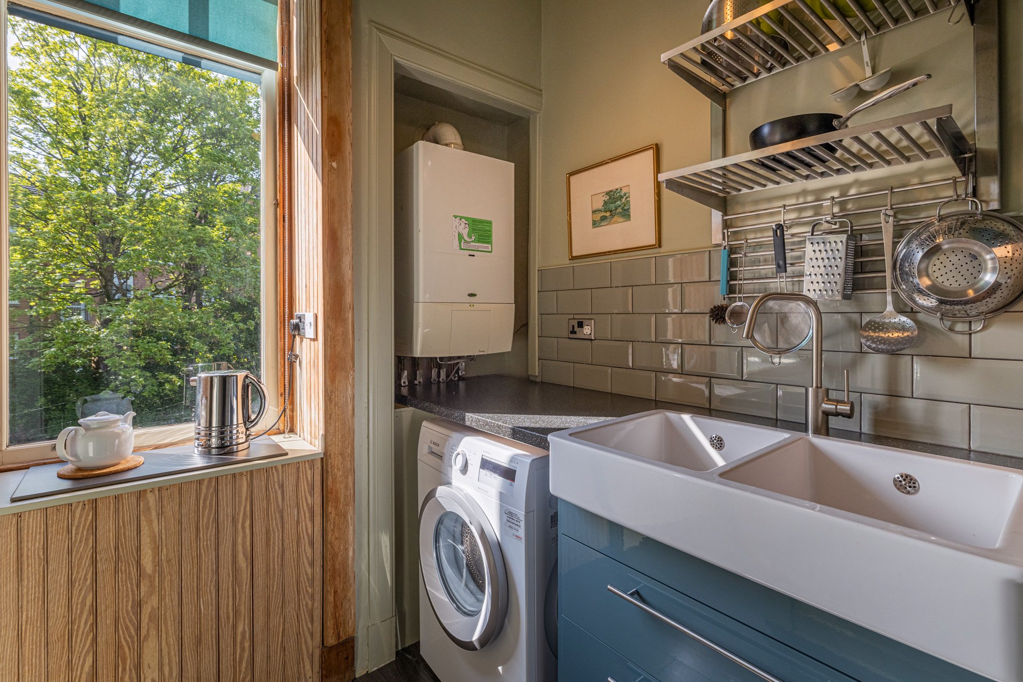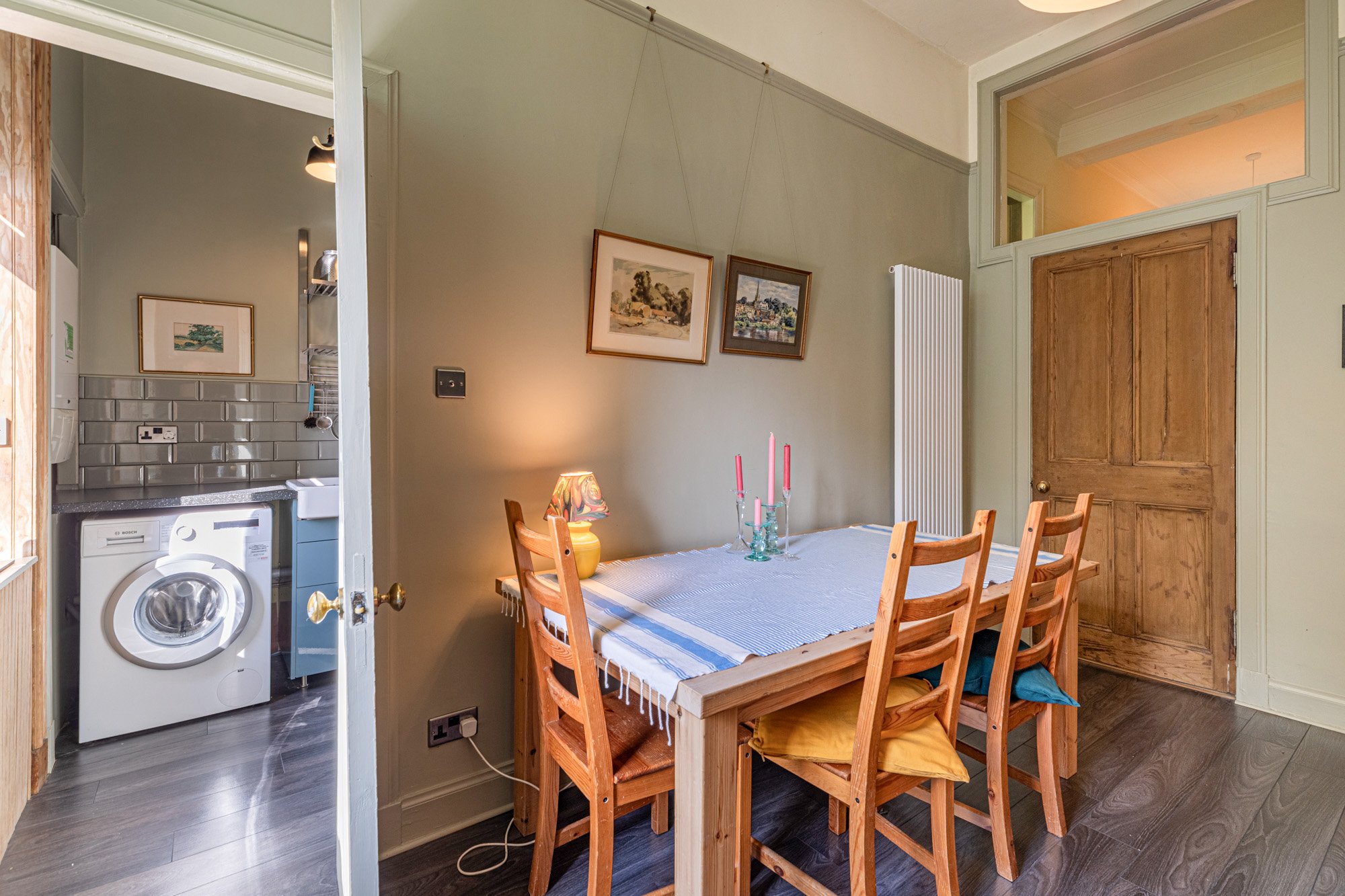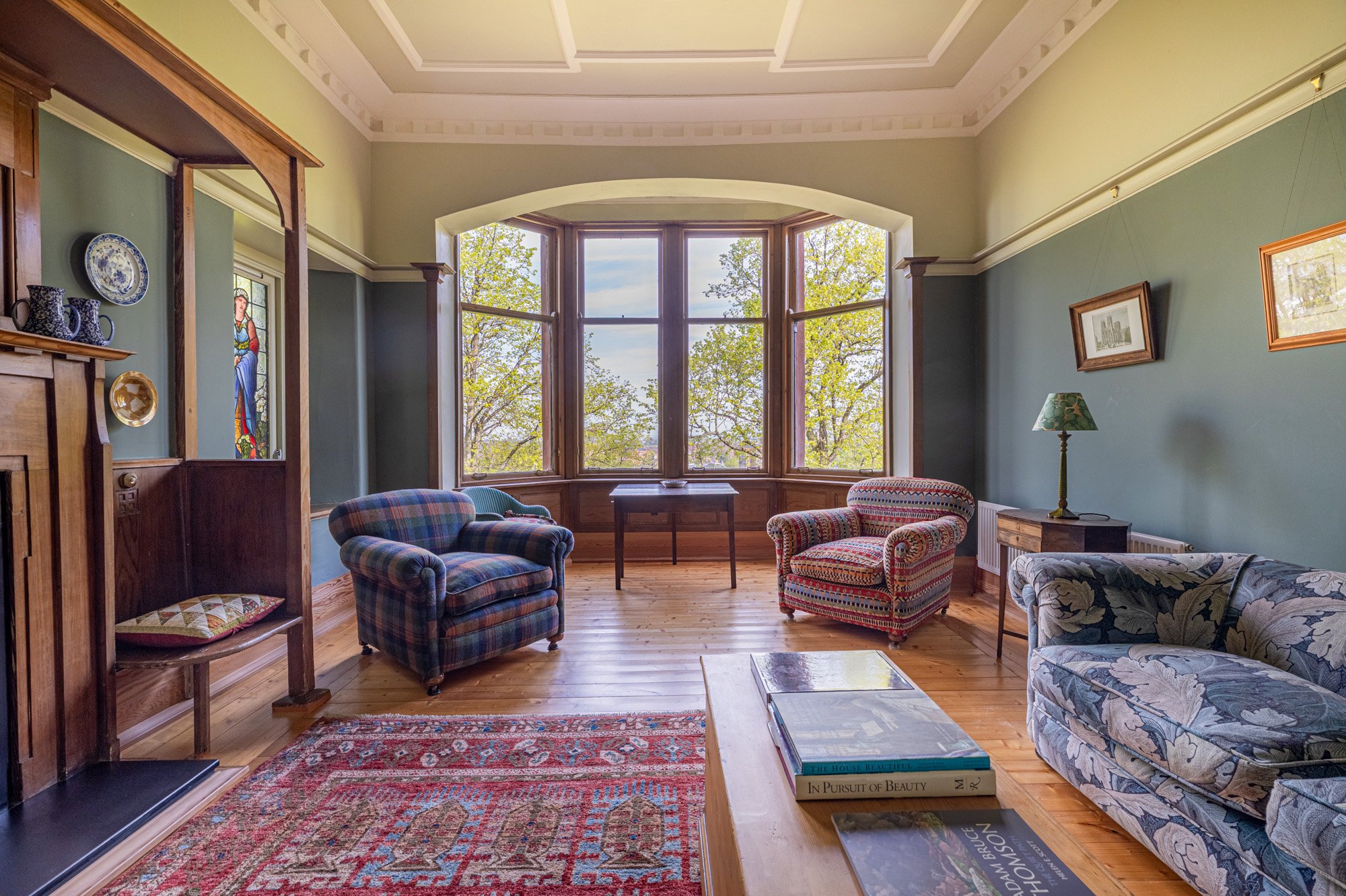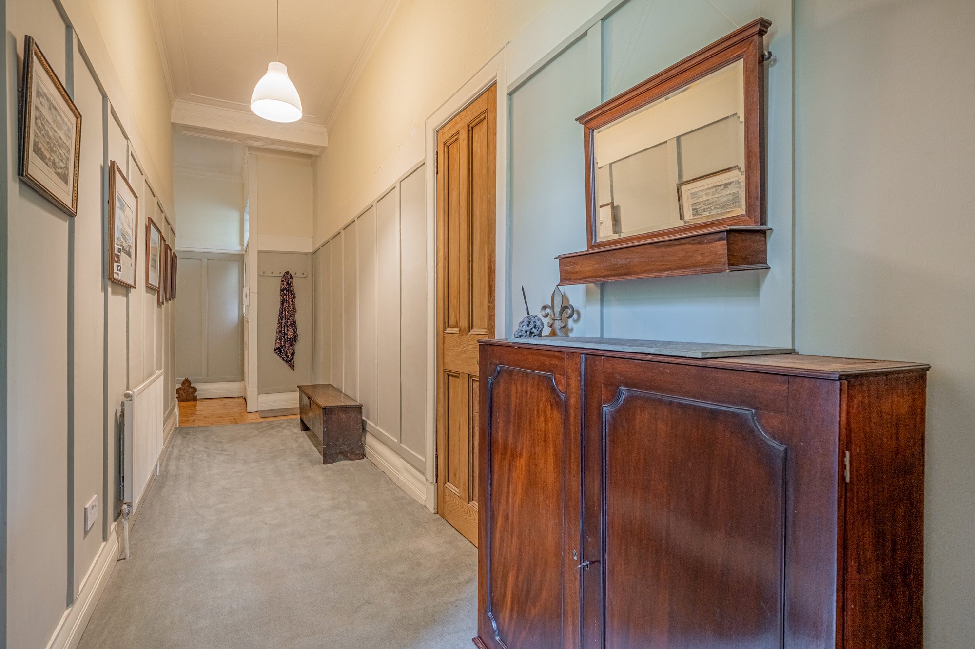 The property benefits from timber framed single glazing with draught-proofing, gas central heating, and a range of period features including original and new floorboards, stained glass, cornicing and restored woodwork. The tenement is accessed via a secure door entry system into a well-kept communal close and stairwell. Externally there is a communal rear garden. Residents also enjoy access to a private woodland walk to the front known as the Pleasure Gardens.