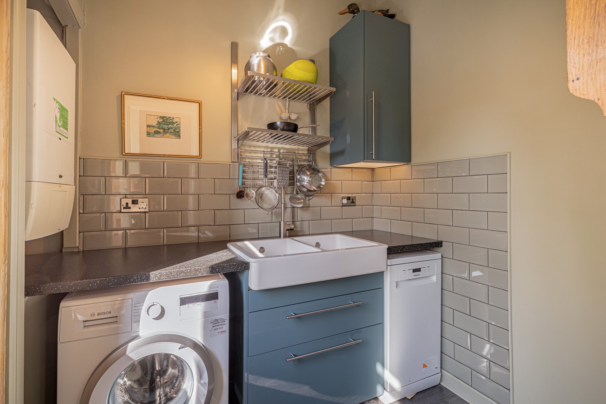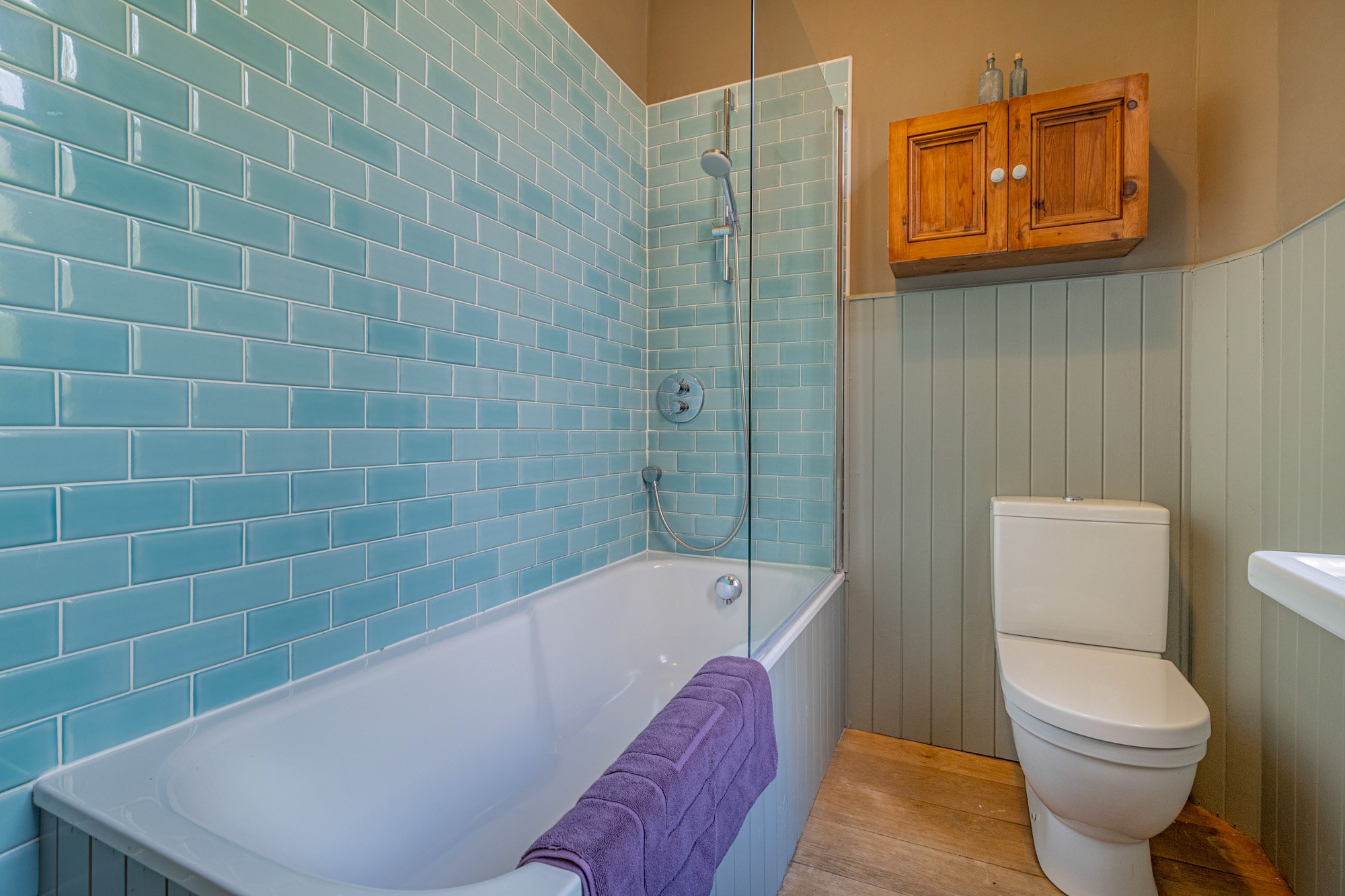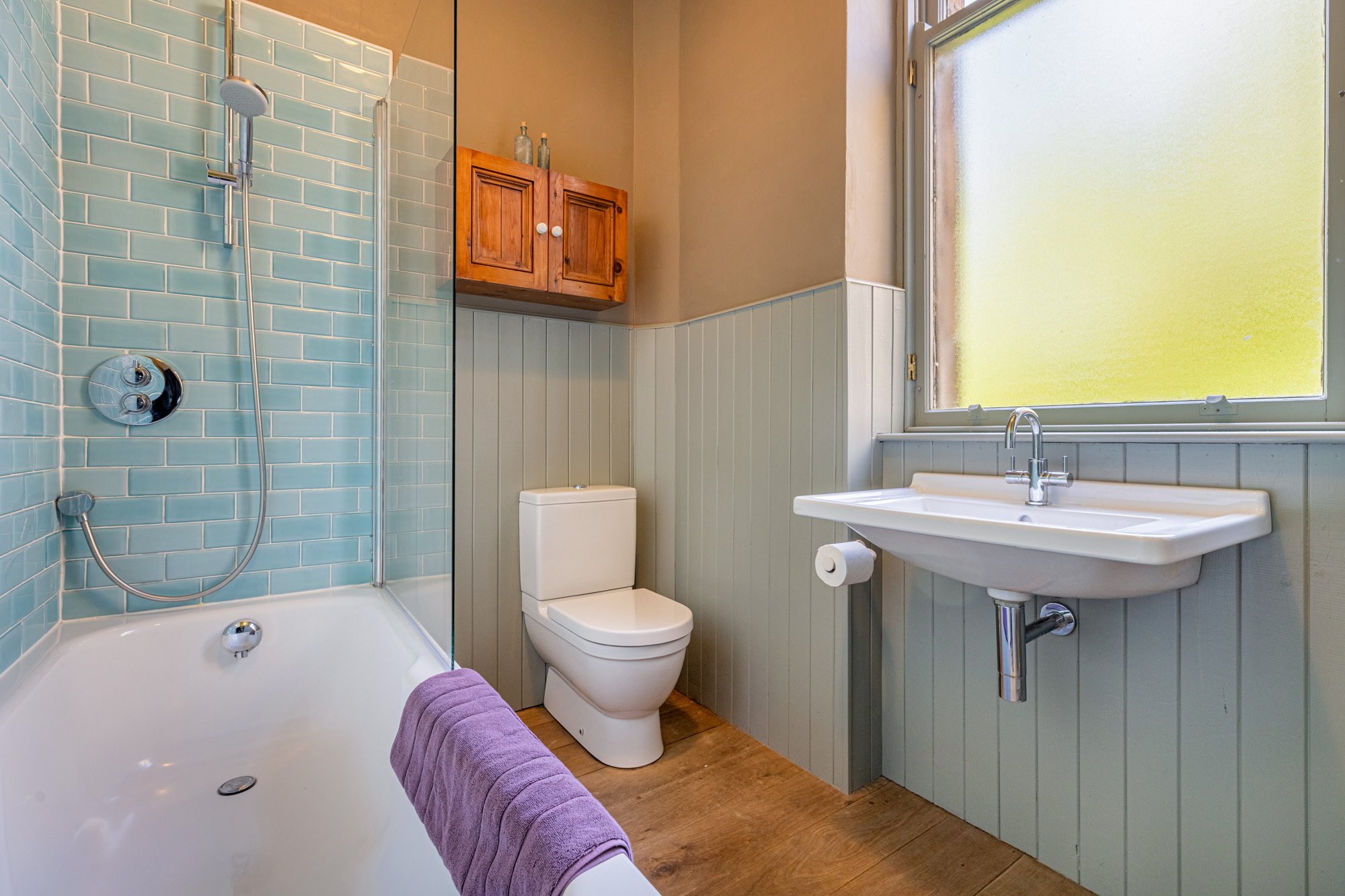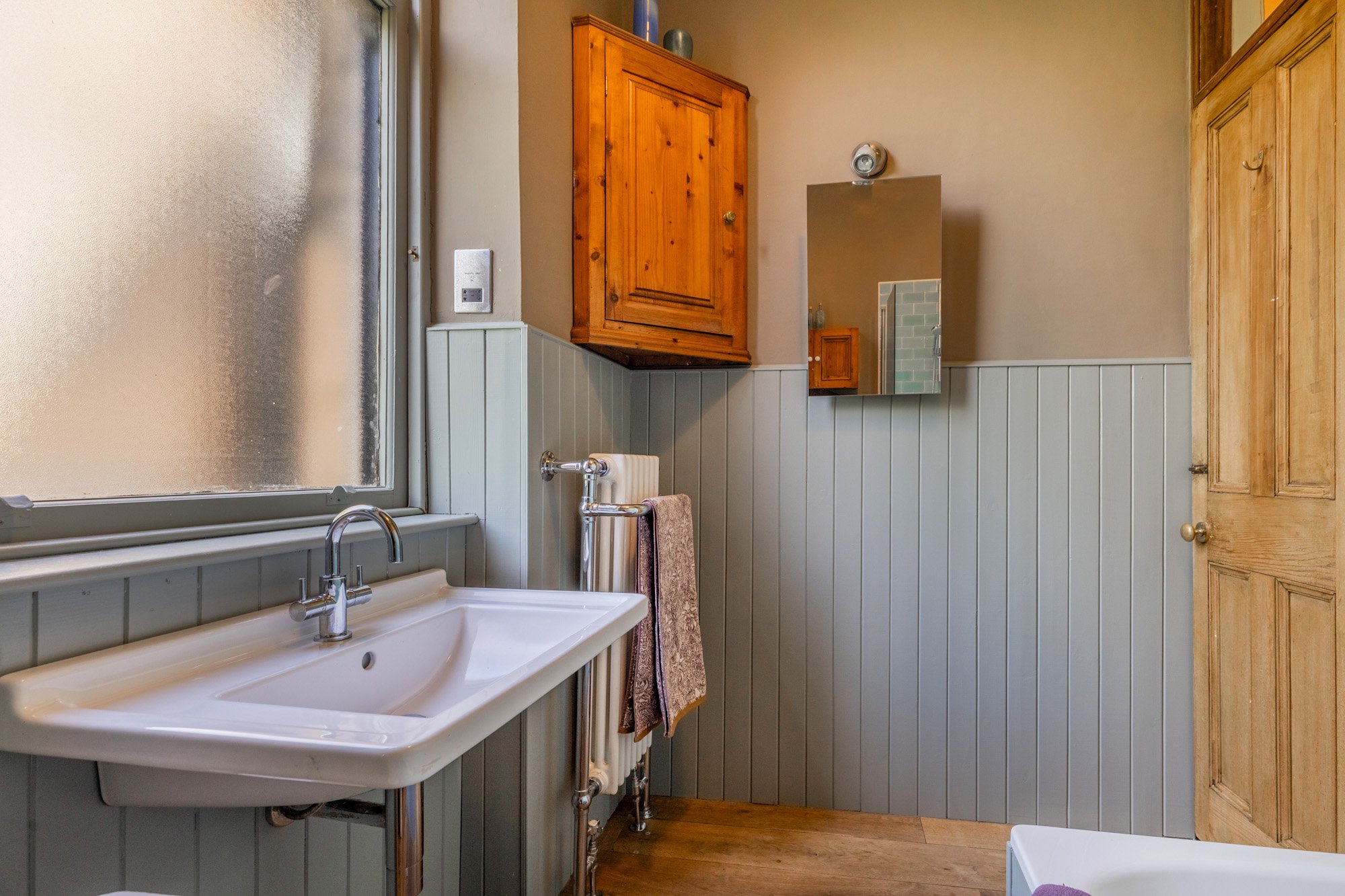 There is a bay windowed lounge with dual aspect enjoying stunning views out towards Ben Lomond, new wooden floor matching the original, moulded ceiling, incredible feature fireplace with gas stove, and useful cupboard off to the rear. The master bedroom, currently used as a home office/sitting room, enjoys the same views as the lounge, a feature fireplace and original floorboards. The three other bedrooms are also generous in size. All these rooms open off a large central hallway with two storage cupboards. Overlooking the rear garden is a bespoke dining-sized kitchen with a range of base and wall mounted units, ample space for a dining table with chairs, and a utility room with double sink and tiled splashback. The accommodation is completed by a gorgeously tiled bathroom with white three-piece suite, over bath shower and decorative panelling.