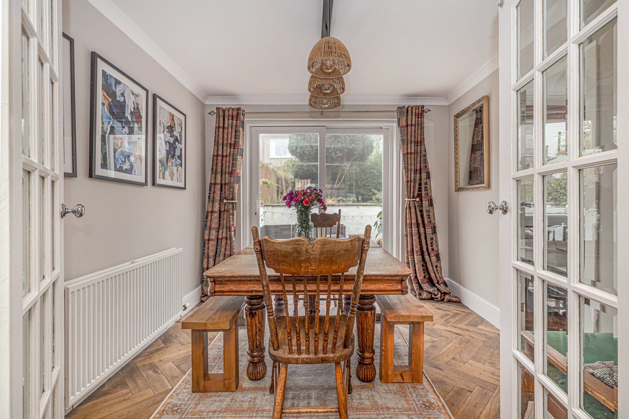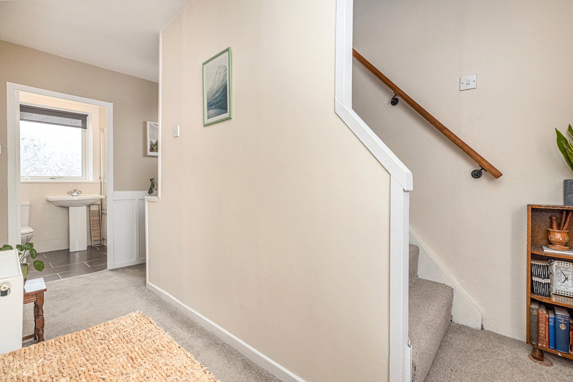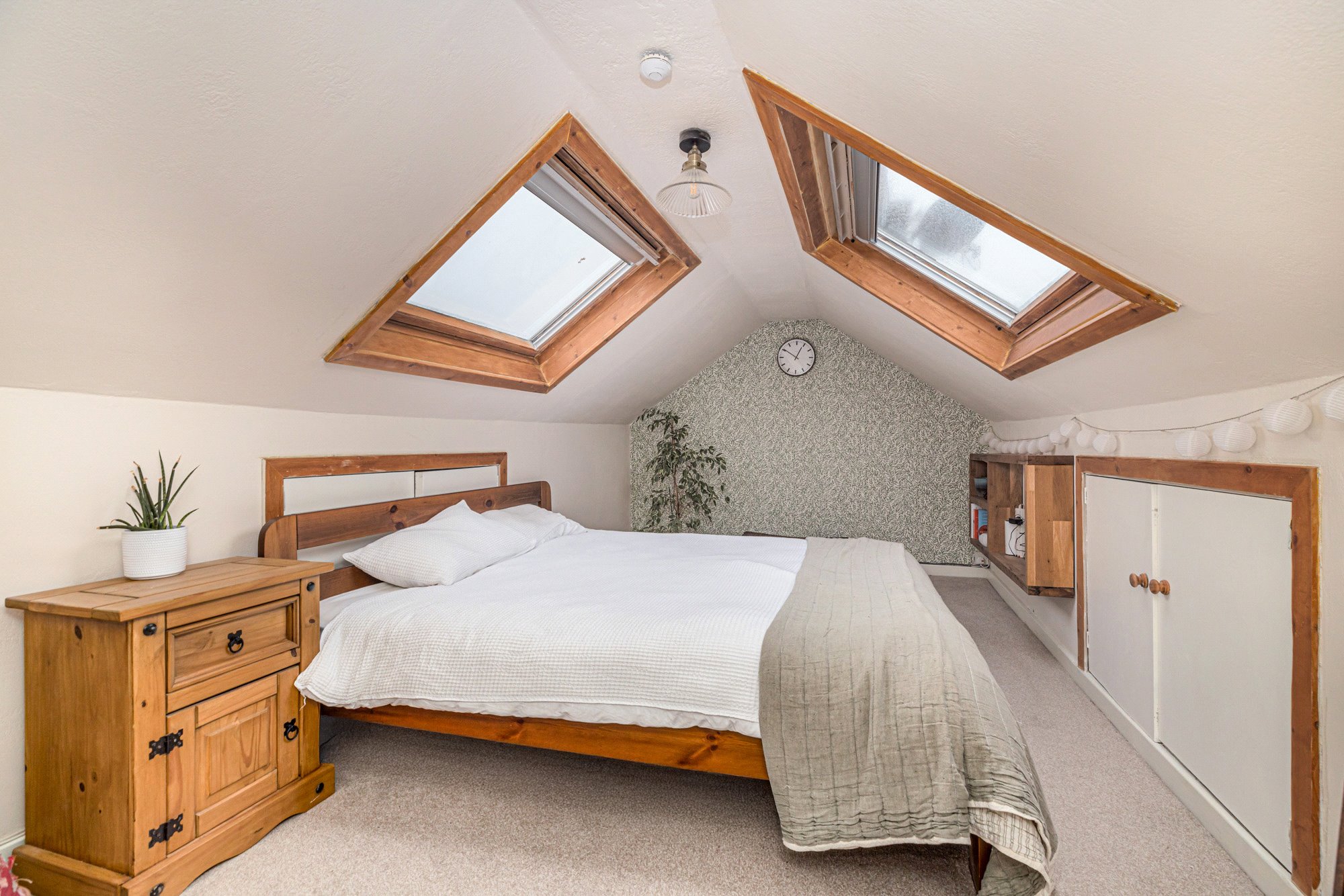 On the upper level, there are two generous sized bedrooms and a family bath room benefiting from a white modern suite complete with shower over bath. Off the upper landing is a fixed staircase which provides access to the floored and lined attic (which is currently be used as a generous bedroom, complete with velux windows).