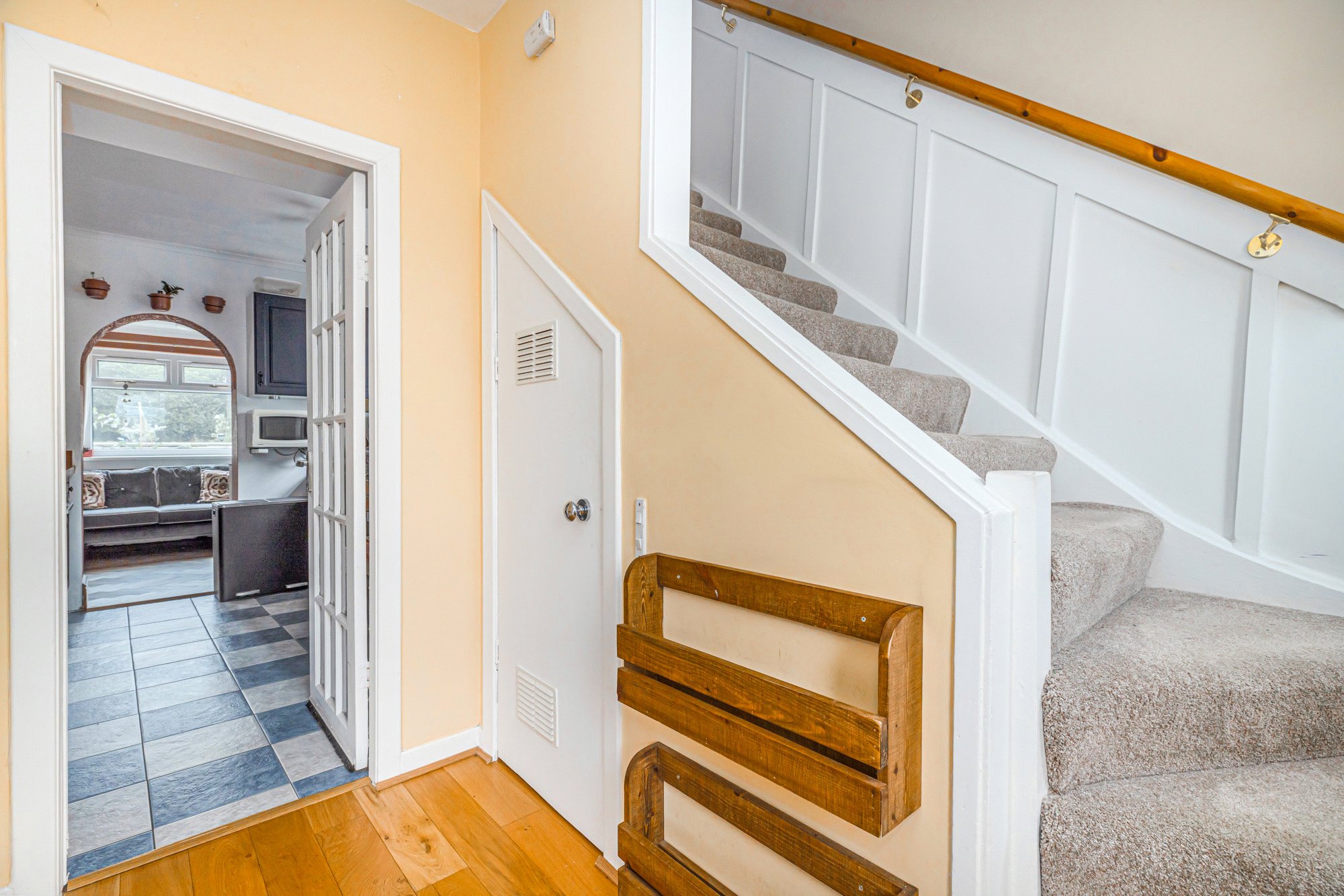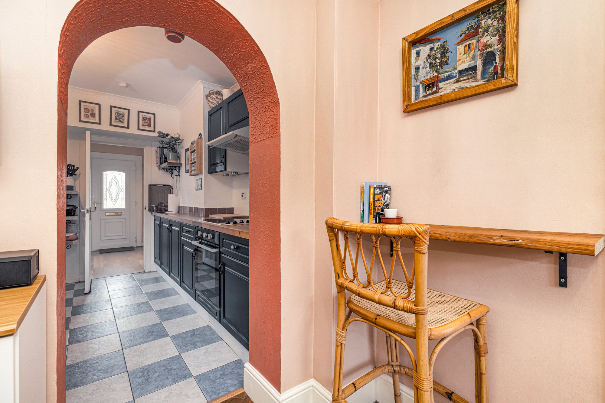 The accommodation comprises a bright, welcoming reception hallway, featuring under-stair storage and access to all ground floor rooms. The main formal sitting room offers a large bay window and a feature fireplace and wonderful views across Simshill and beyond. The sitting room flows on to separate dining room which in turn, flows on to decking area via patio doors. Off Dining Room is a TV/Snug (complete with small breakfast bar), flowing directly on to Kitchen and further benefits from convenient access to side garden. The modern kitchen is well-equipped, with a wide array of base and wall units.