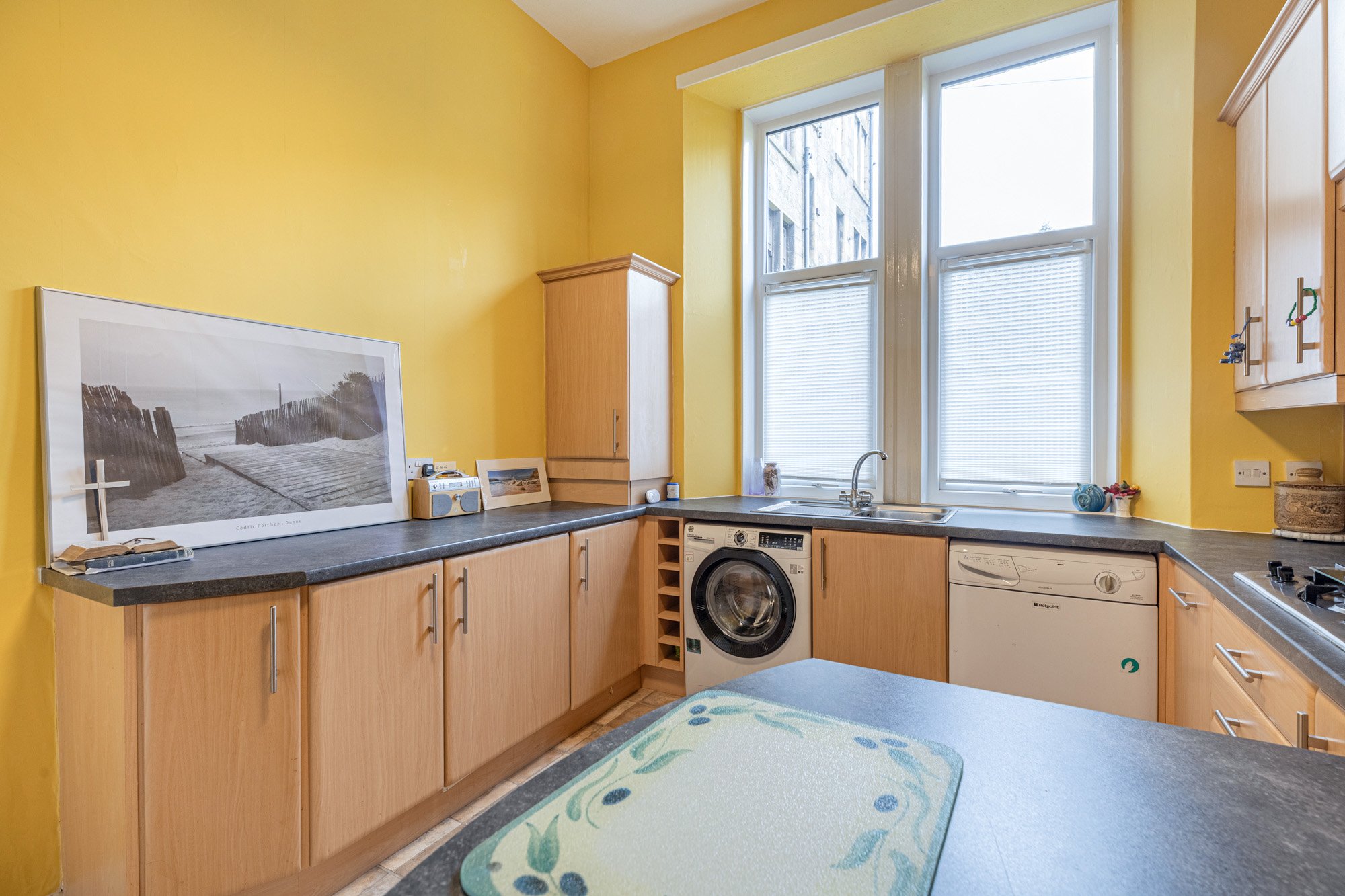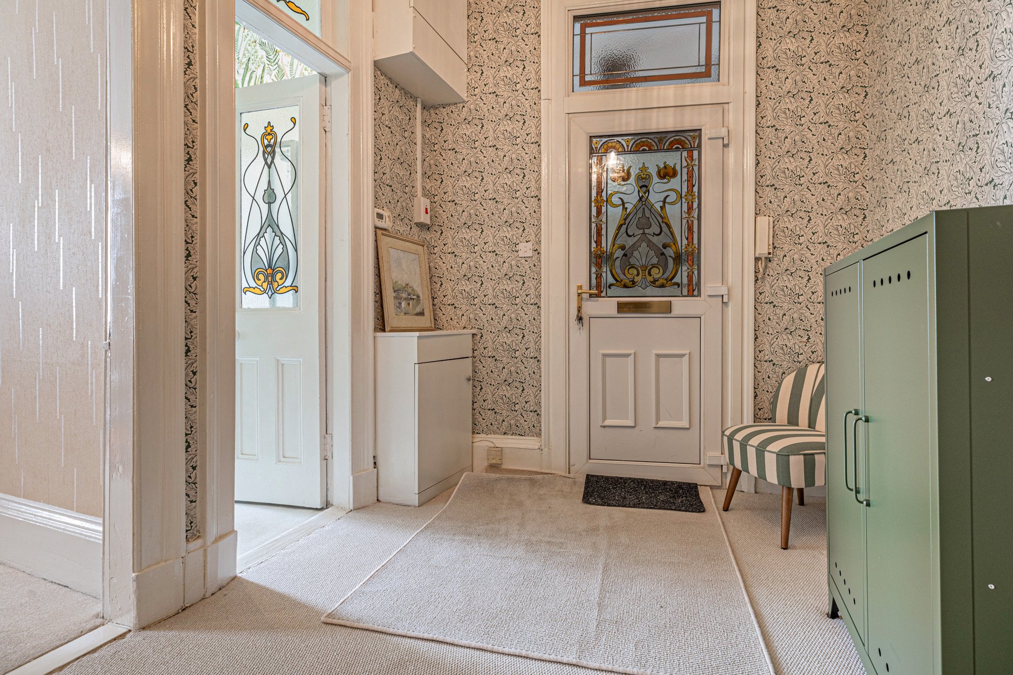 This red sandstone tenement building is accessed via secure door entry system into a well-kept communal close, where the flat is accessed on the right.