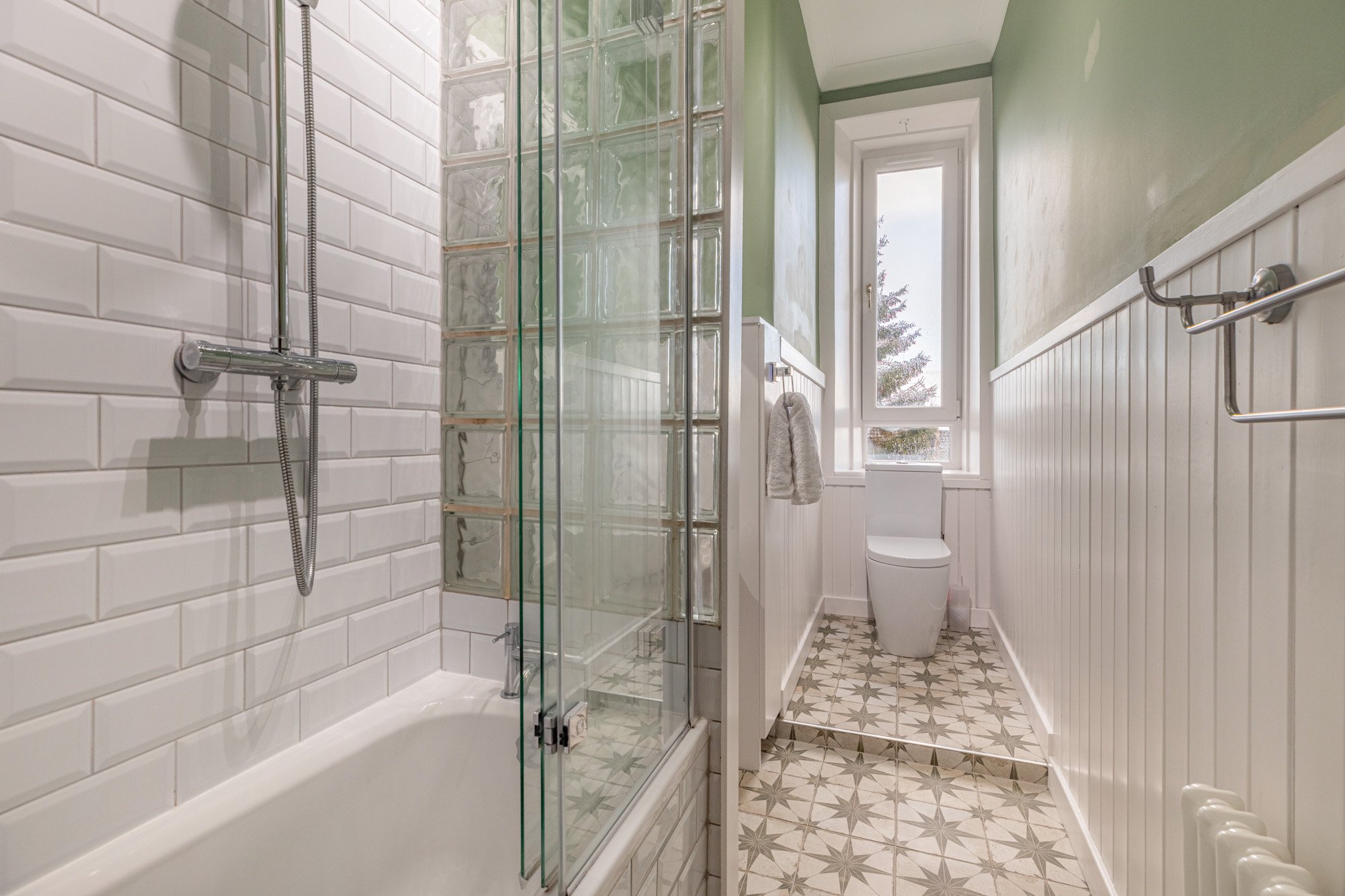 The property also benefits from double glazing, gas central heating, high quality floor coverings, spectacular views and a range of period features including cornice plaster and stained glass detailing. Externally there is a communal rear garden.