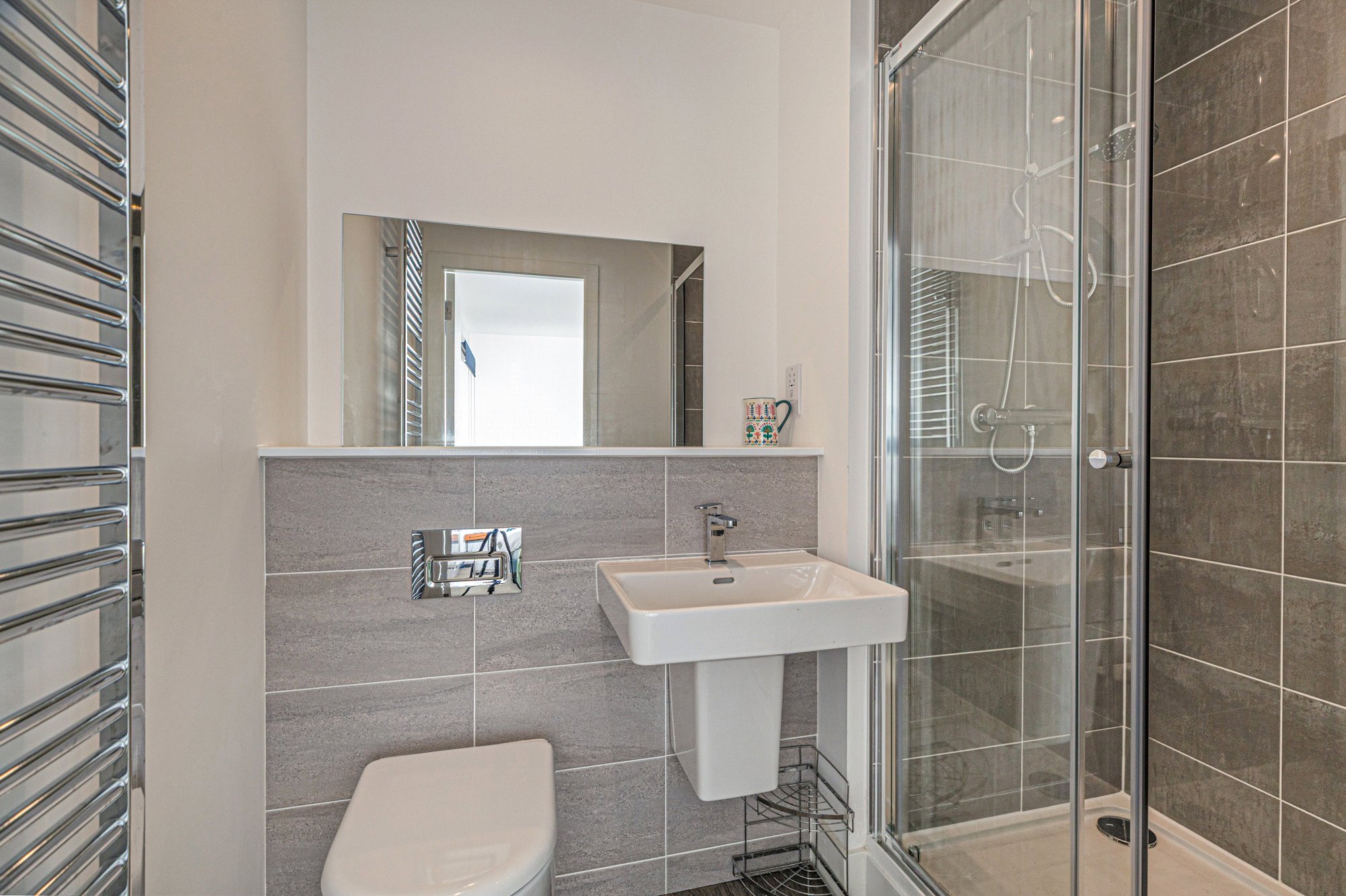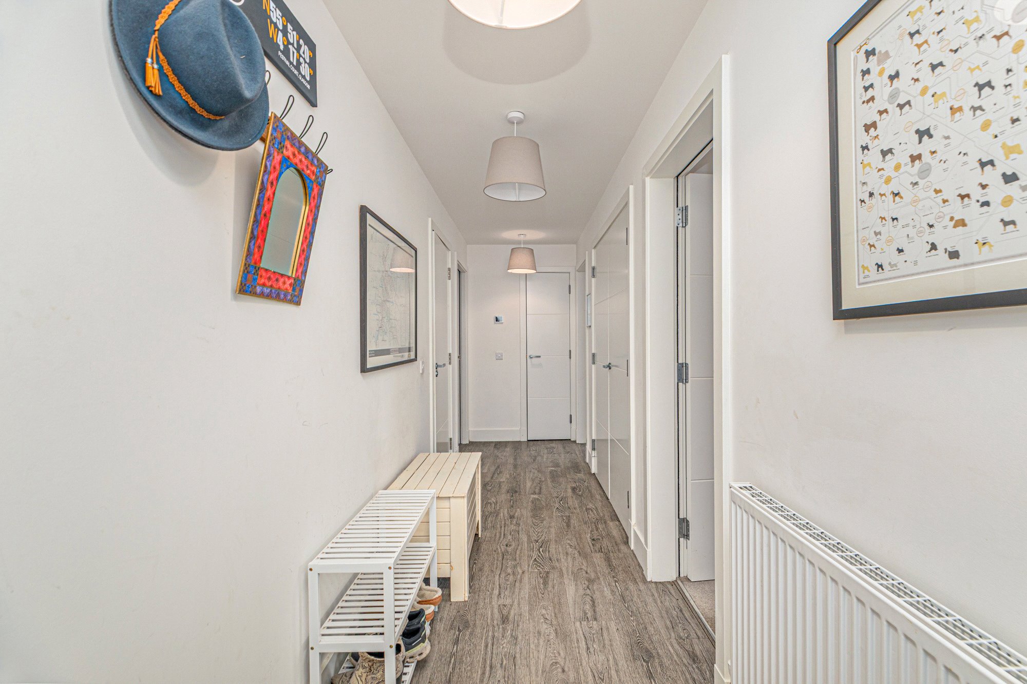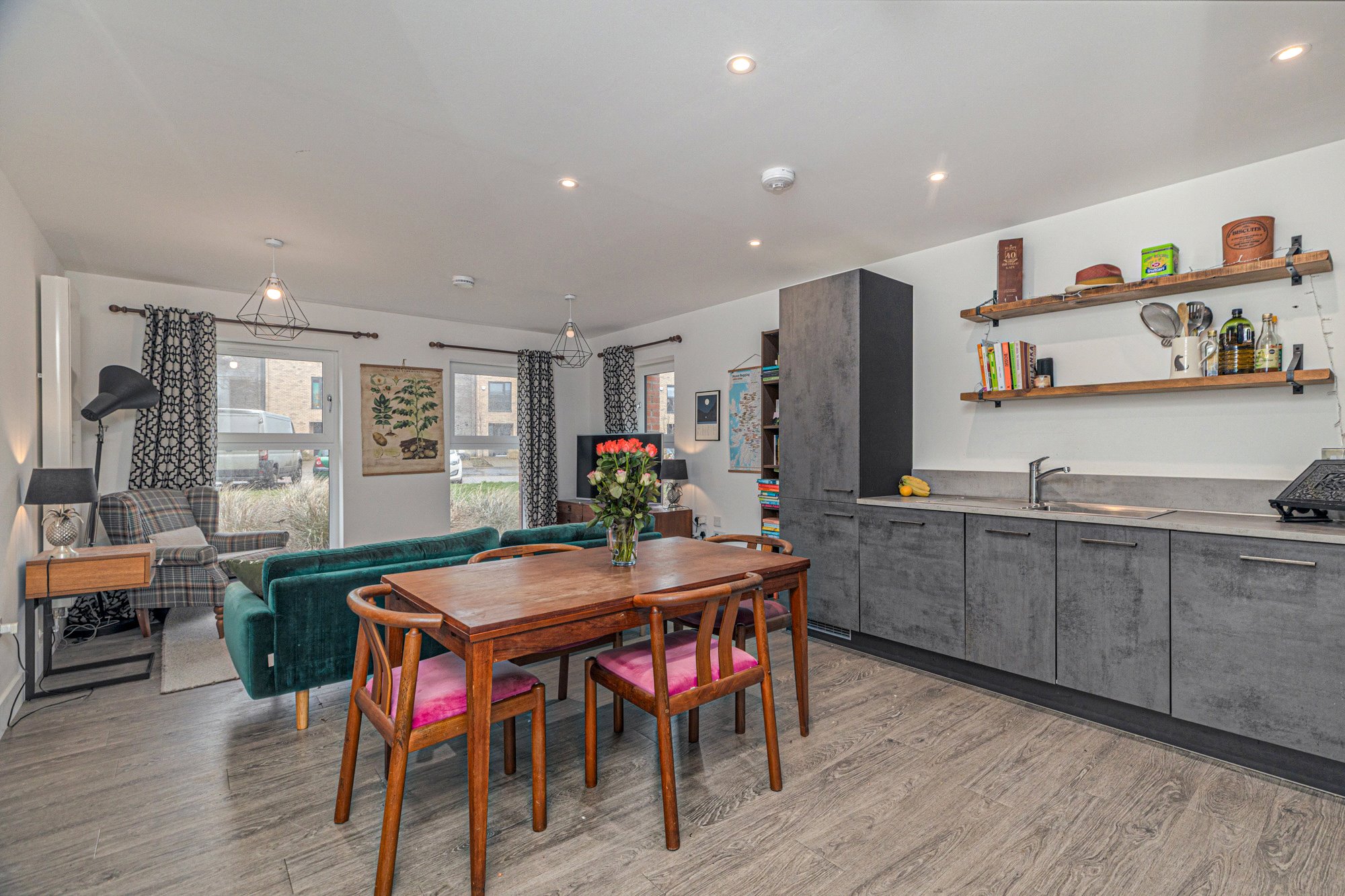 The property is in immaculate order and extends to; L-shaped entrance hallway with storage, impressive lounge open to kitchen and full length windows. The kitchen is fully fitted with upgraded inbuilt appliances. There are two well proportioned double bedrooms, both offering inbuilt wardrobes, and the main bedroom has access to a well appointed en-suite shower room. To complete the accommodation, the main bathroom has white sanitaryware, contemporary tiling and shower over bath.