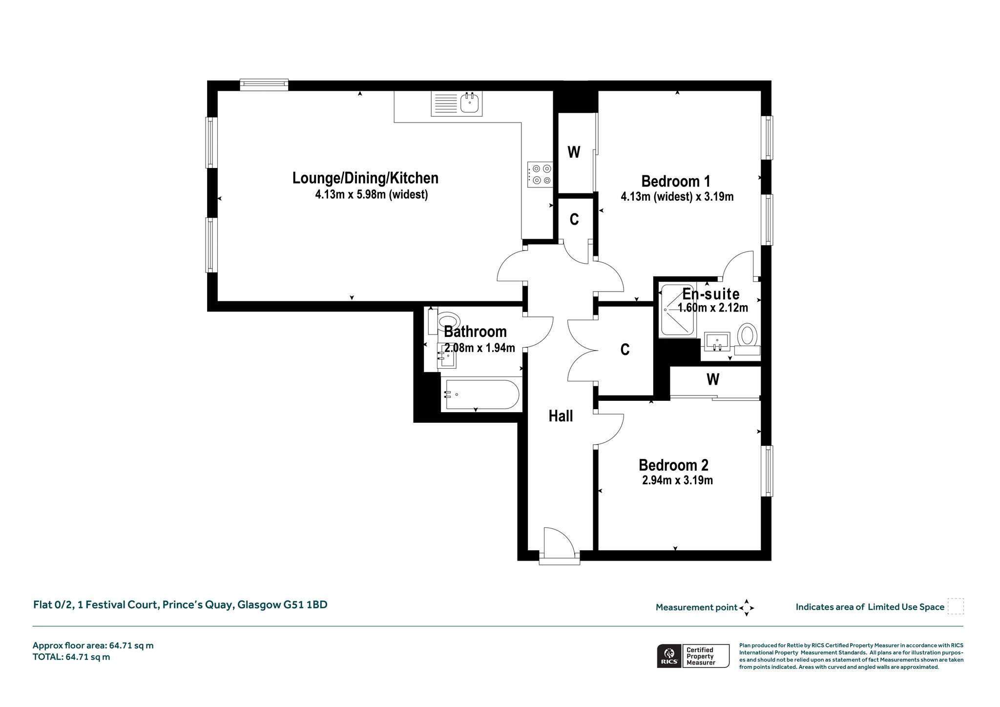 The Princes Quay development is positioned on the South side of the river Clyde close to the “Squinty Bridge”, the Finnieston Crane, the SSE Hydro and the Armadillo. The property is within walking distance of nearby Finnieston where thriving coffee houses, bars, restaurants and independent shops can be found. The Village Gym and the Nuffield Gym are both nearby providing swimming pools and restaurants whilst Festival Park and Kelvingrove Park are within one mile of the front door. The local Exhibition Centre train station and Cessnock Underground are nearby and the South West cycle route.
