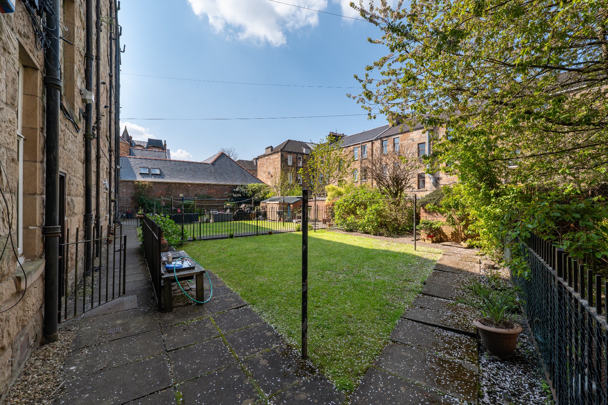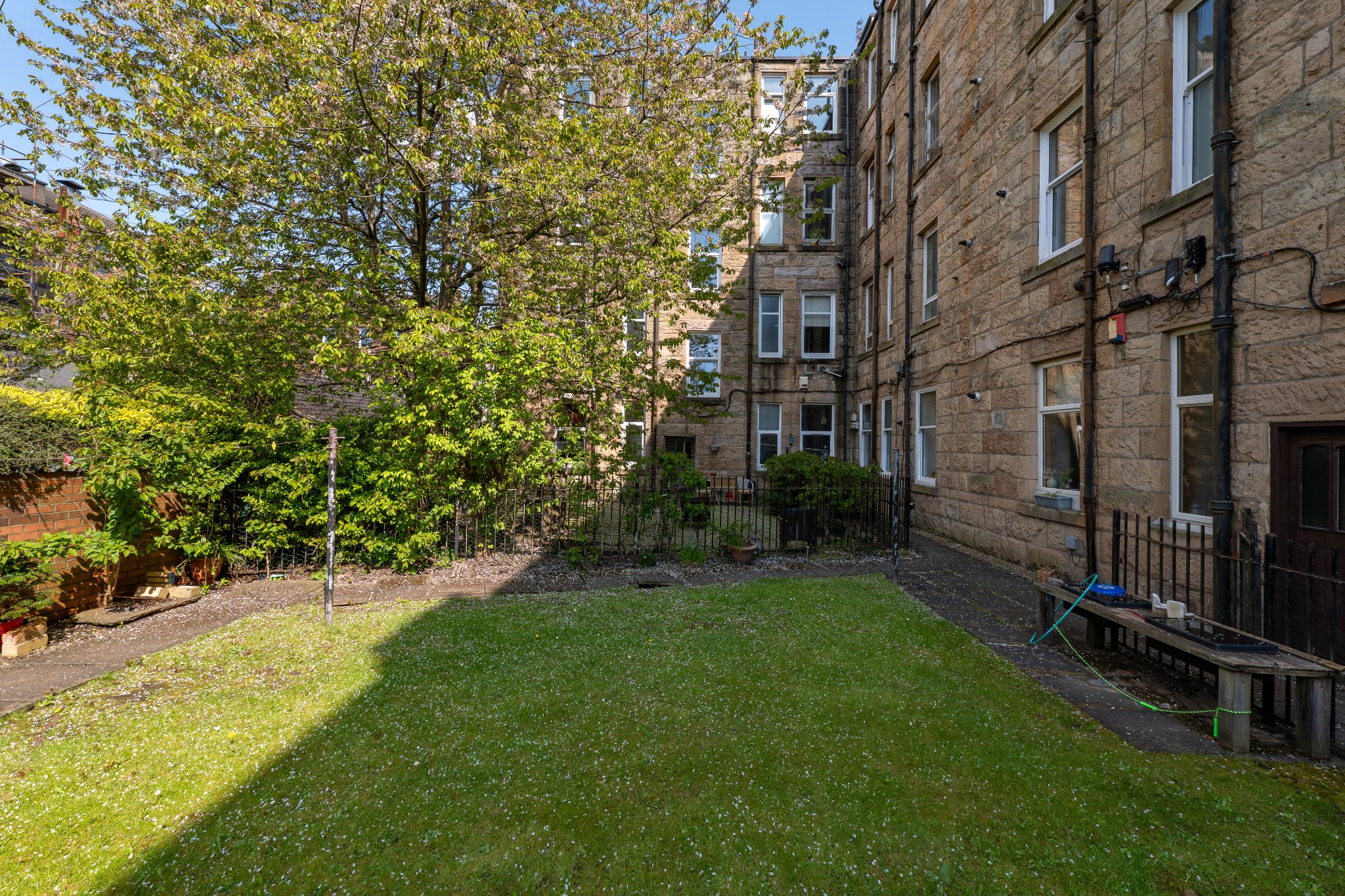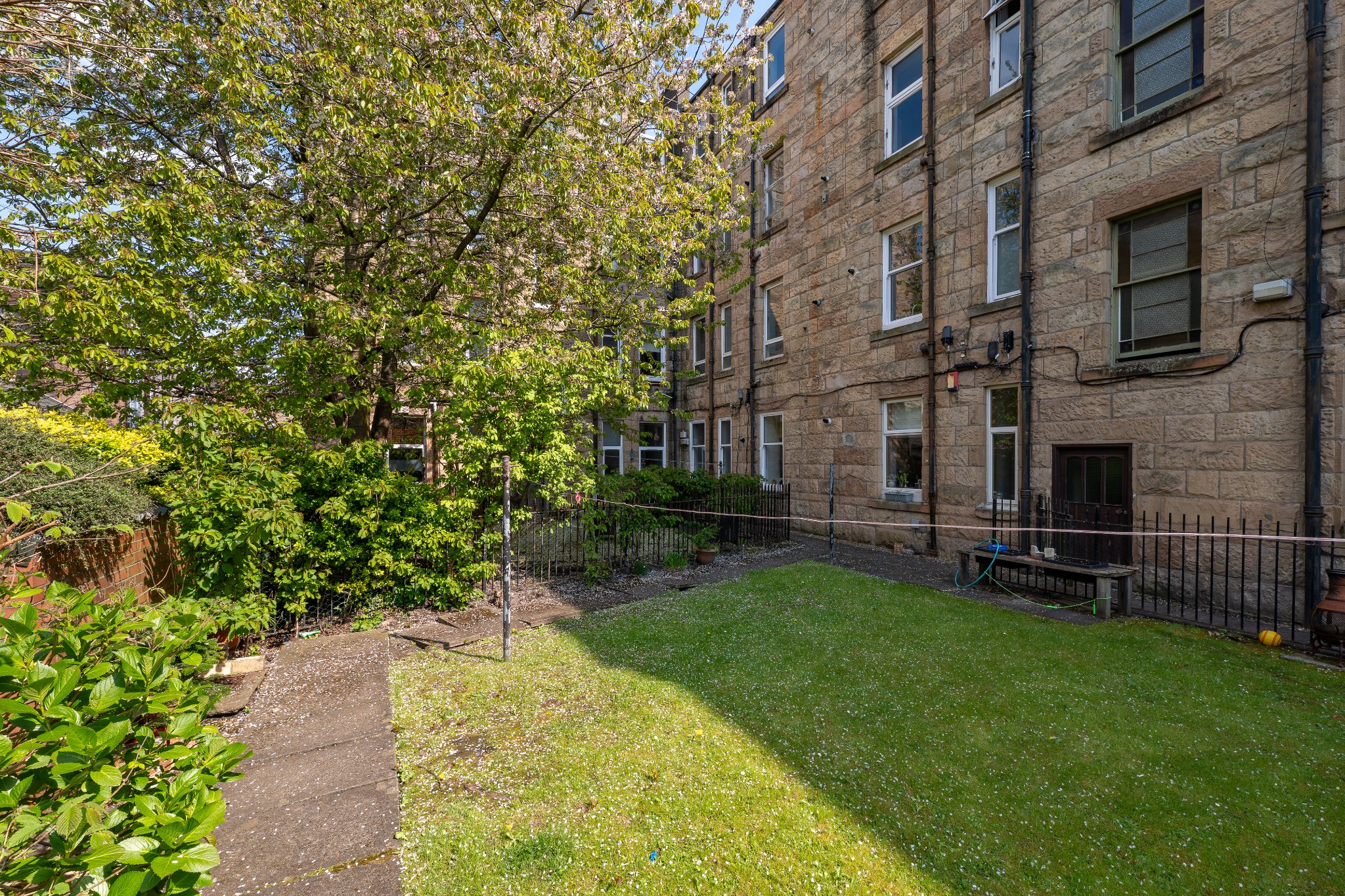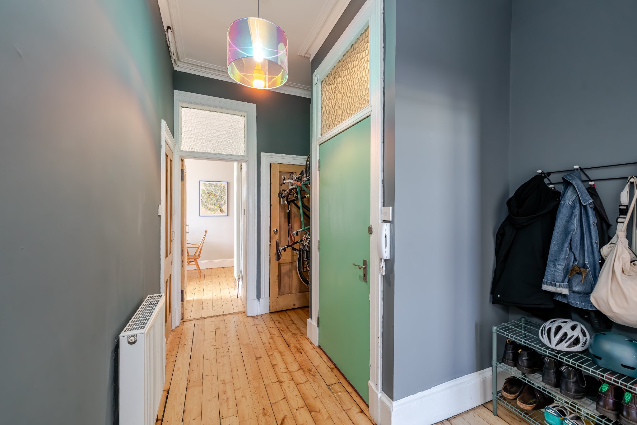 This red sandstone tenement building is accessed via secure door entry system into a well-kept communal close and stairwell.