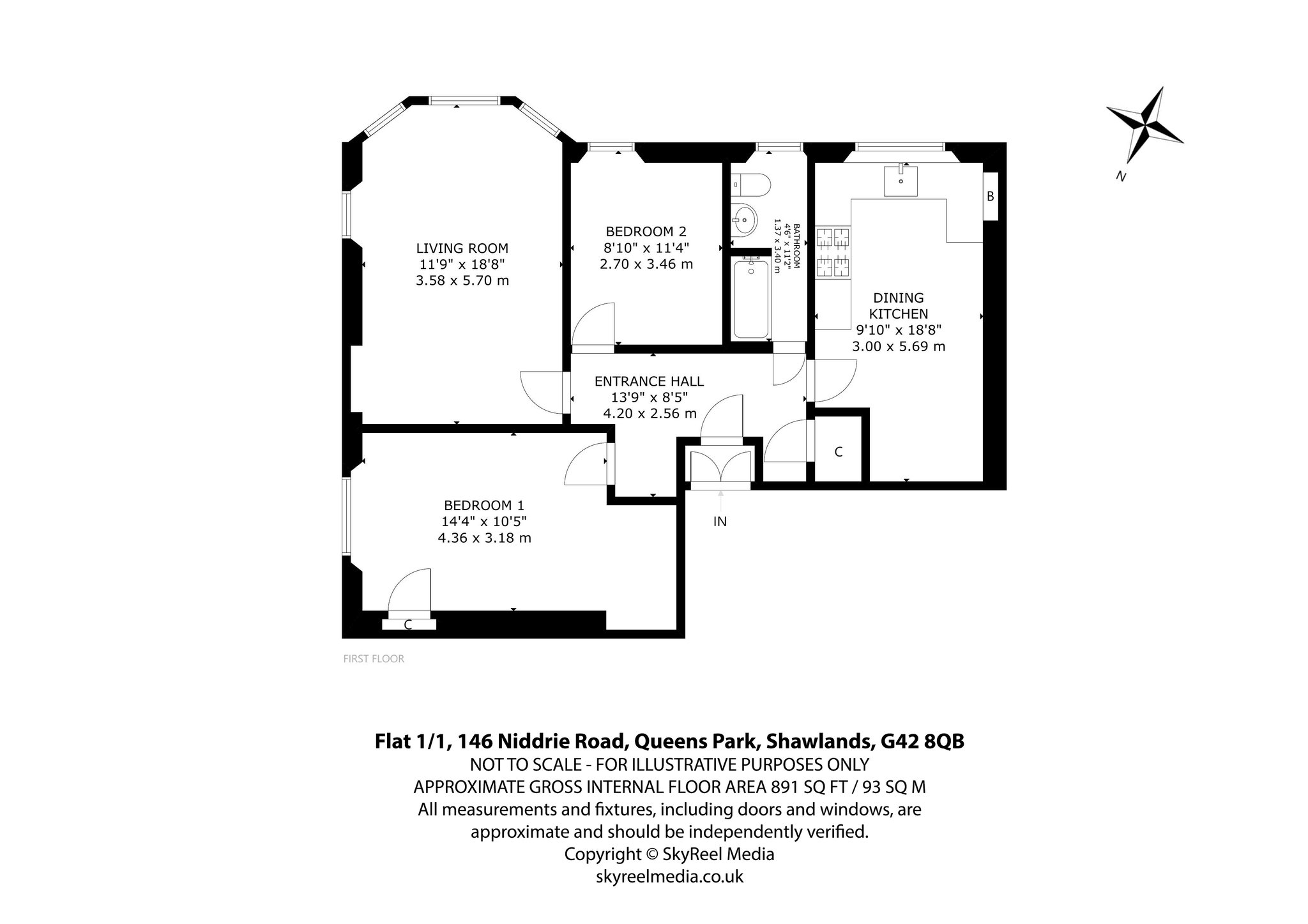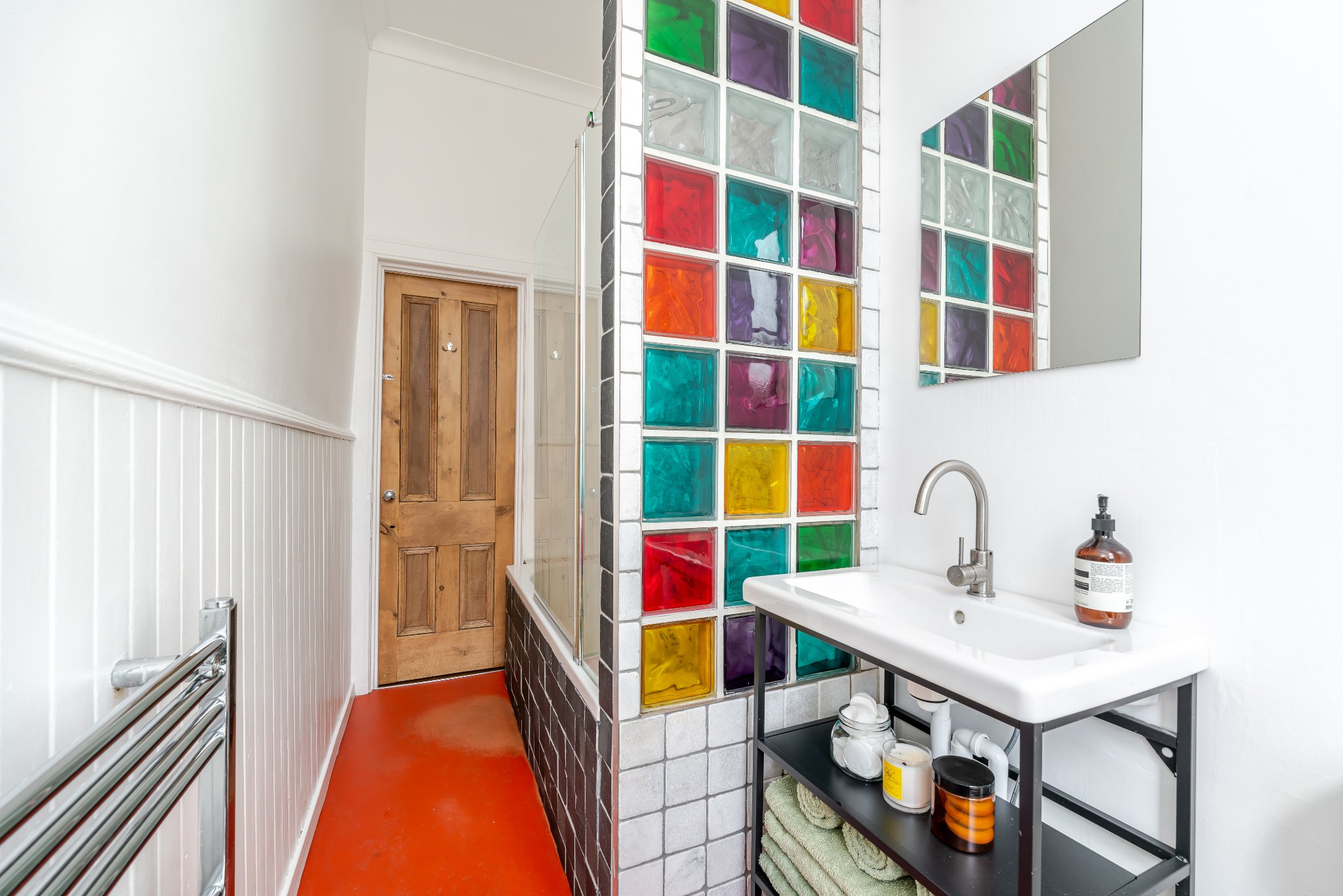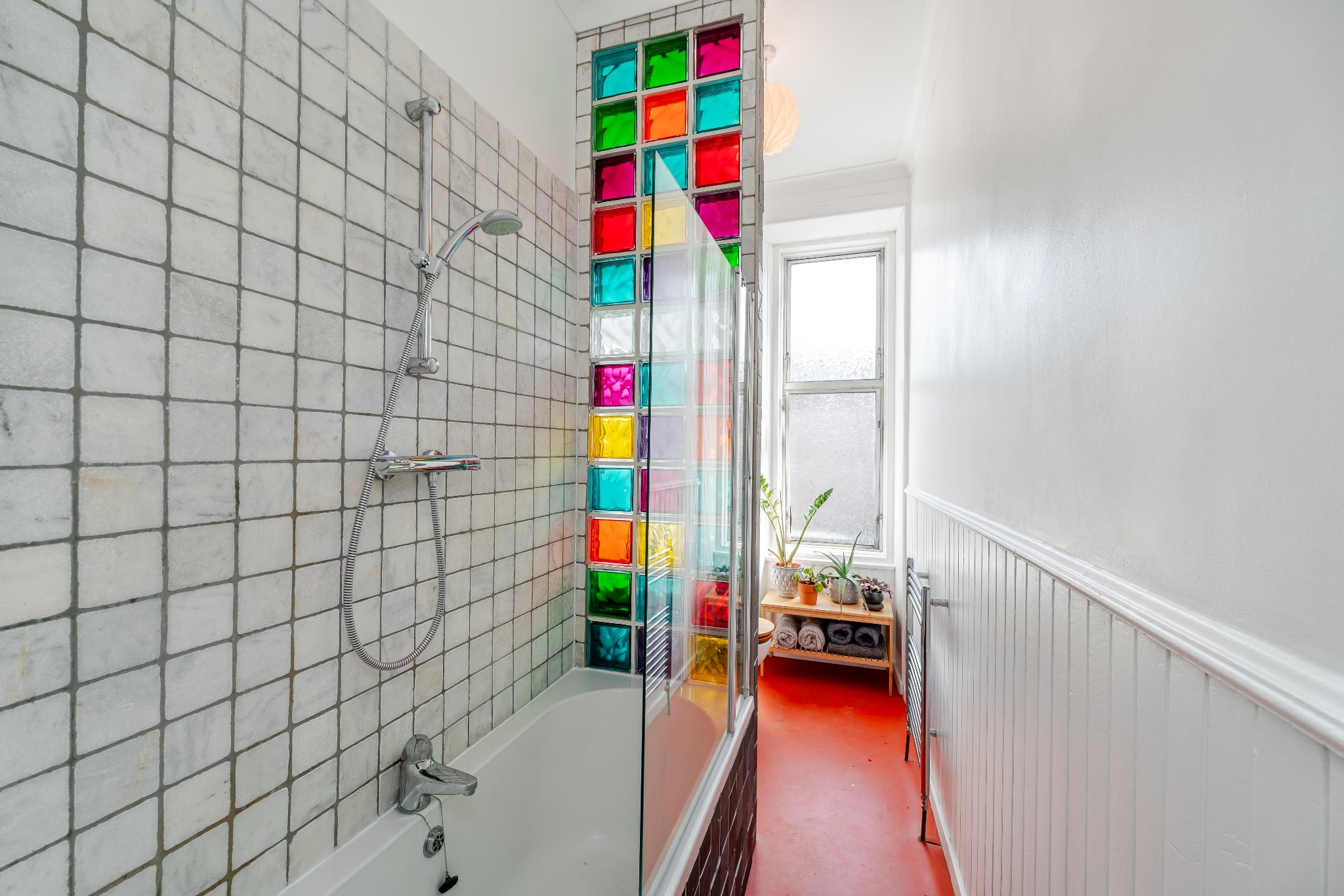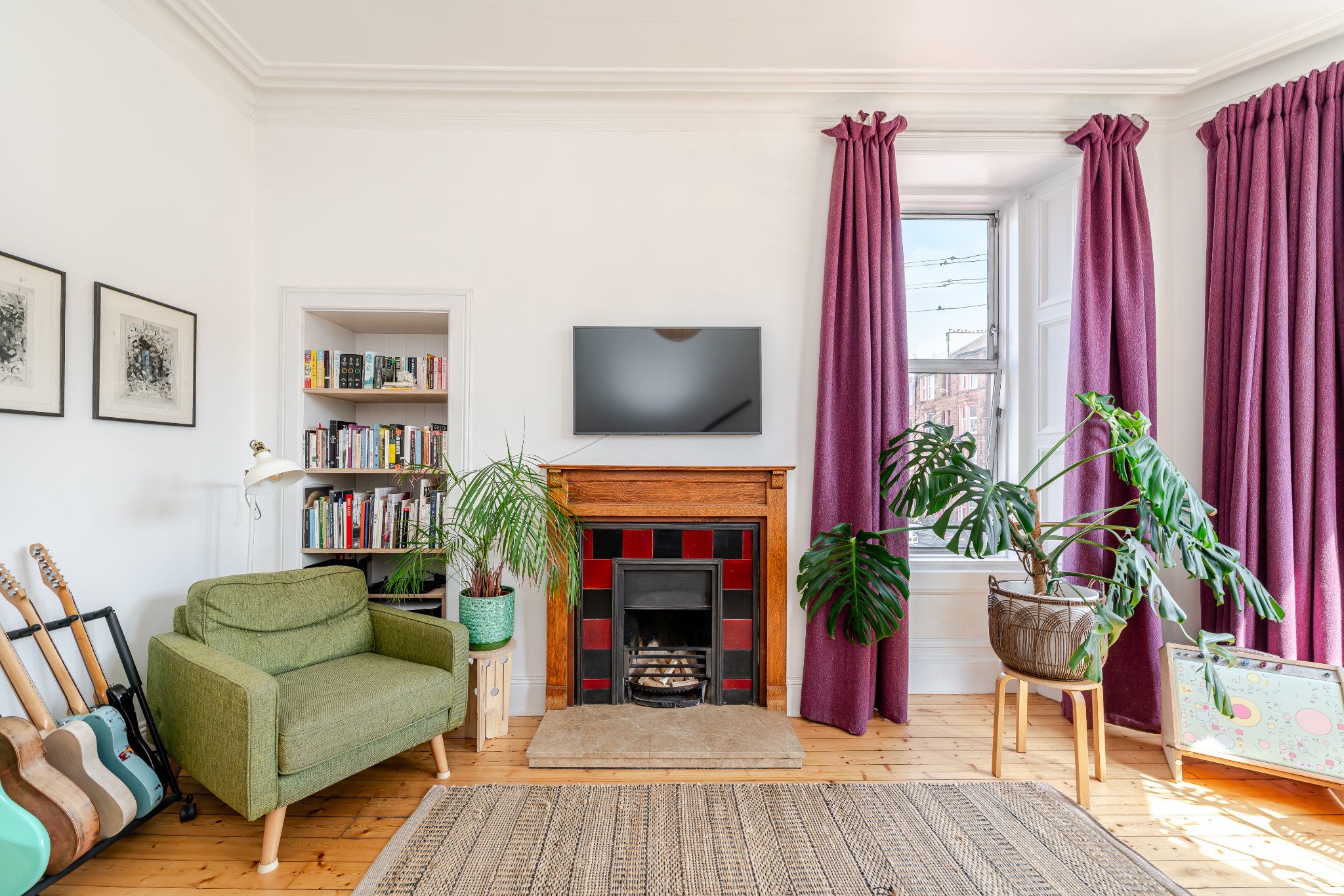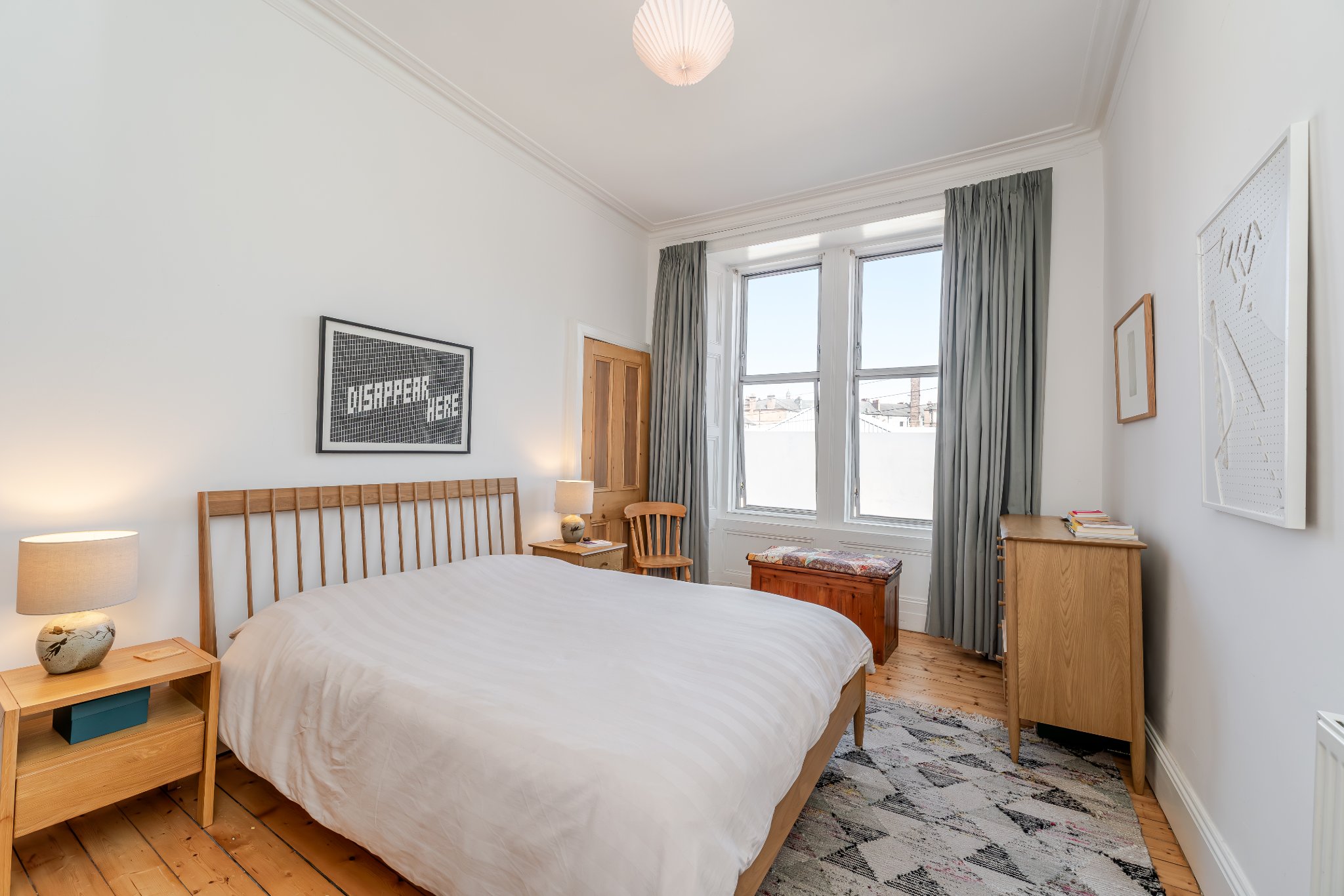 The accommodation of the flat itself comprises welcoming reception hallway with large cupboard off, bay windowed lounge with fabulous dual aspect, feature fireplace, cornice plaster and refurbished floorboards, spacious dining sized kitchen with a range of base mounted units, tiled splashback, shelving and ample space for dining table and chairs, double sized bedroom one with cornice plaster and refurbished floorboards, second double sized bedroom with the same that is currently utilised as a home office space and a tiled bathroom with three piece suite and heated towel rail.