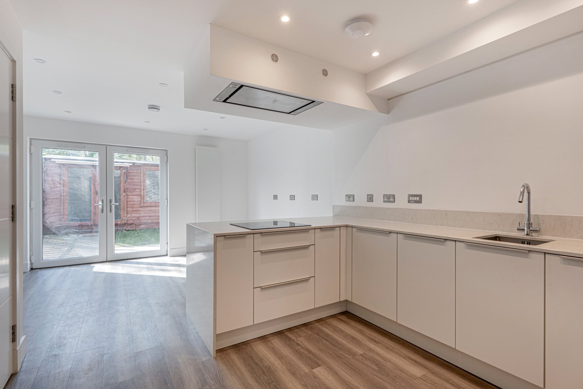 The accommodation opens from a spacious reception hallway with a convenient W.C. off, featuring Porcelanosa tiles and a large storage cupboard. The hall leads to a stunning open plan kitchen, living and dining space which is flooded with light from large patio doors that provide access to a private, south facing rear garden. The kitchen includes a sleek design, high quality Bosch integrated appliances, Silestone worktops and large, sociable breakfast bar area.