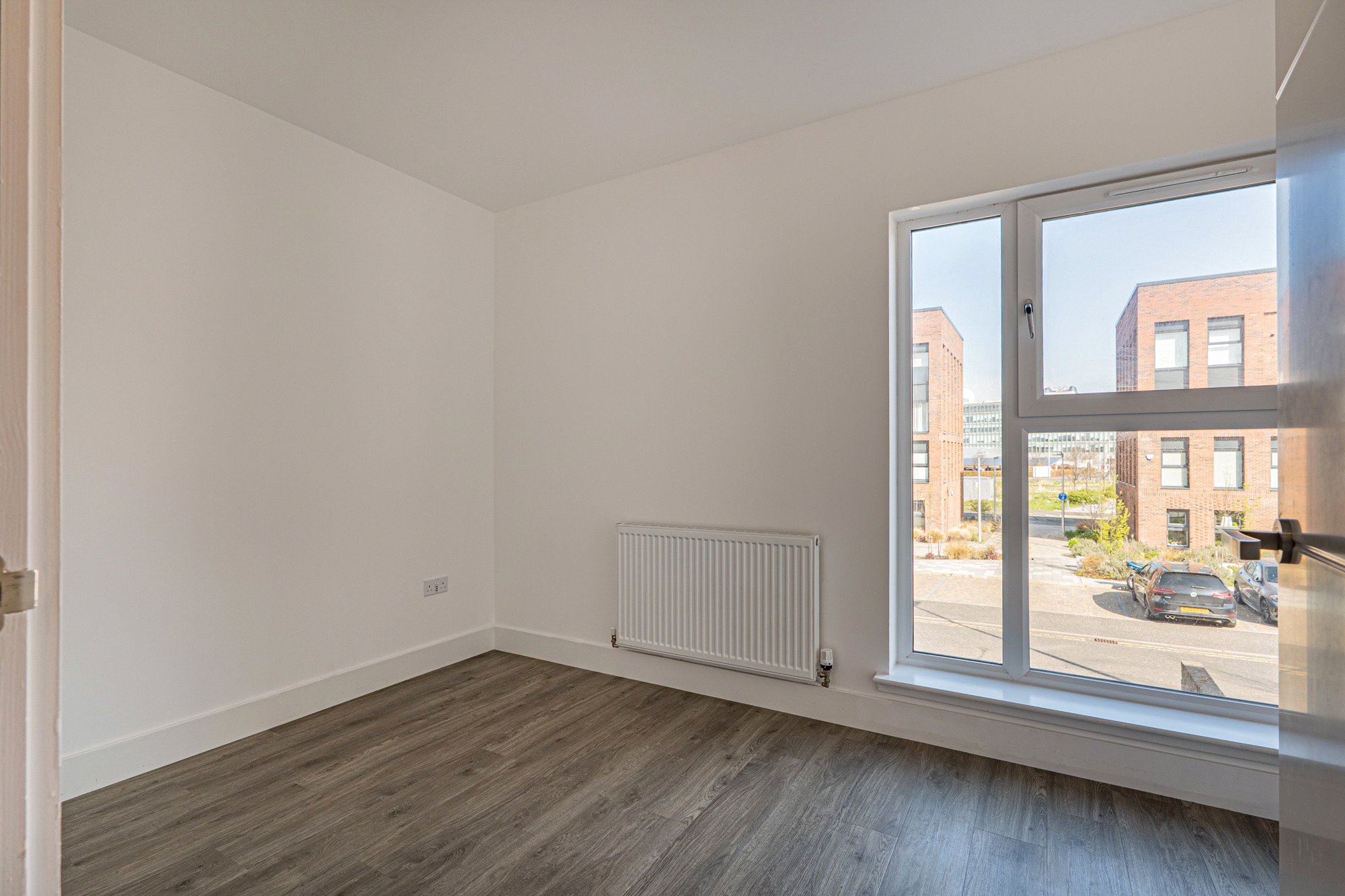The first floor accommodation comprises a generously proportioned double bedroom with integrated wardrobes and peaceful views to the private rear garden and a second double sized bedroom with integrated wardrobes and a large window providing bustling city views towards the BBC Scotland building and the West End. There is a luxurious tiled bathroom comprising a white, three piece suite and separate walk-in shower, heated towel rail and stunning, large format Porcelanosa tiles.
