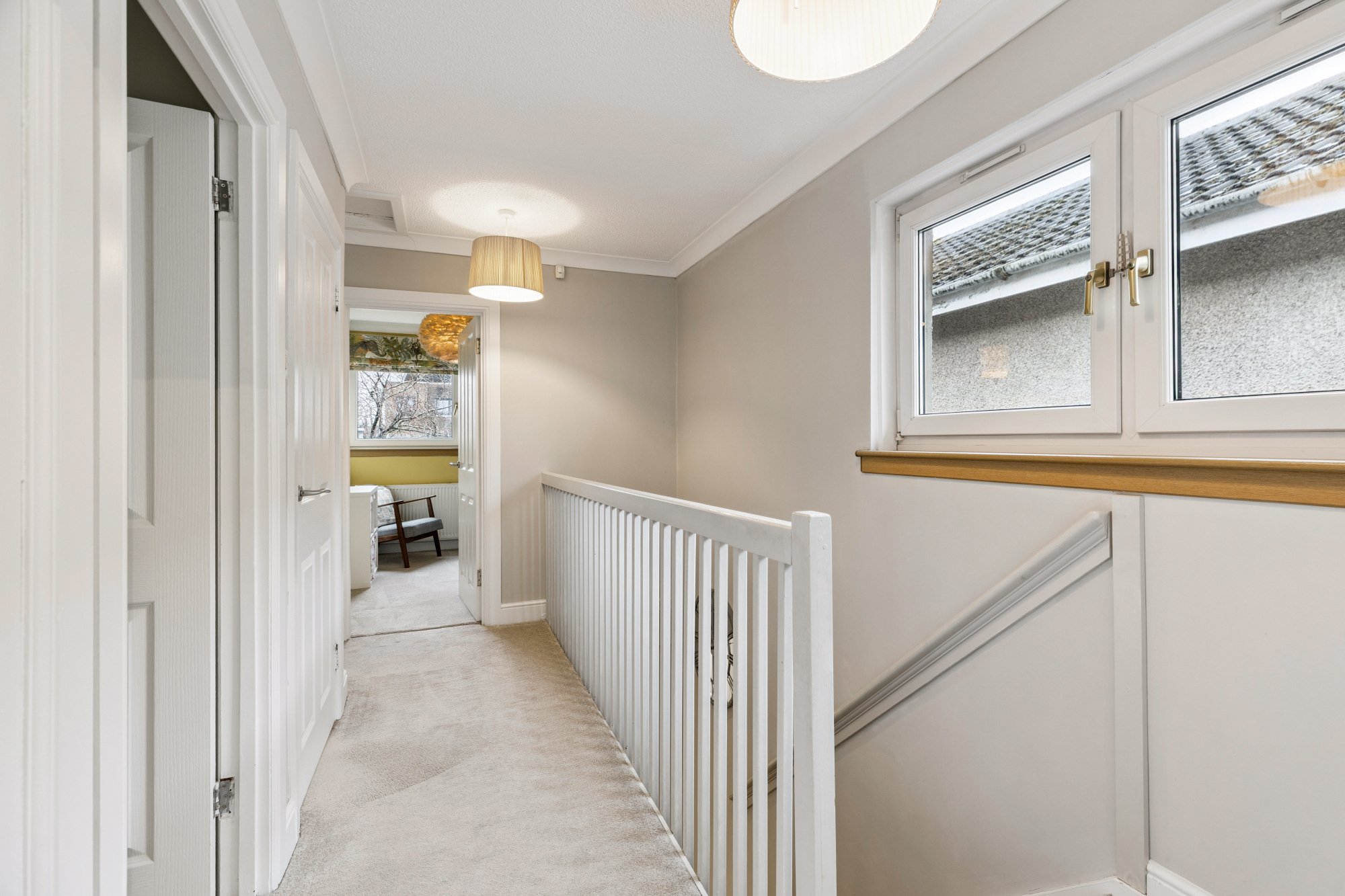 The house is approached via pathway, flanked by lawned front garden leading to the front door.