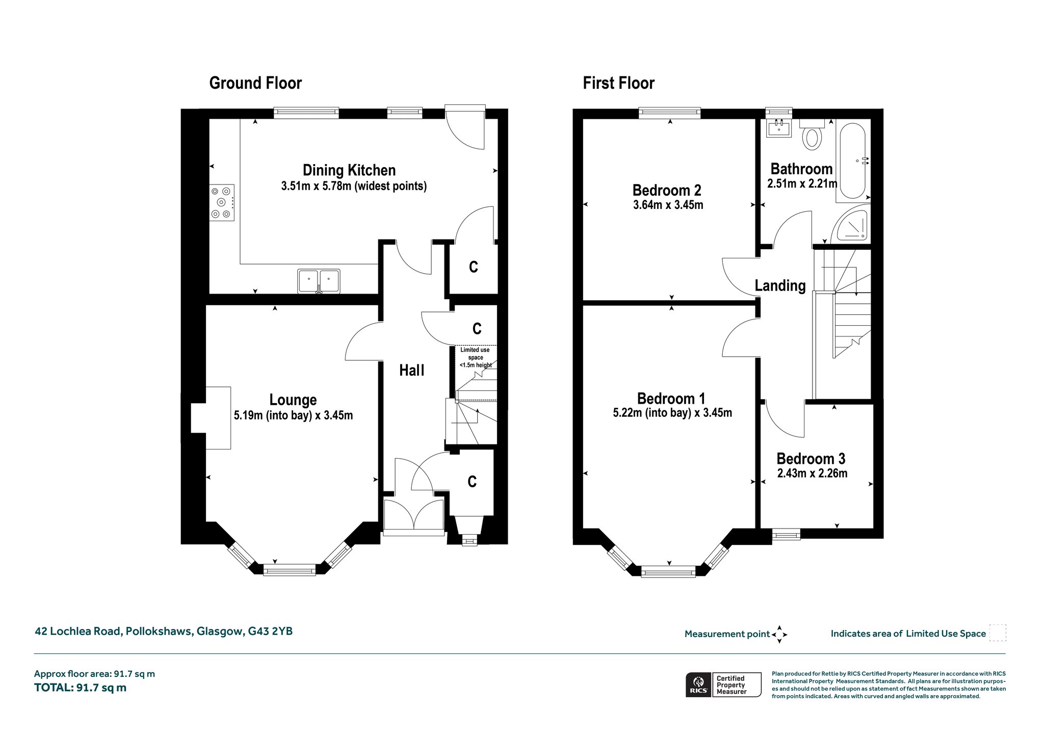 Upstairs the accommodation comprises bay windowed bedroom one, second double sized bedroom, beautiful tiled bathroom with white three piece suite, vanity unit and separate walk-in shower and third bedroom that could easily be utilised as a home office or study.